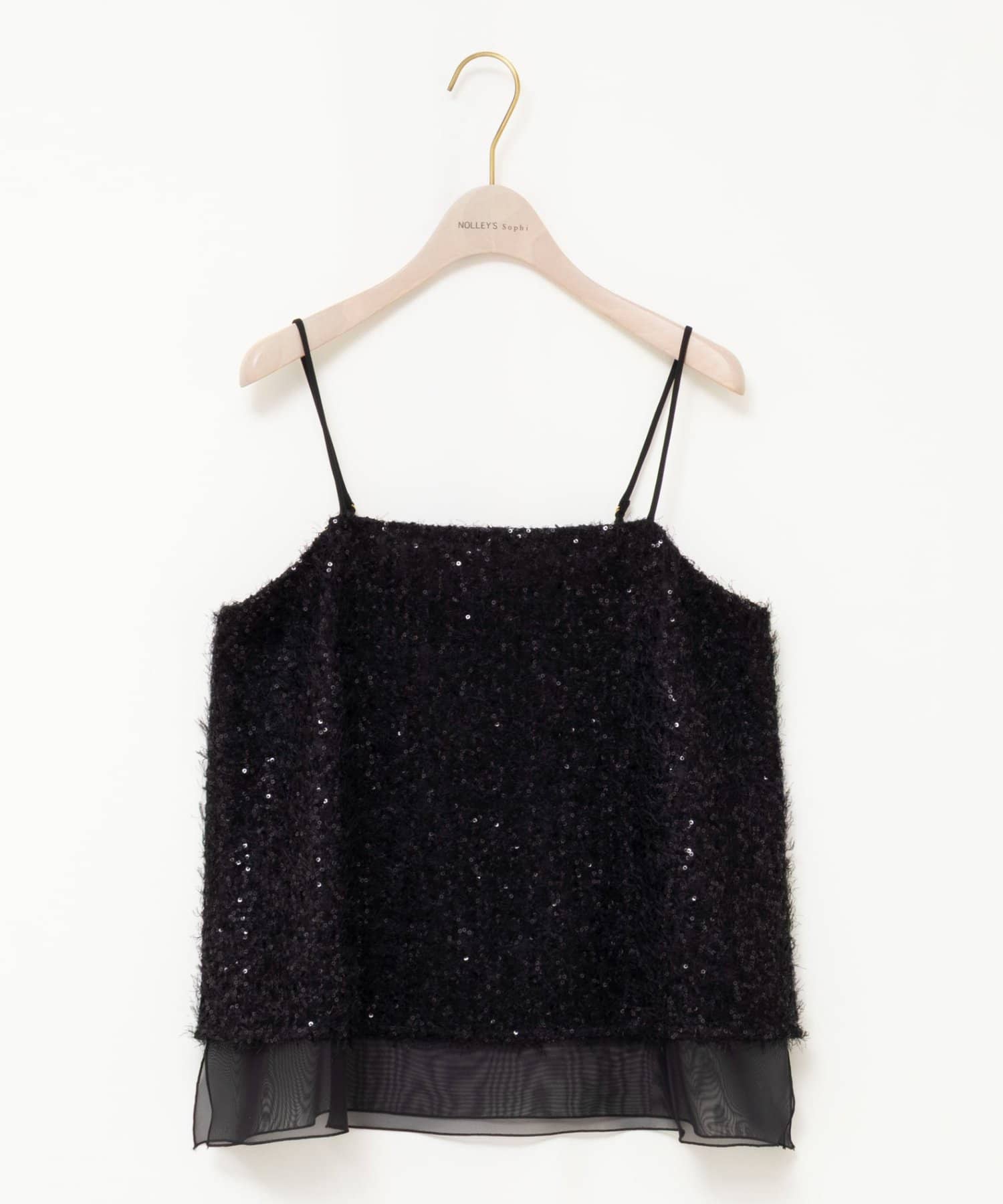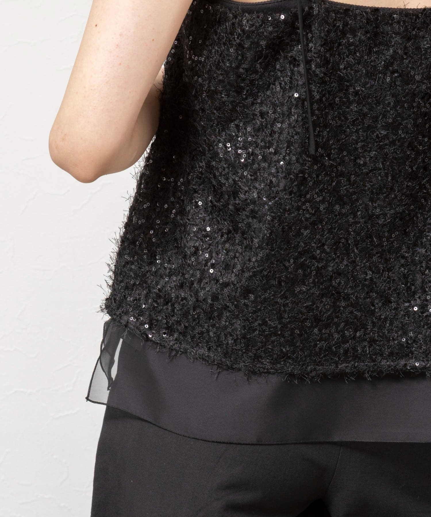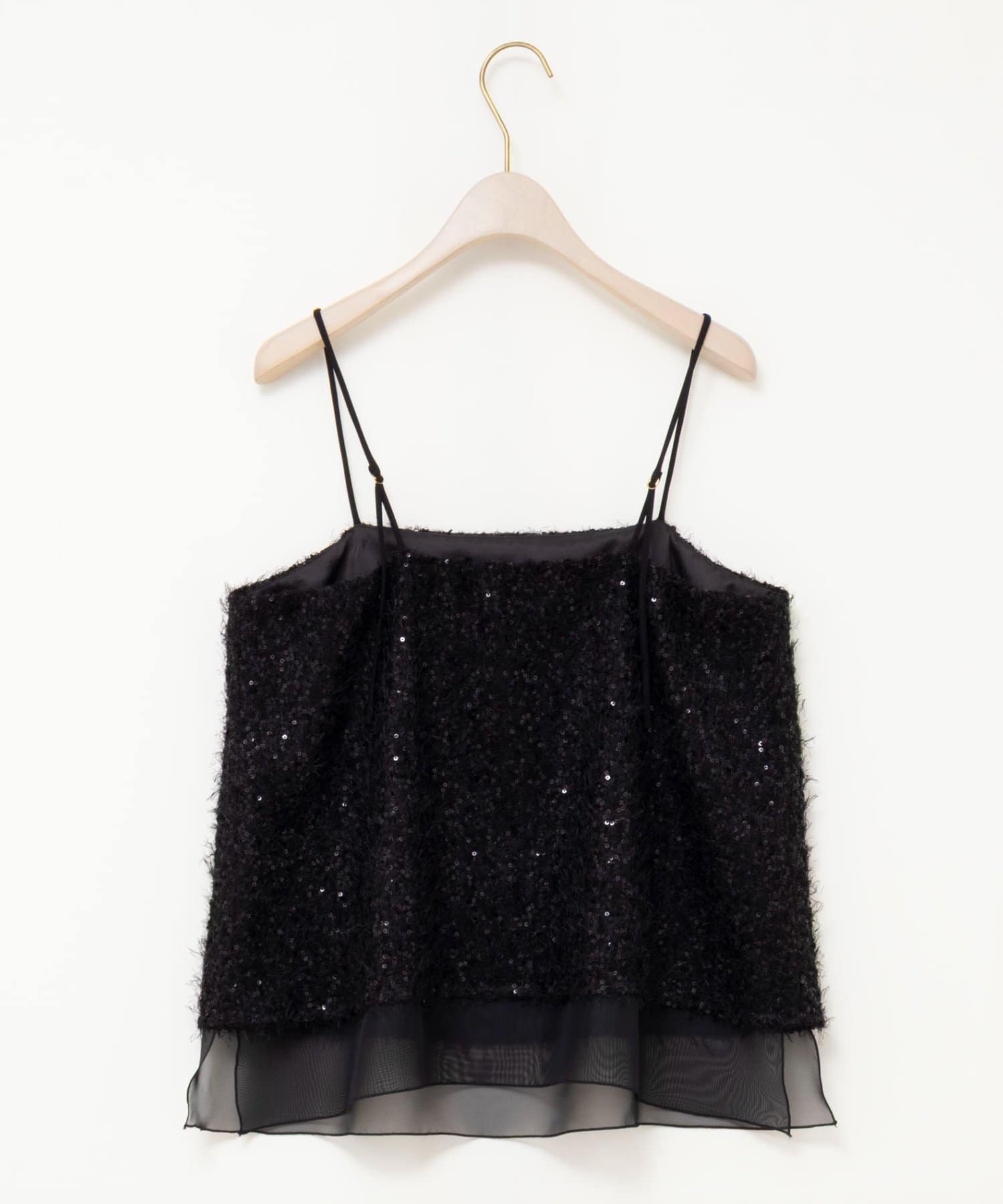 ・スパンコールと毛足のある糸を織り込んだ華やかなチュール素材を使用したキャミブラウス