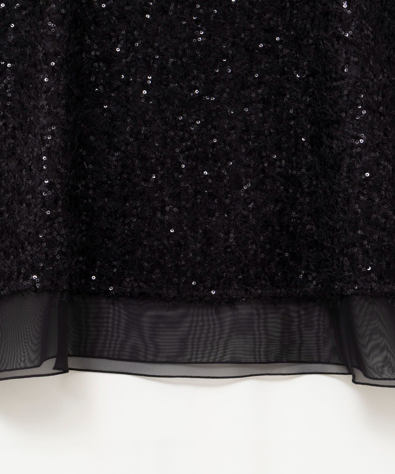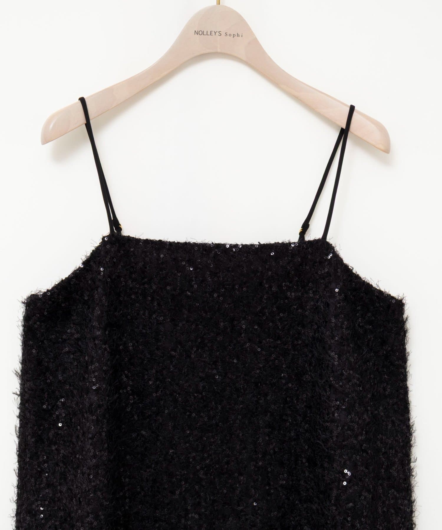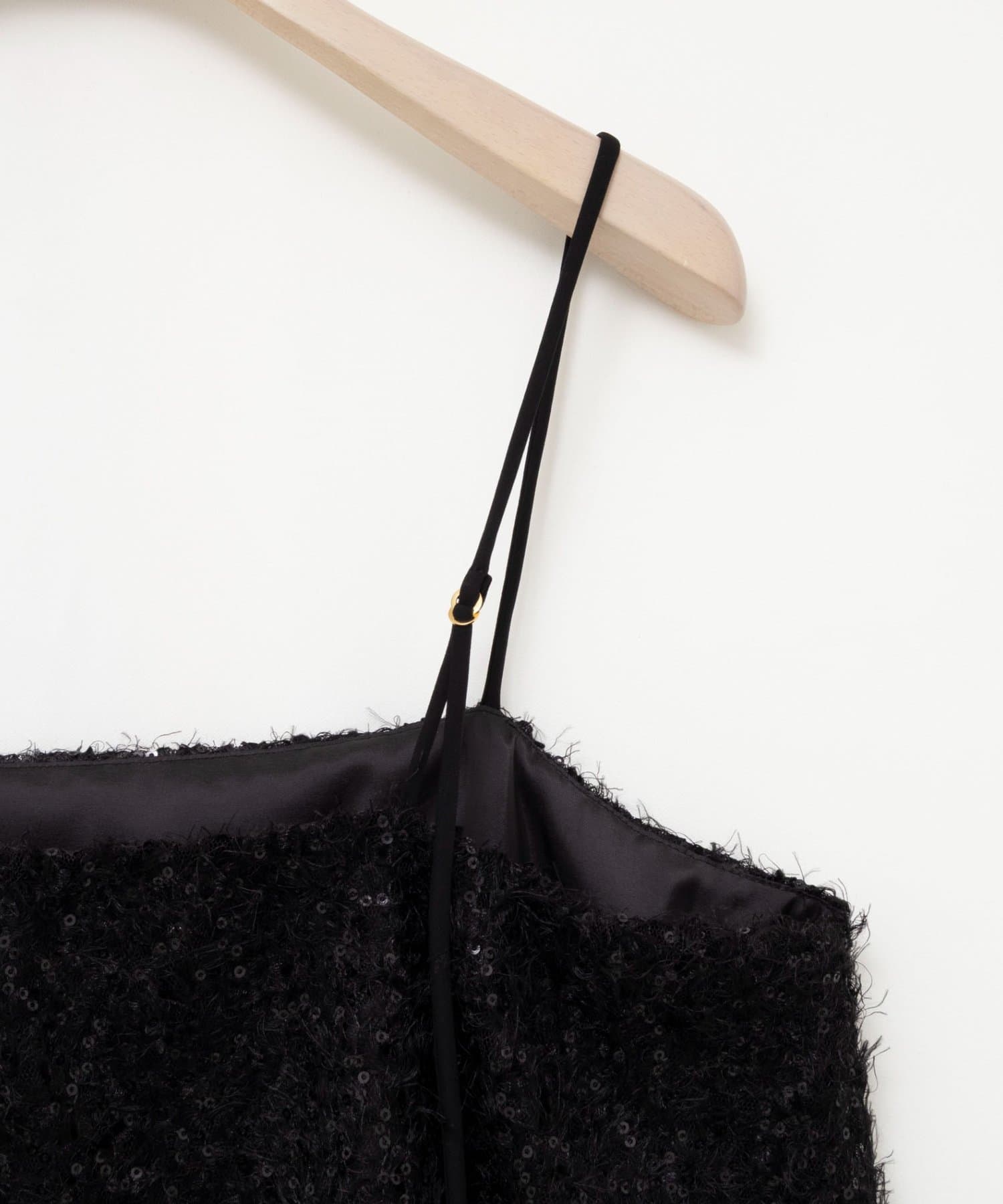 ・スパンコールと毛足のある糸を織り込んだ華やかなチュール素材を使用したキャミブラウス
