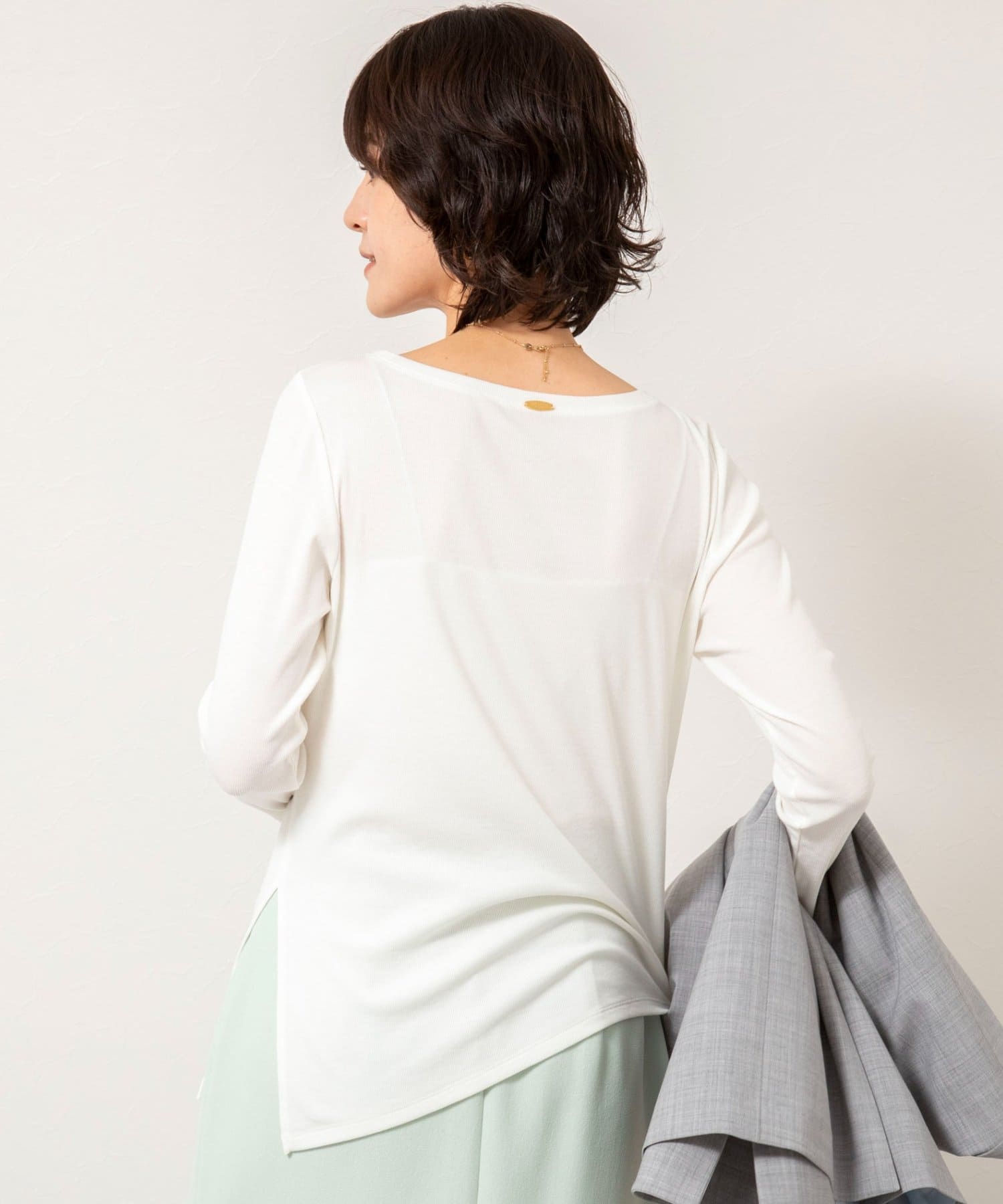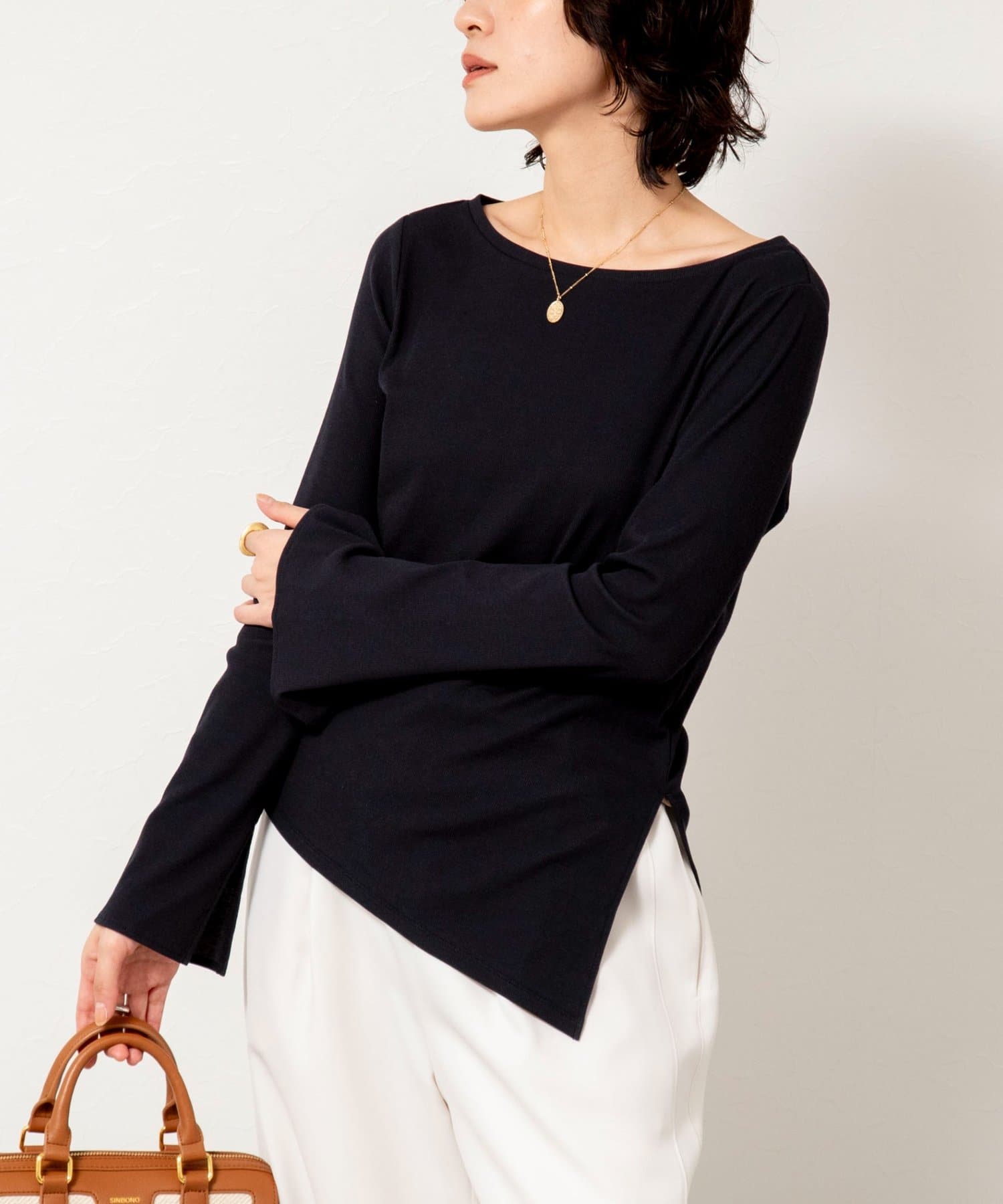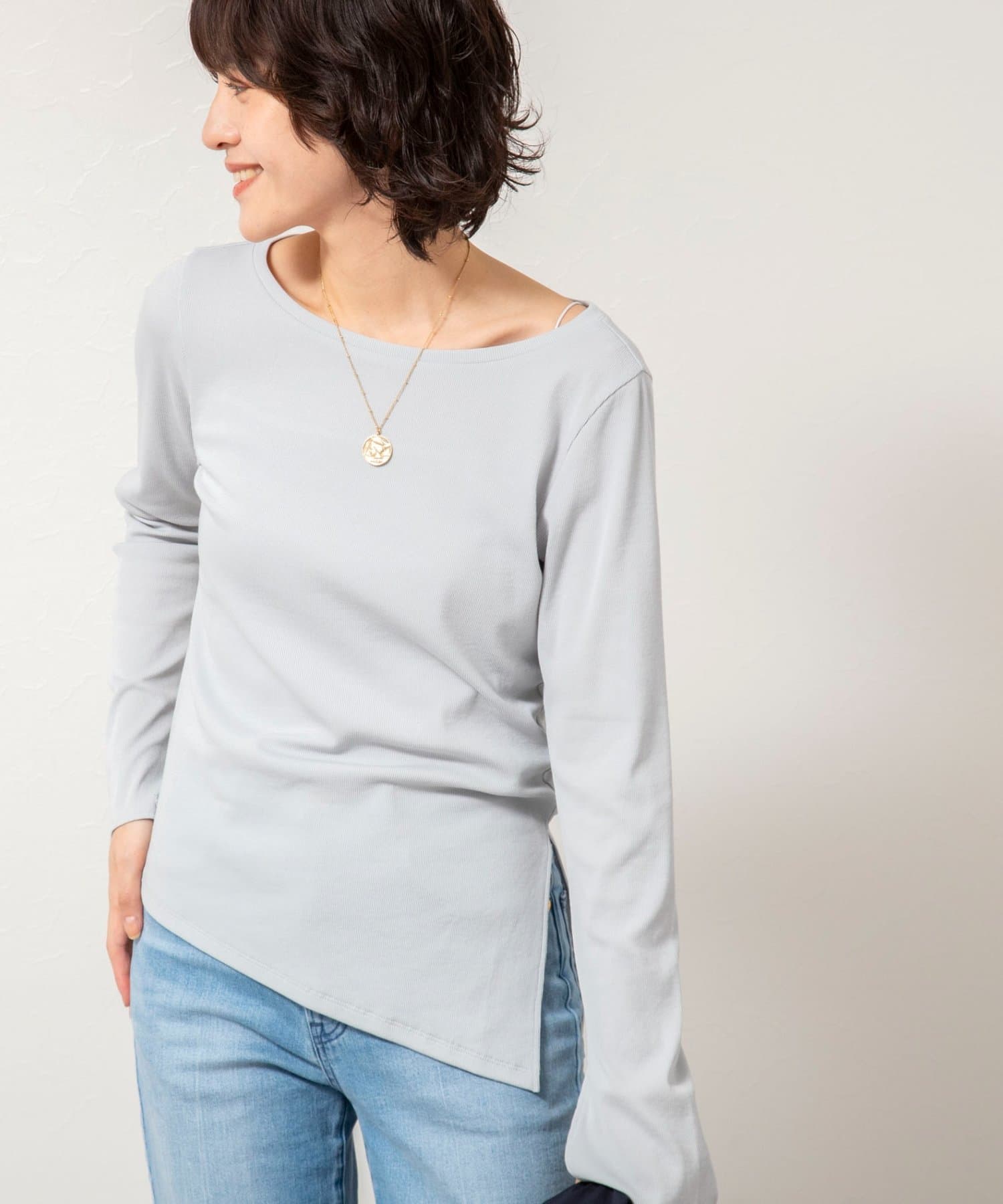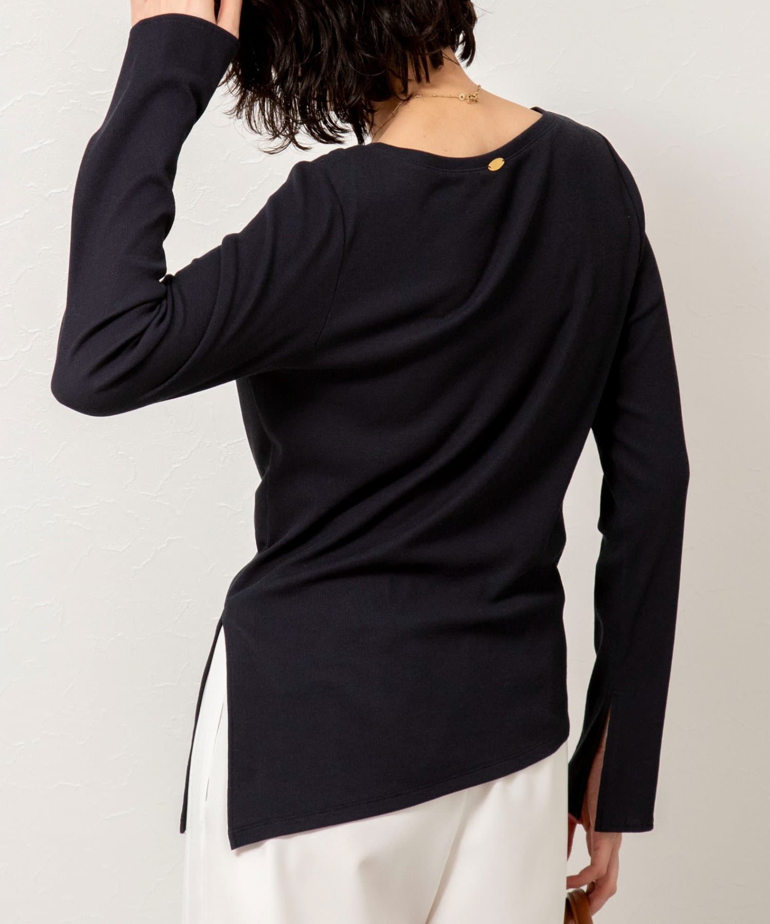 ・サイドスリット入りのアシンメトリーデザインのロンT