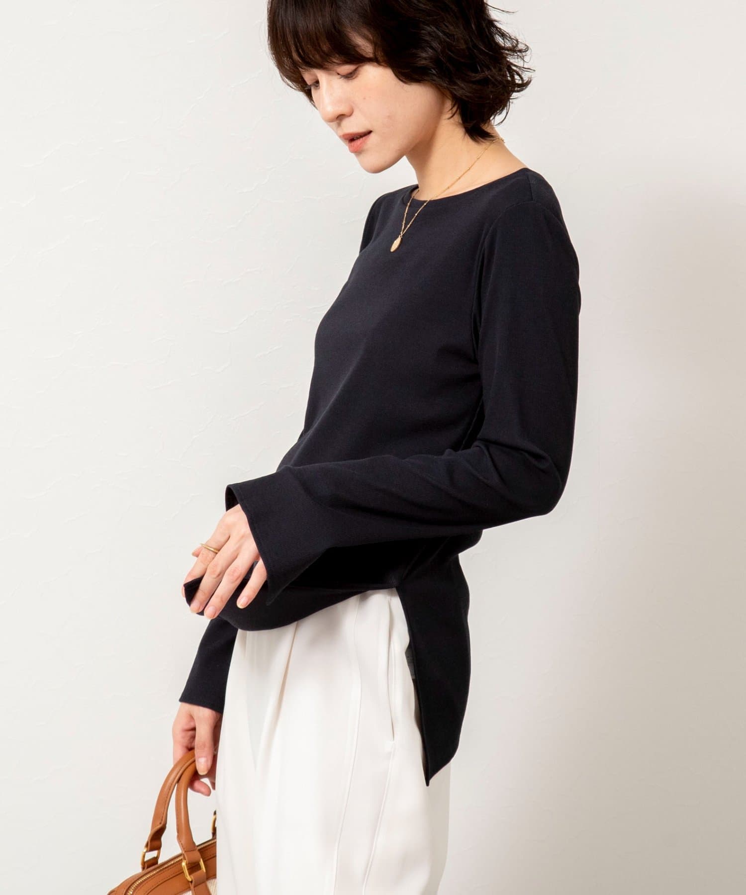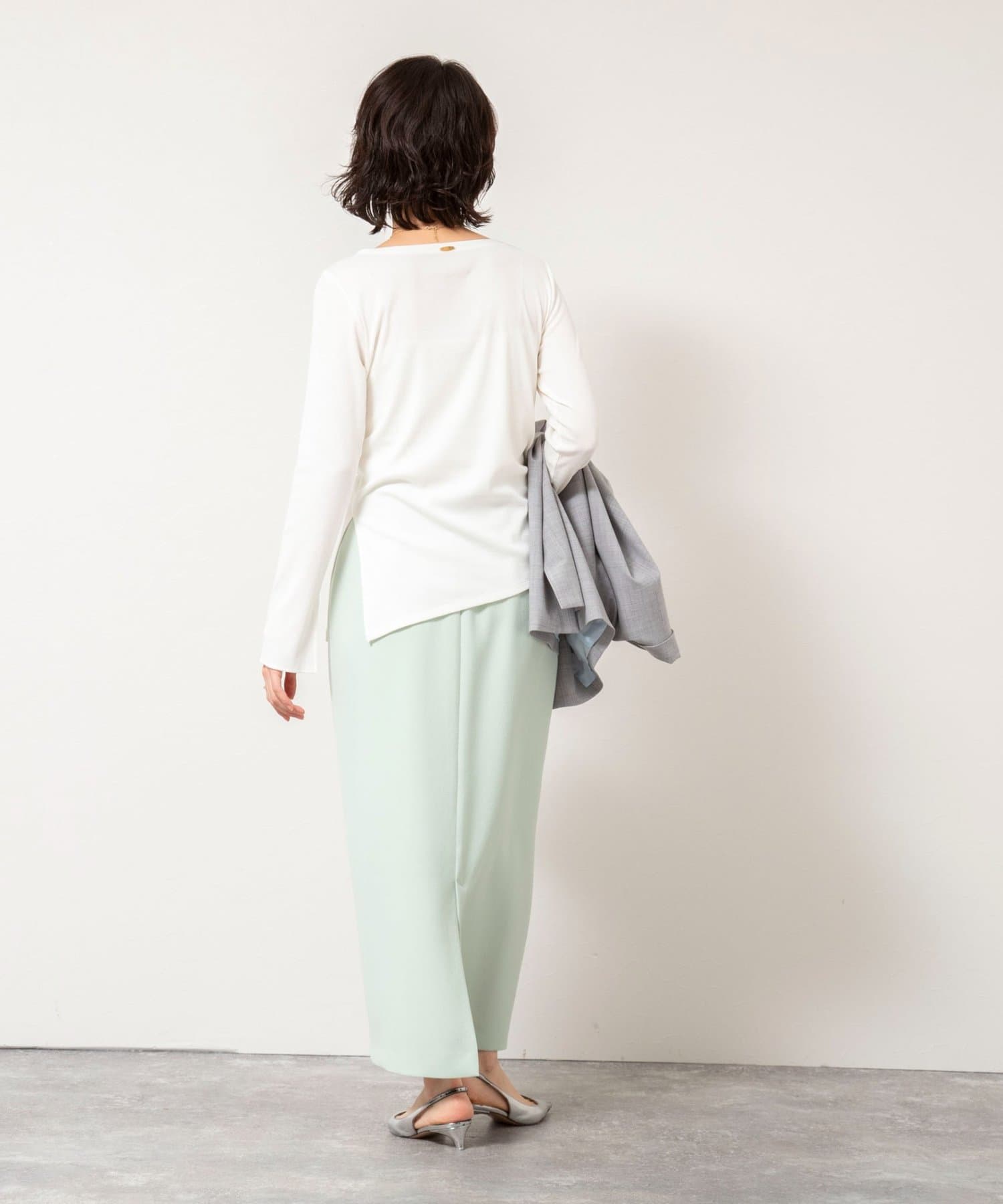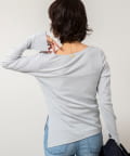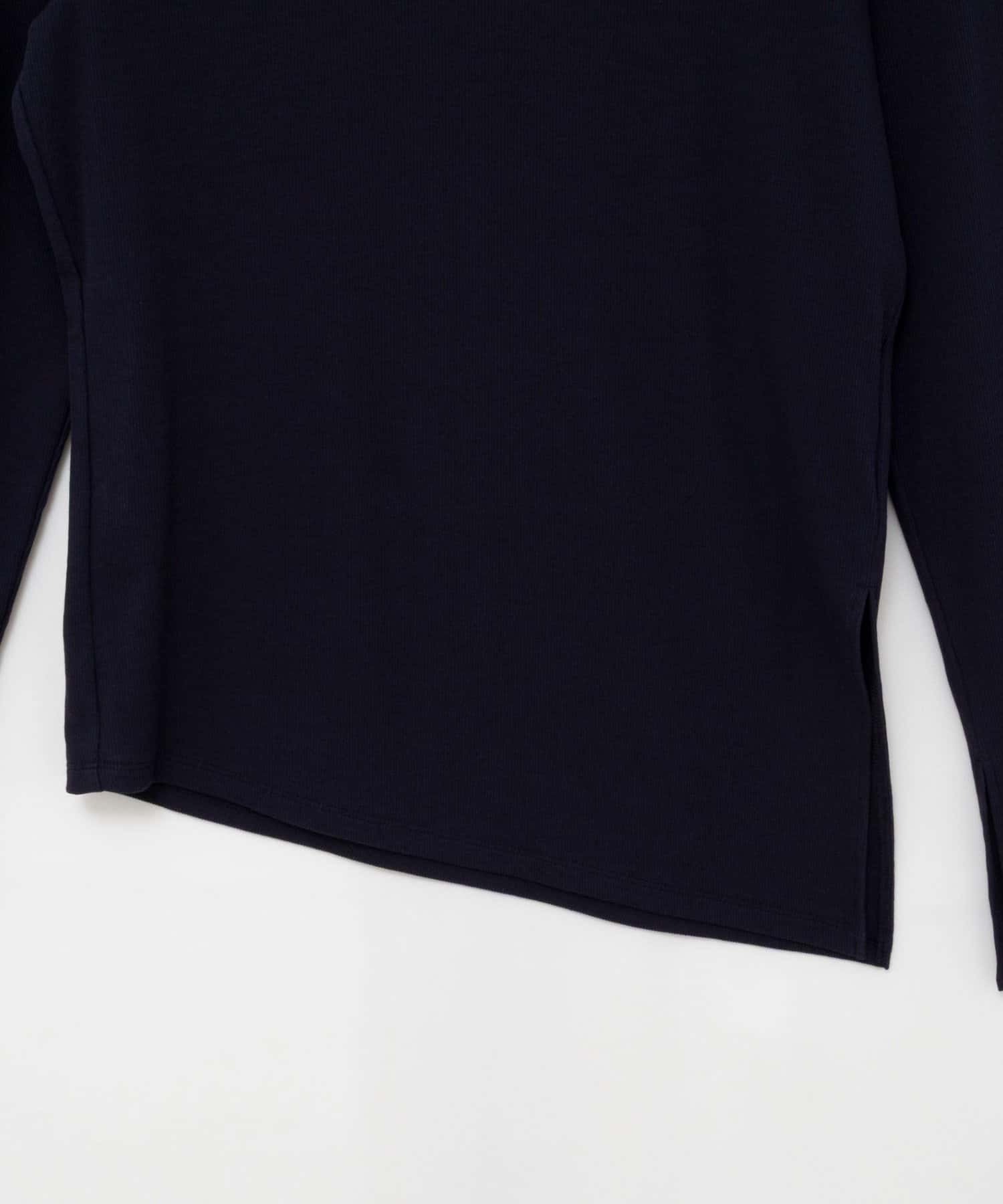 ・サイドスリット入りのアシンメトリーデザインのロンT