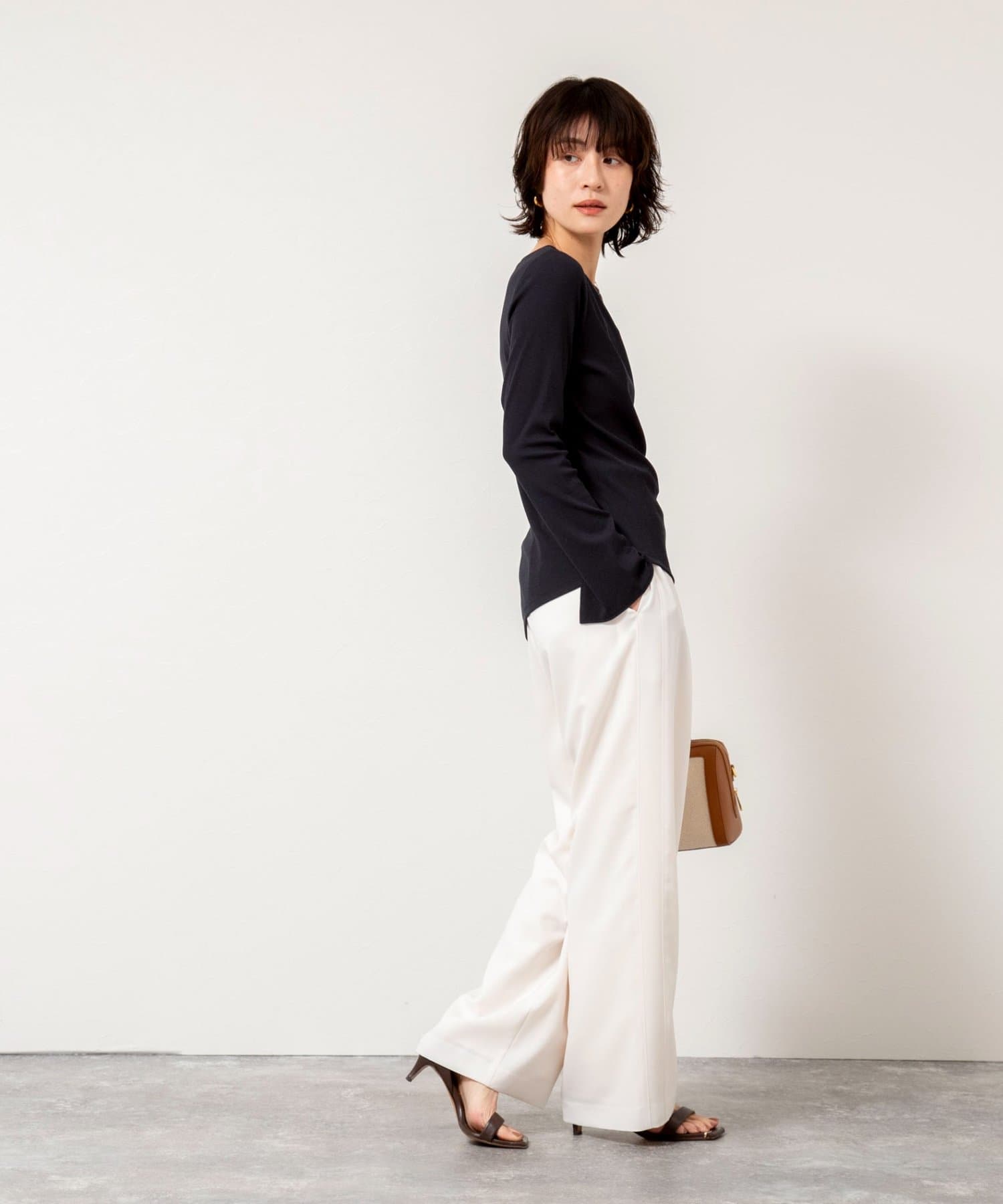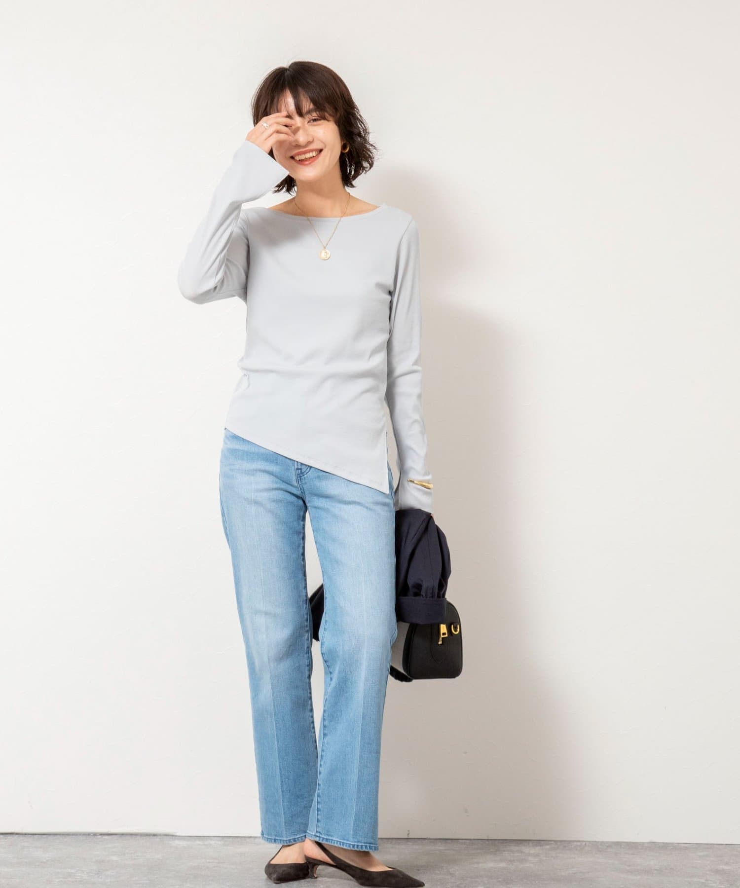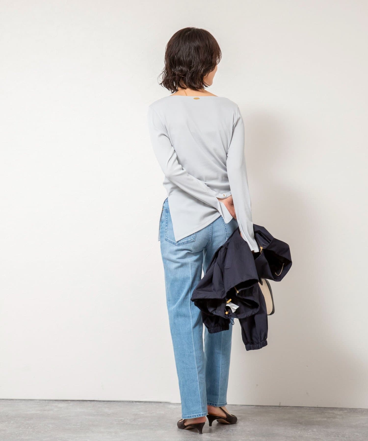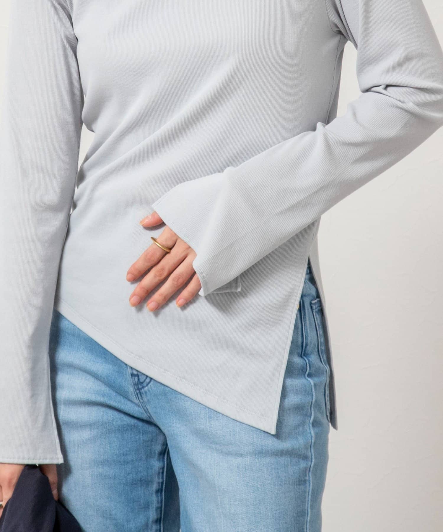 ・サイドスリット入りのアシンメトリーデザインのロンT