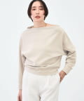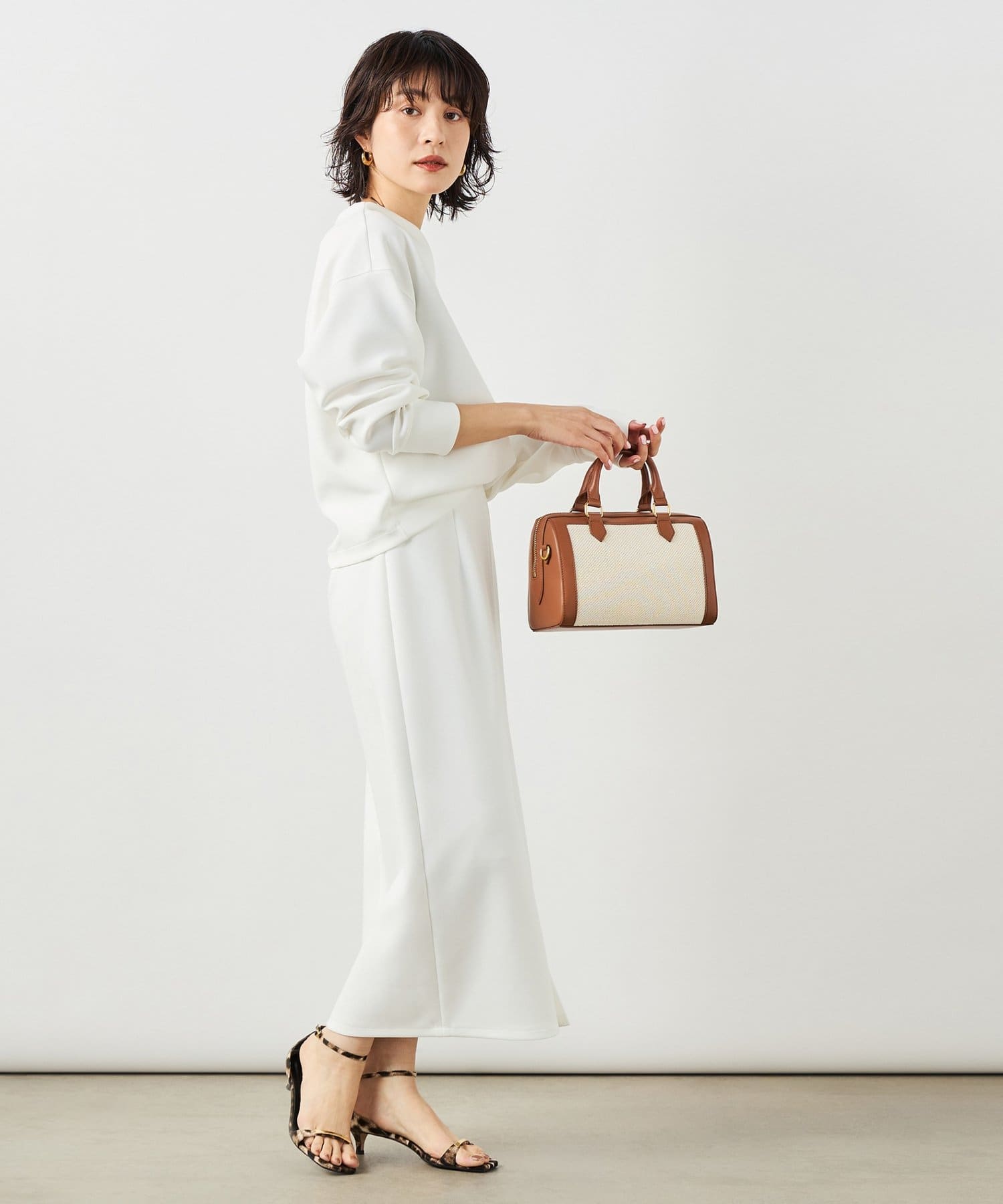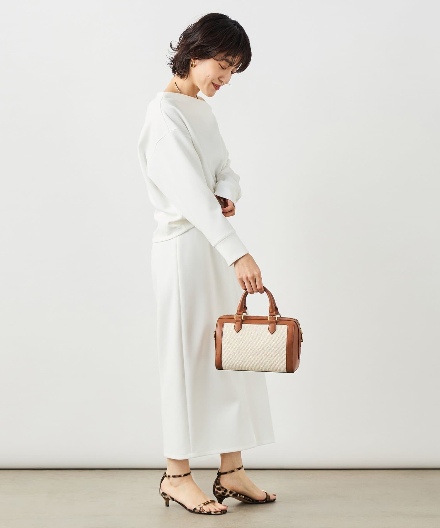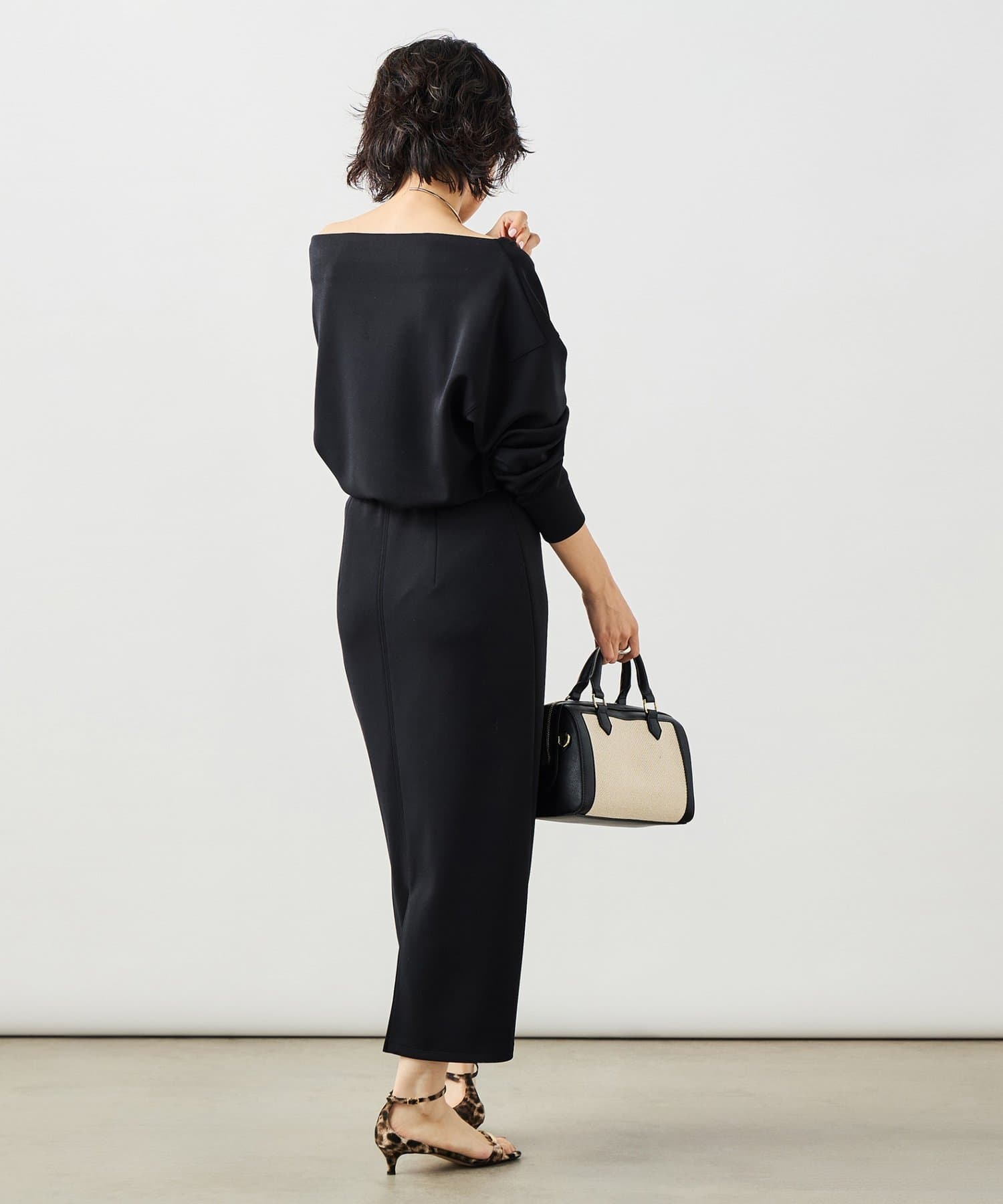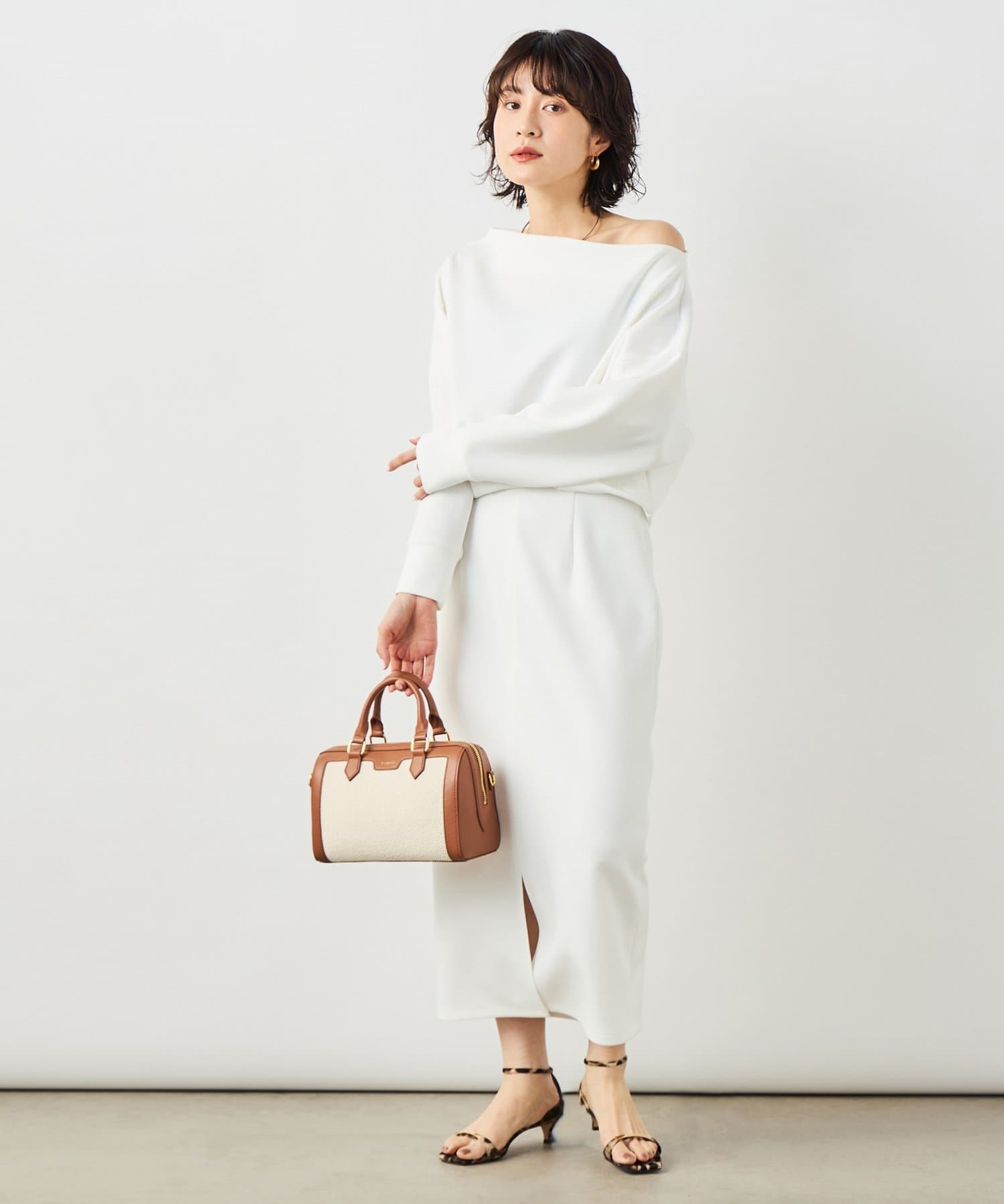 ・オフショルにもなるボートネック、程よくゆとりのあるサイジングで女性らしさのある1着
