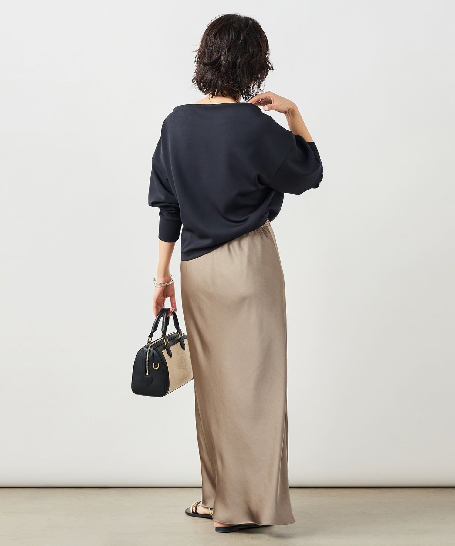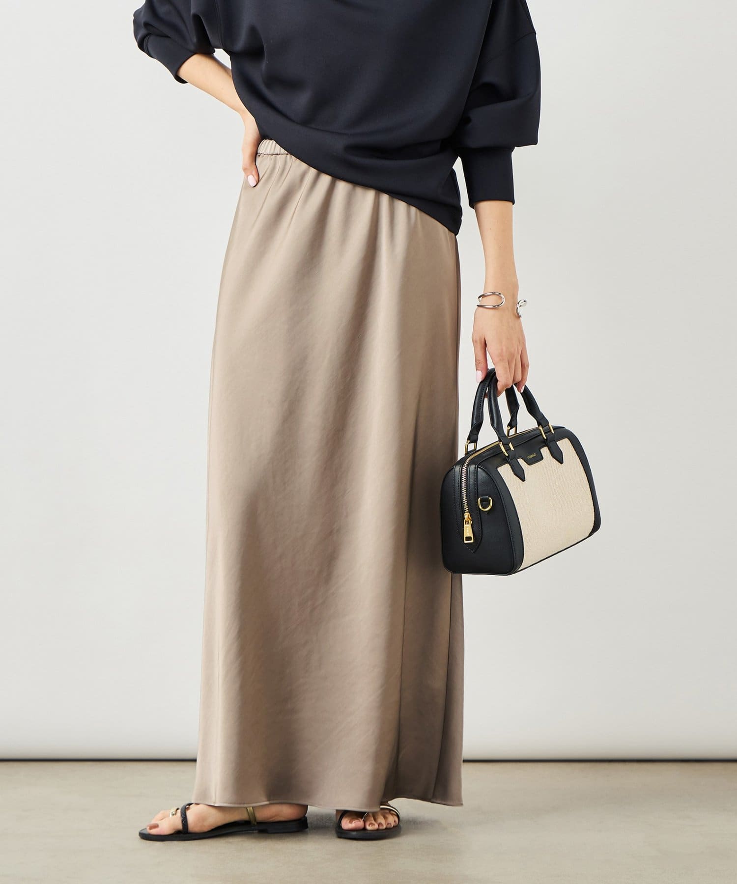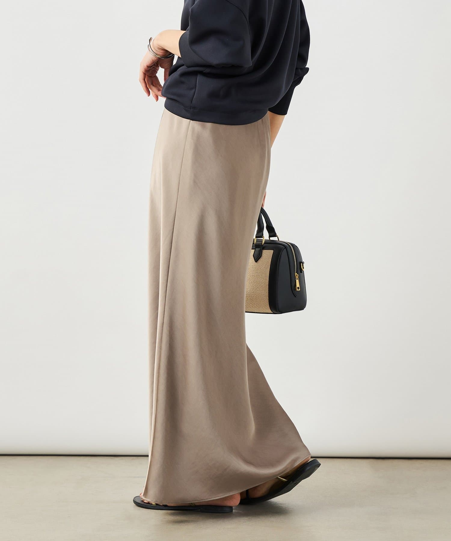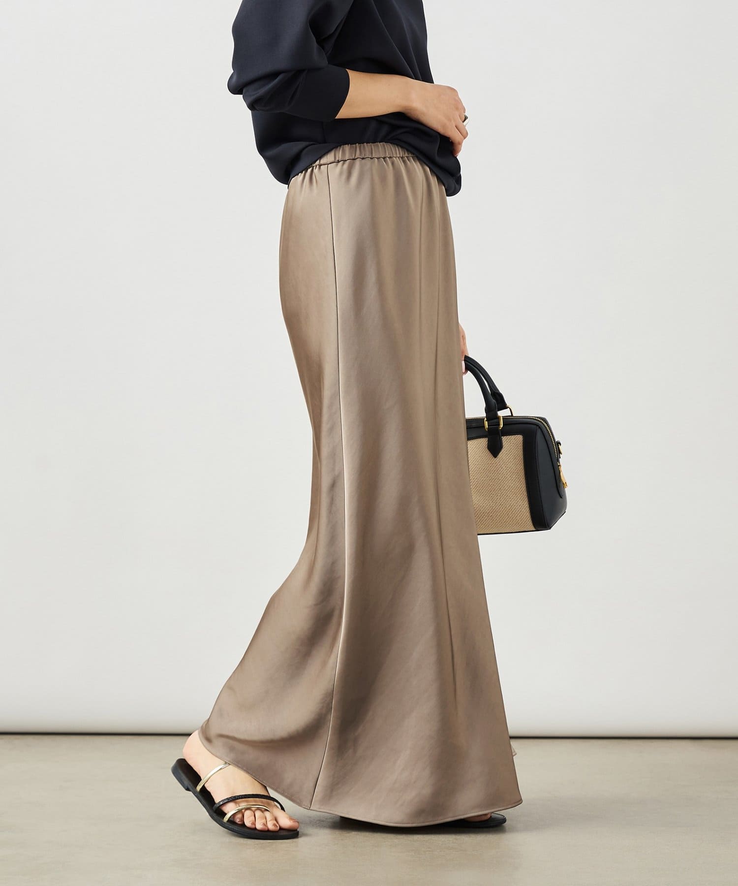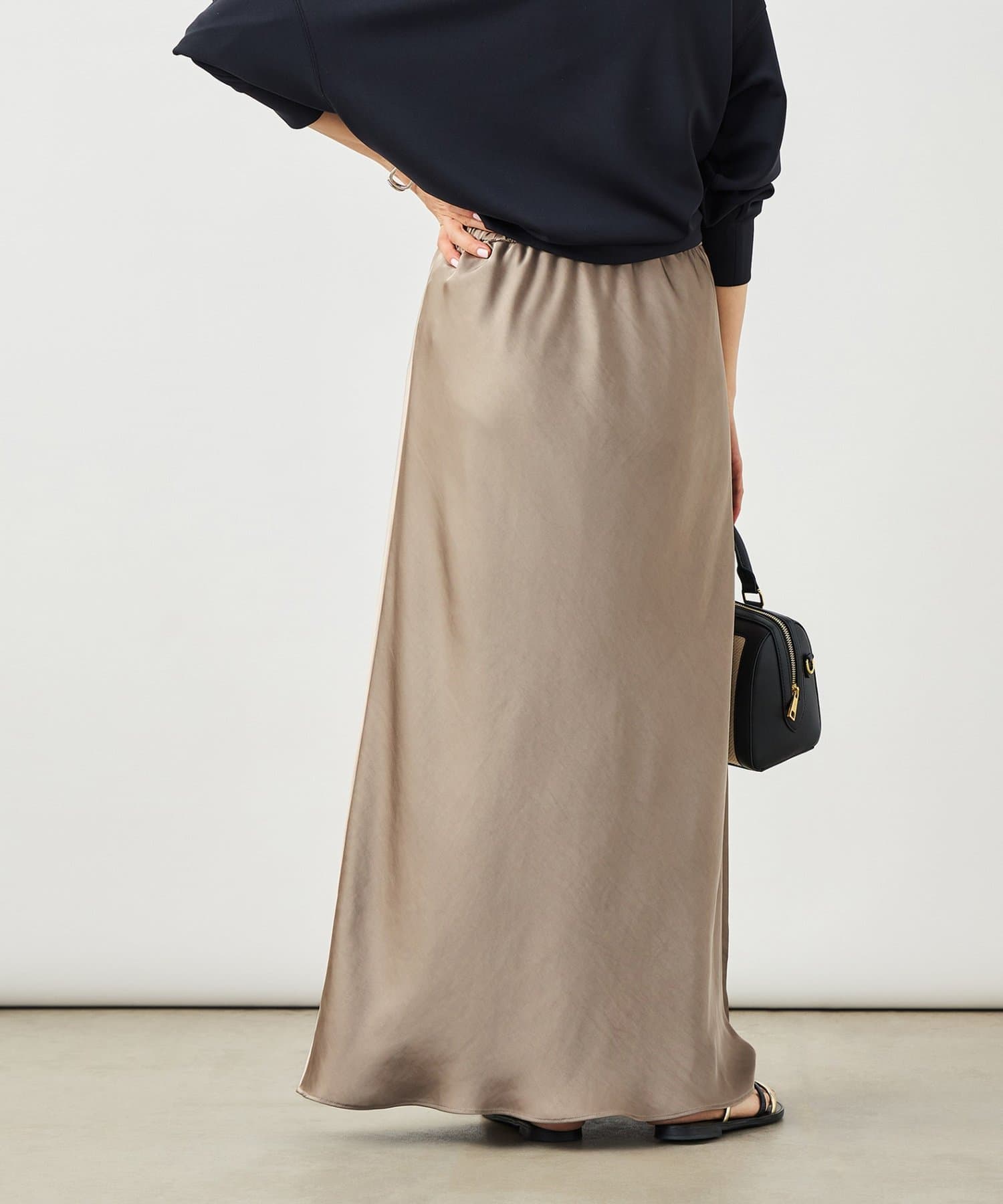 ・サテンを使用したロングナロースカート