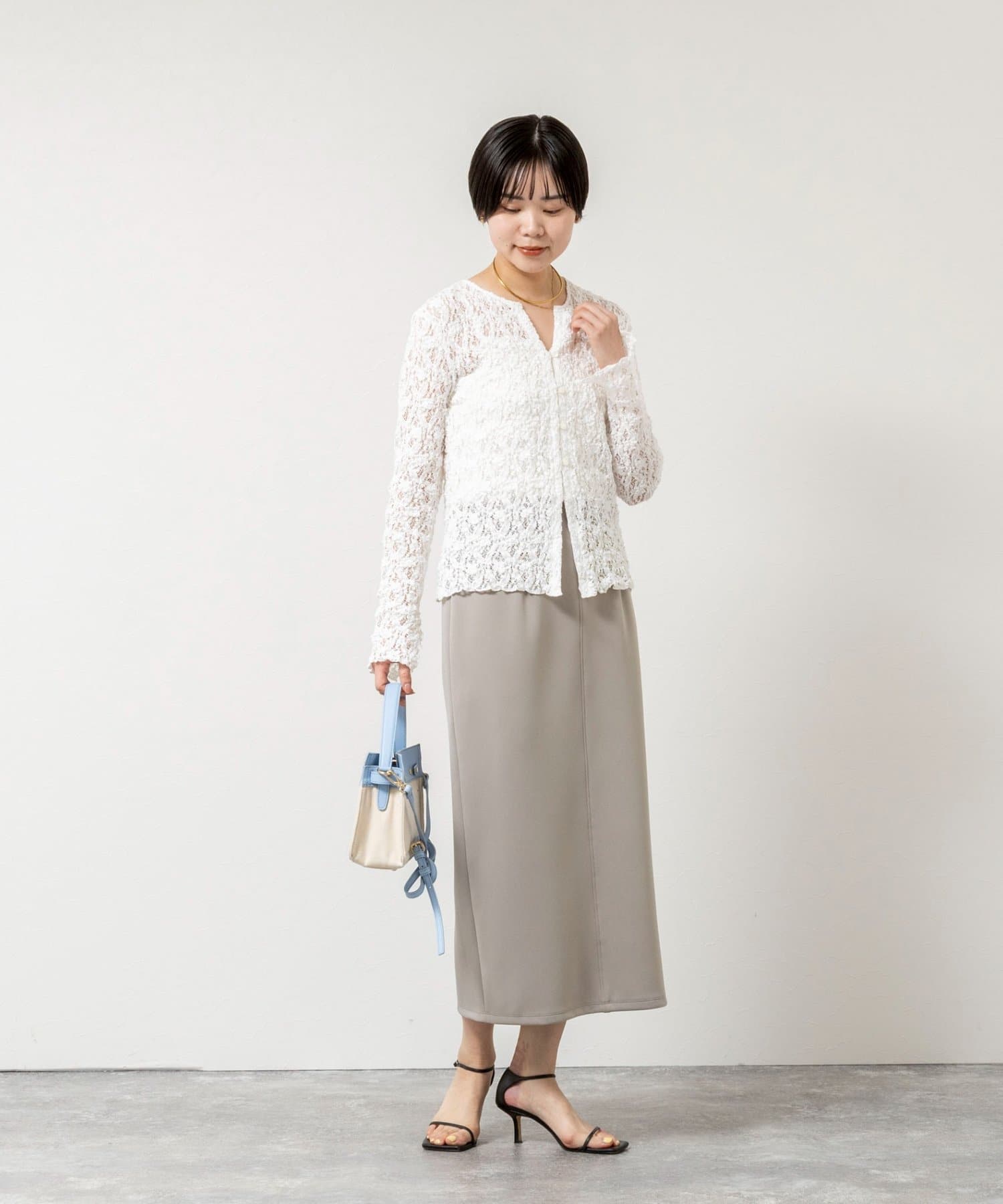 ・ストレッチ性に優れ、軽量でシワになりにくく、もちっとしたタッチの滑らかな素材感
