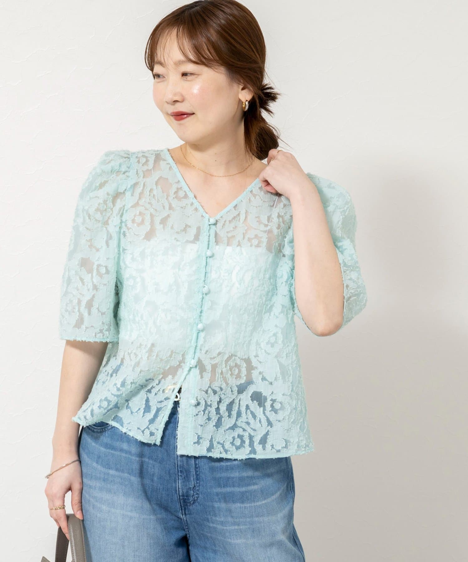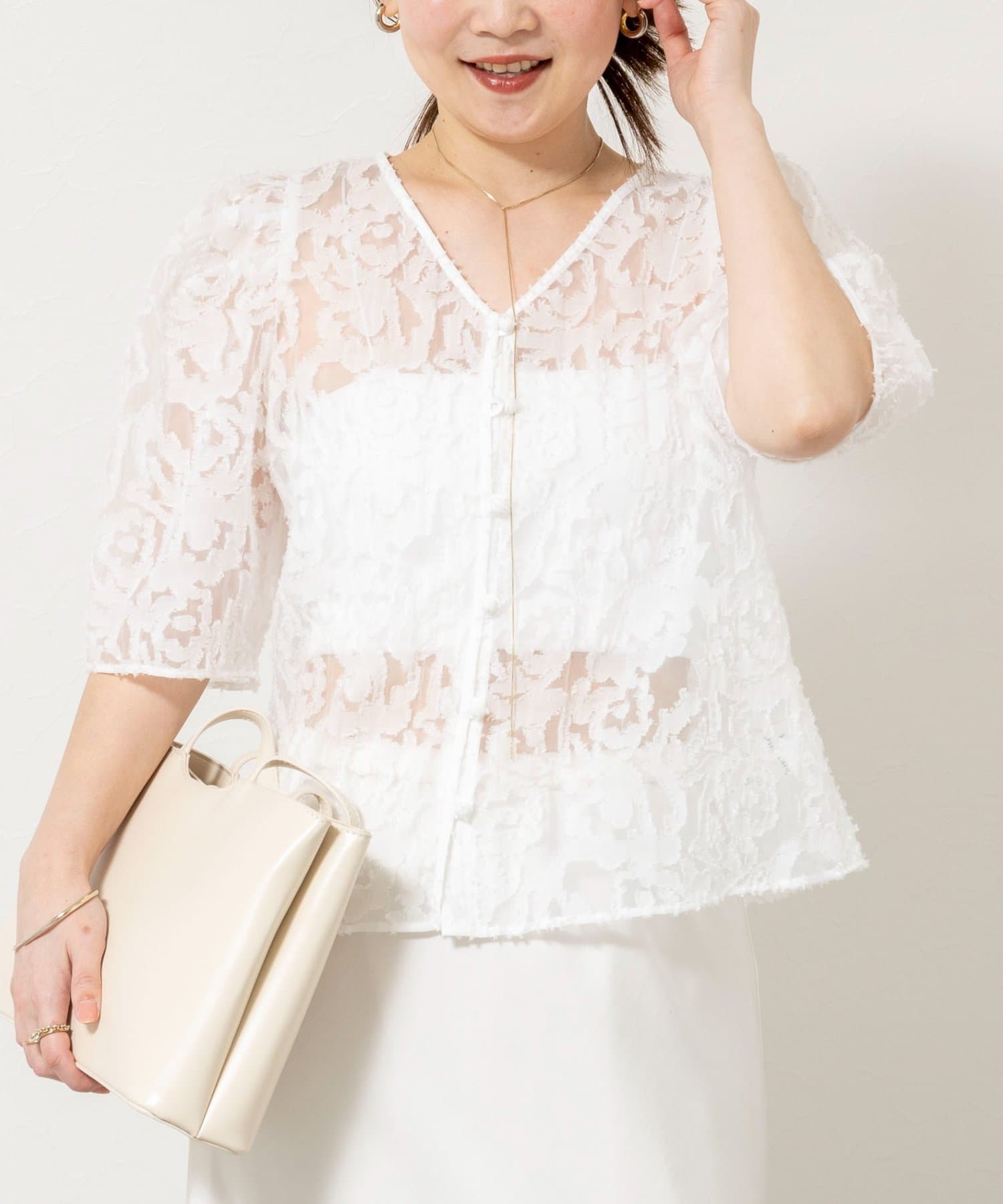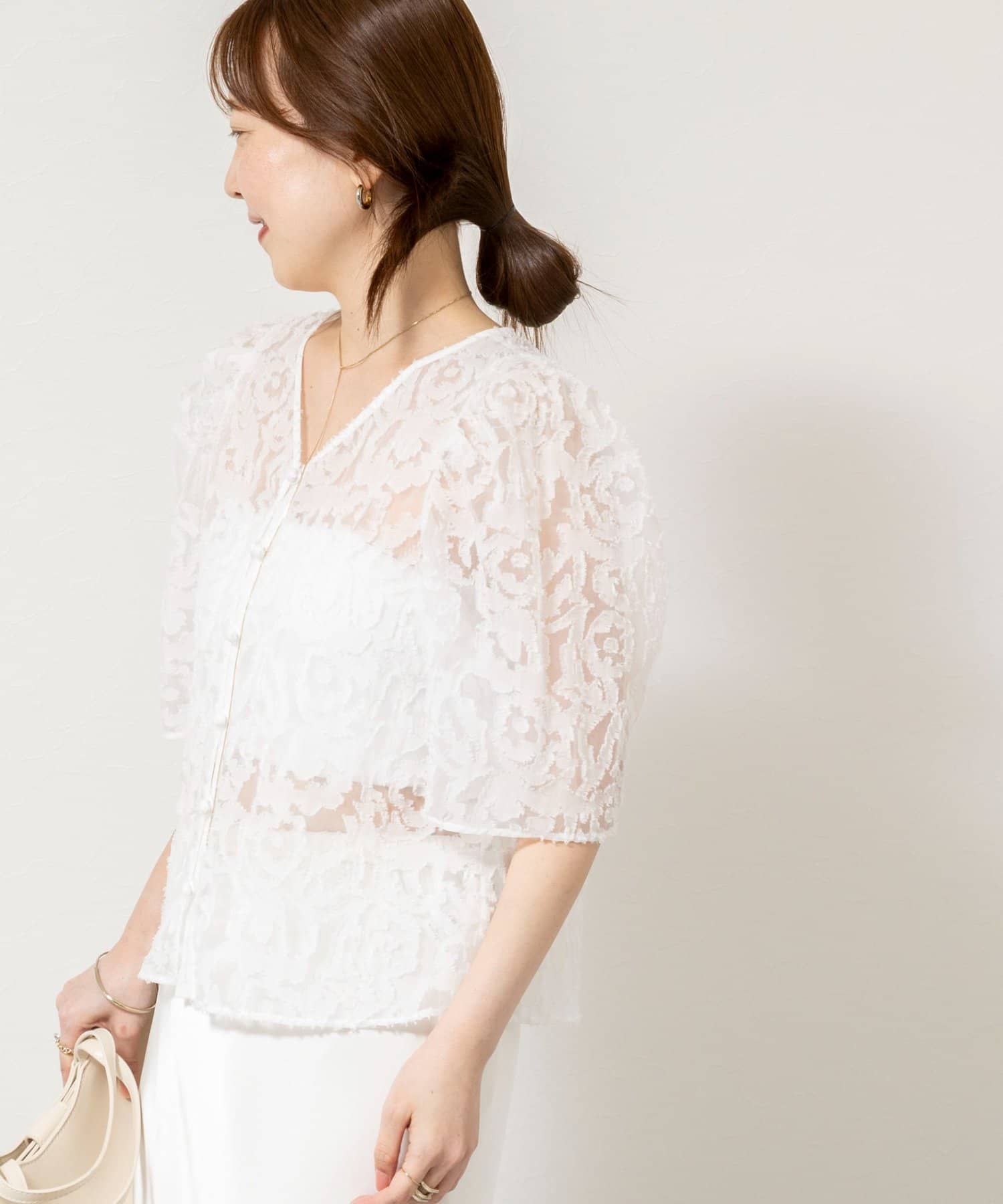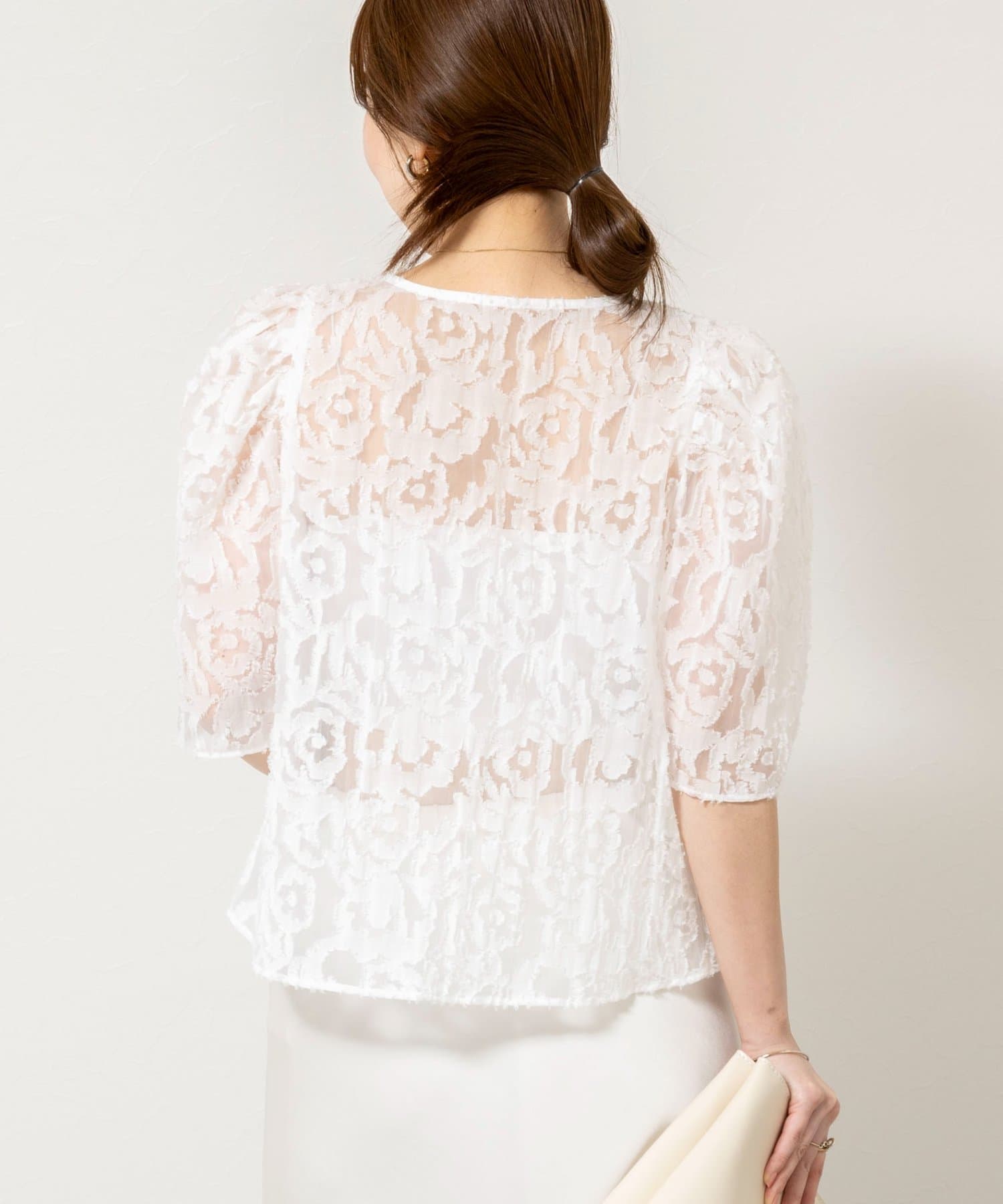 ウォッシャブルワッシャーオーガンジーカットジャガードブラウス