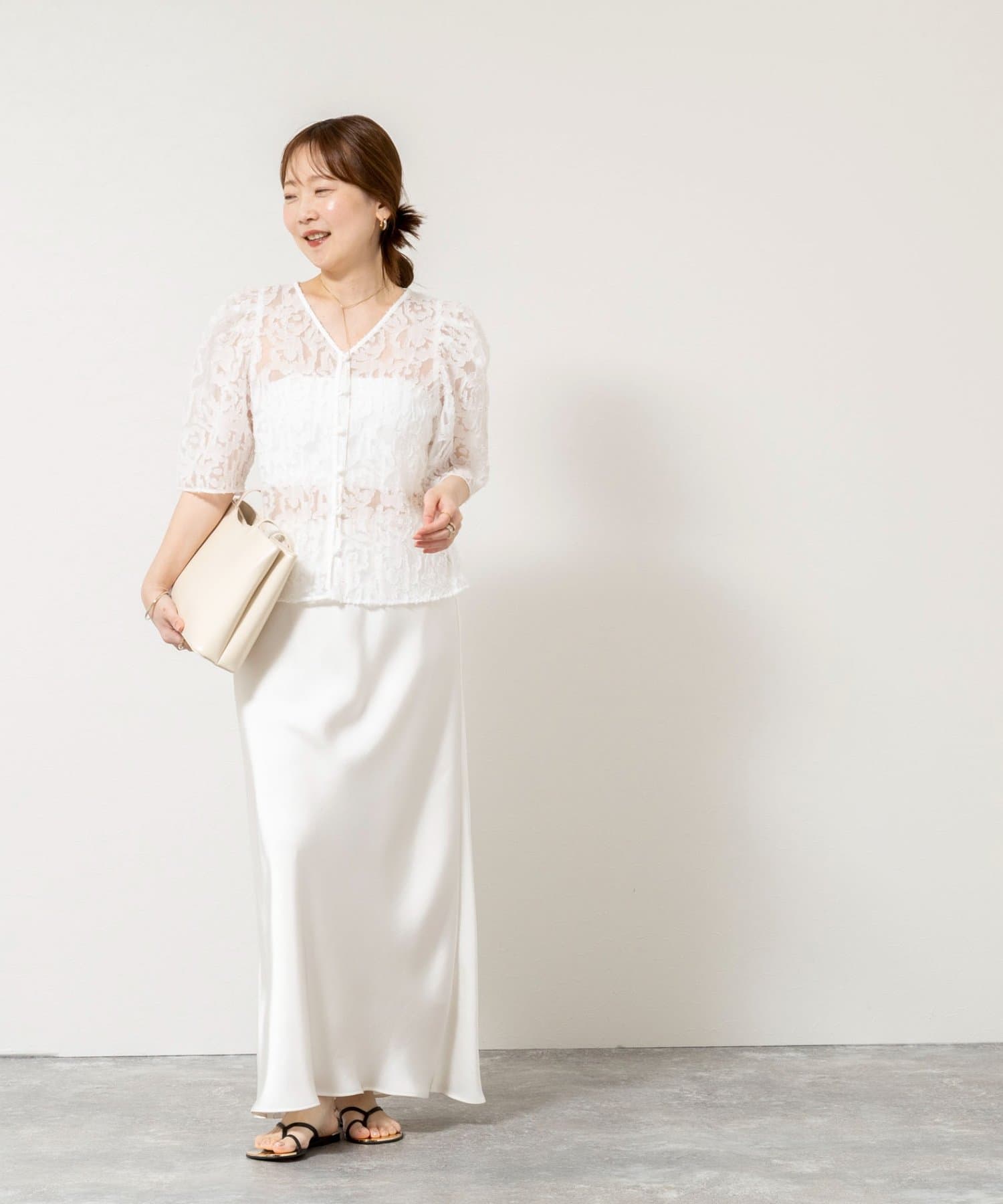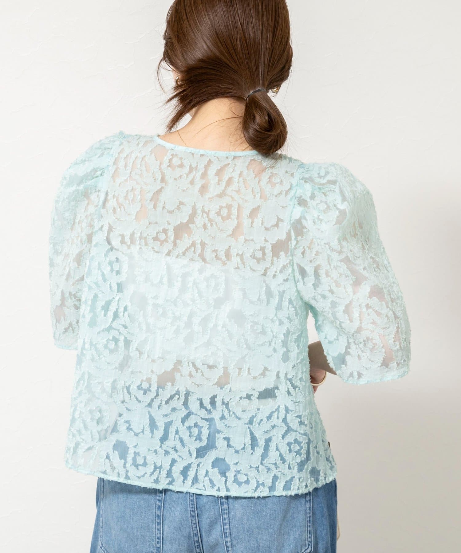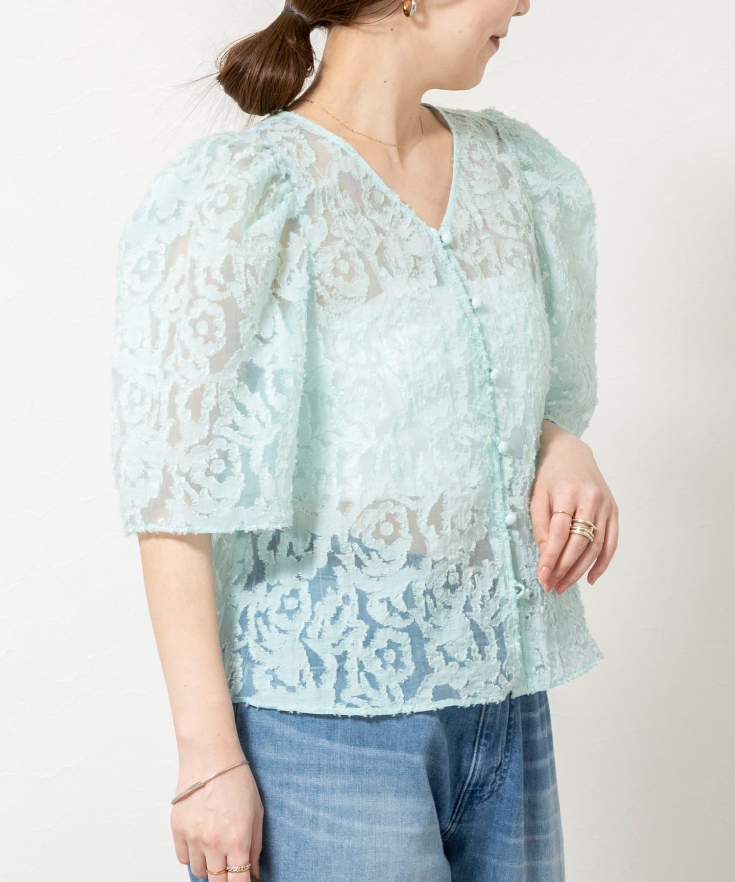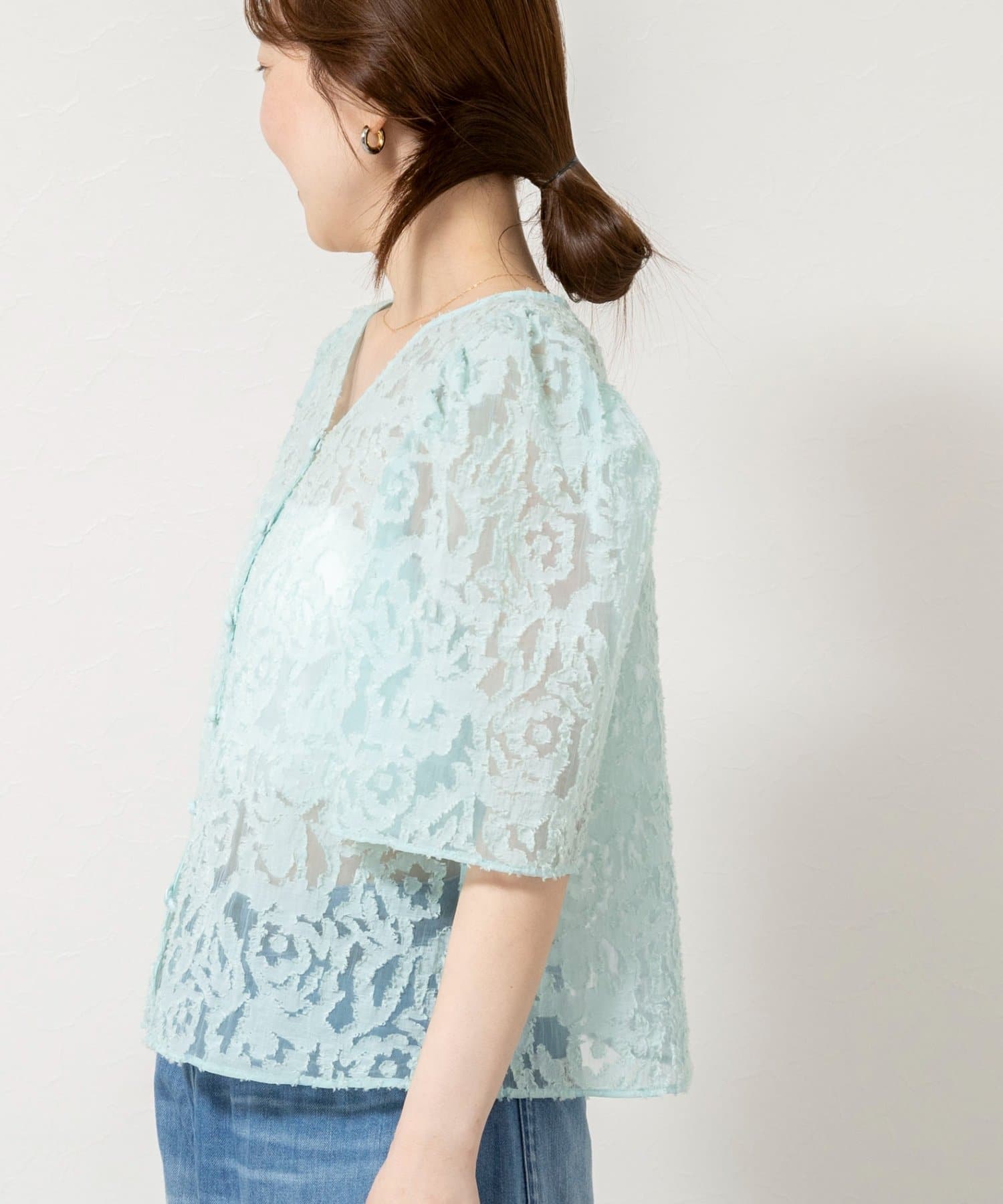 ウォッシャブルワッシャーオーガンジーカットジャガードブラウス
