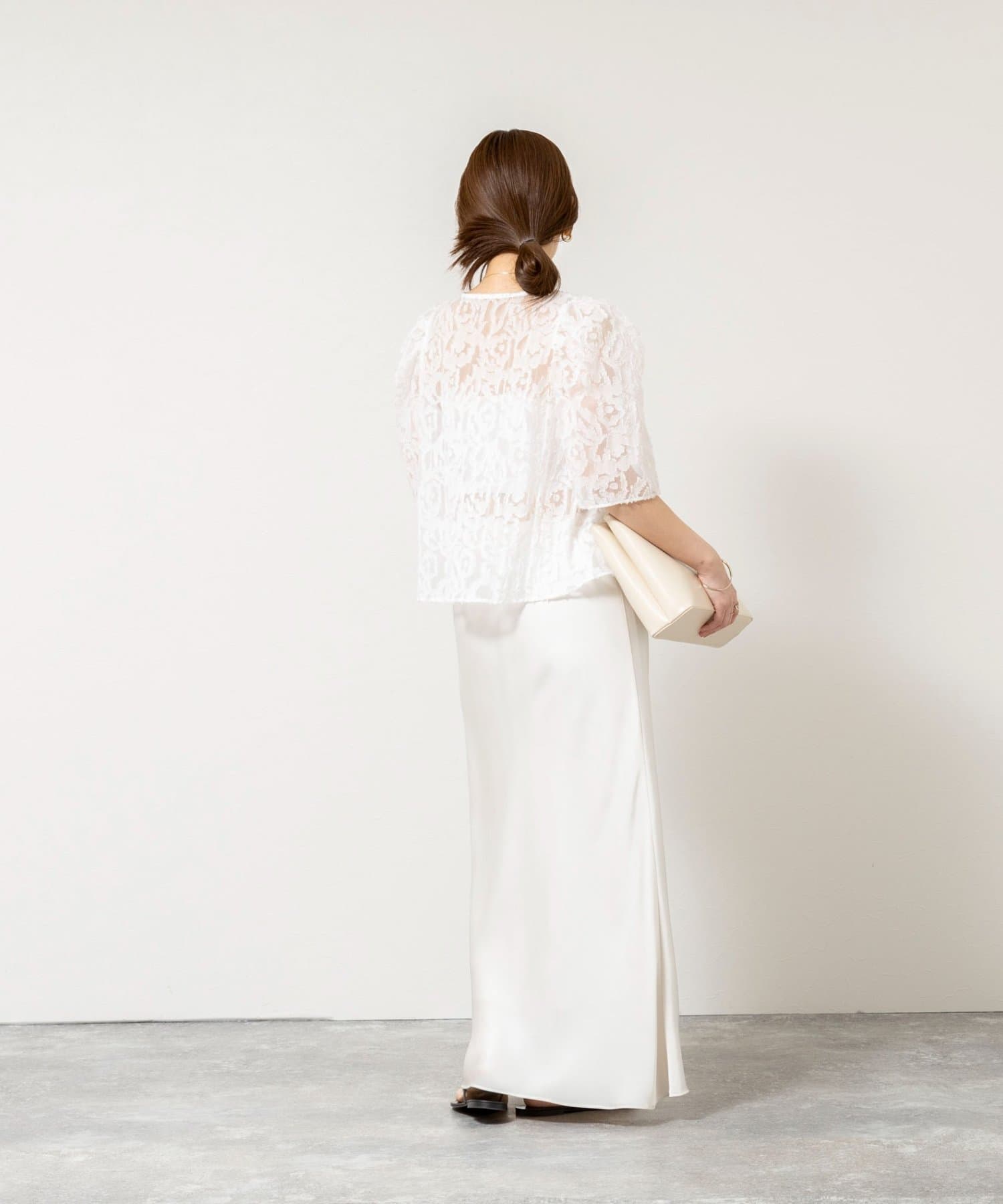 ・透け感のあるオーガンジー素材をベースに手作業でカットを施した立体感と表情がある軽やかな素材感