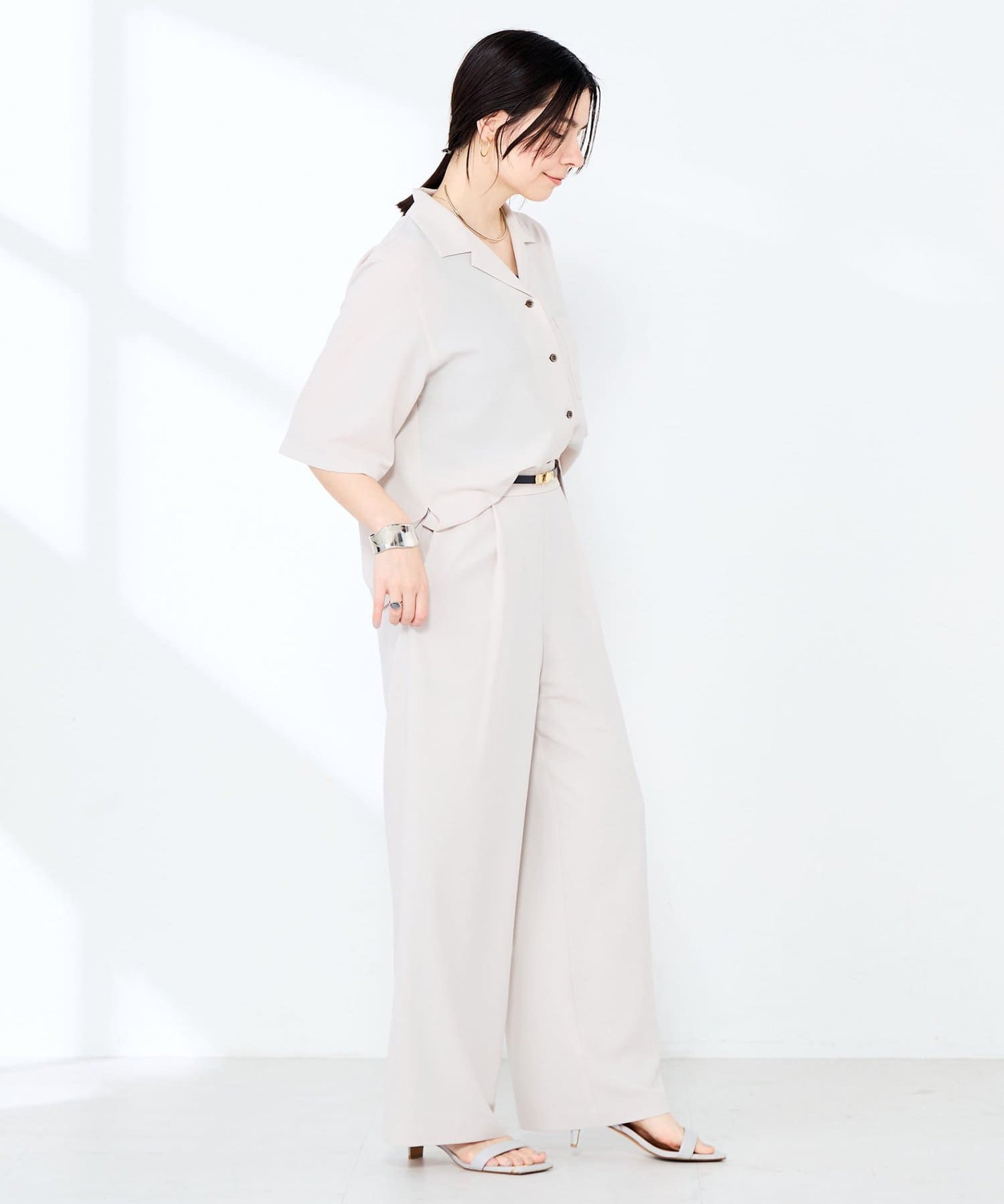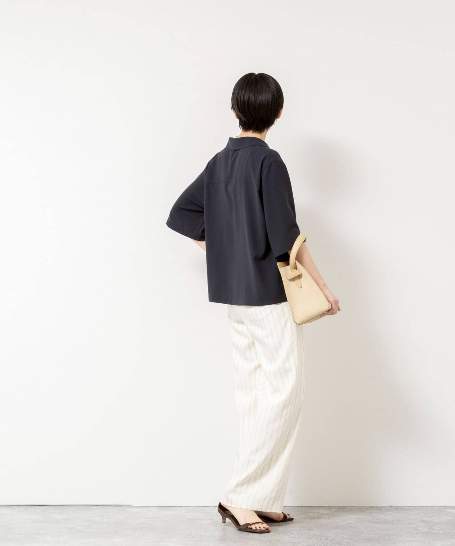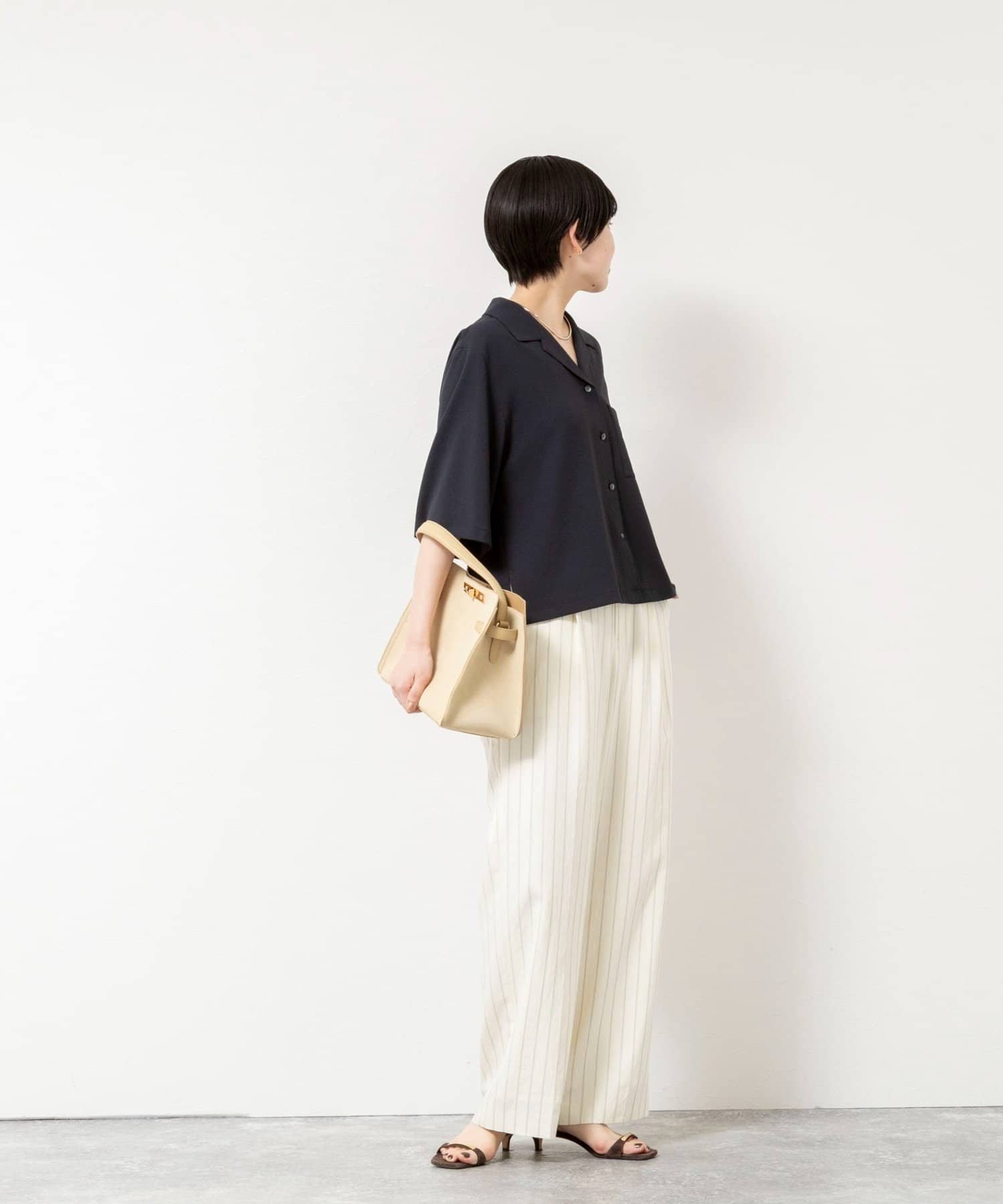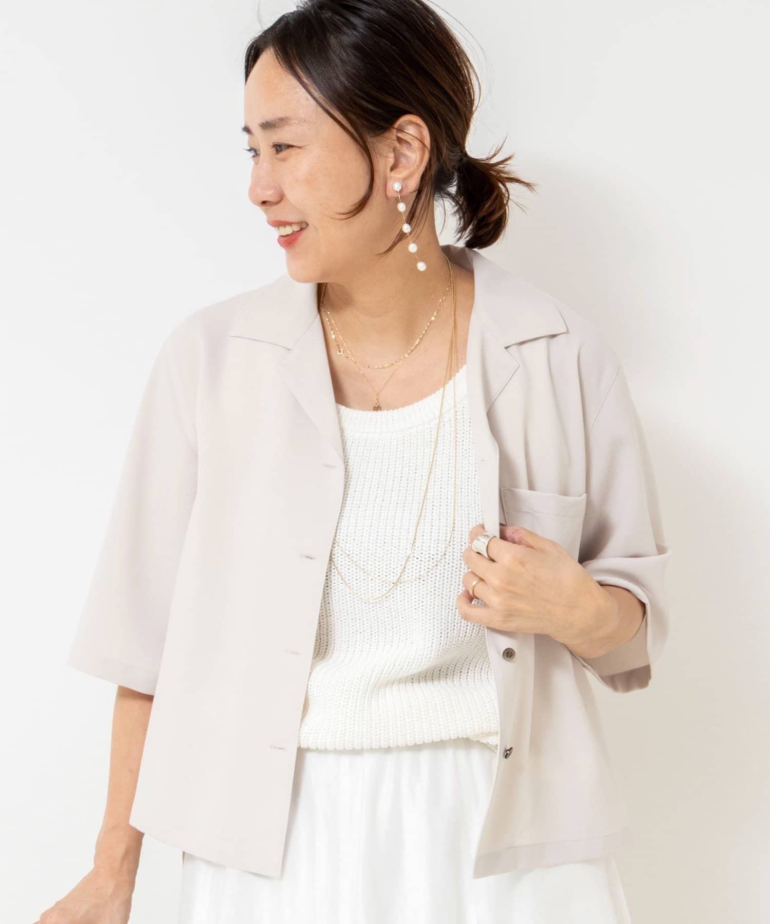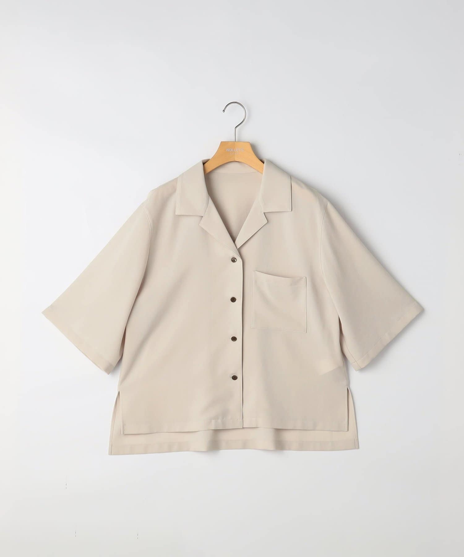 ・オープンカラーのショート丈シャツ