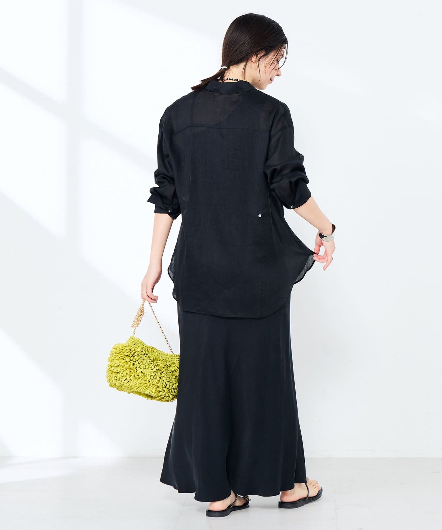 ・背中心と、フロントのアレンジ釦で、シルエットの変化を楽しめるシャツ