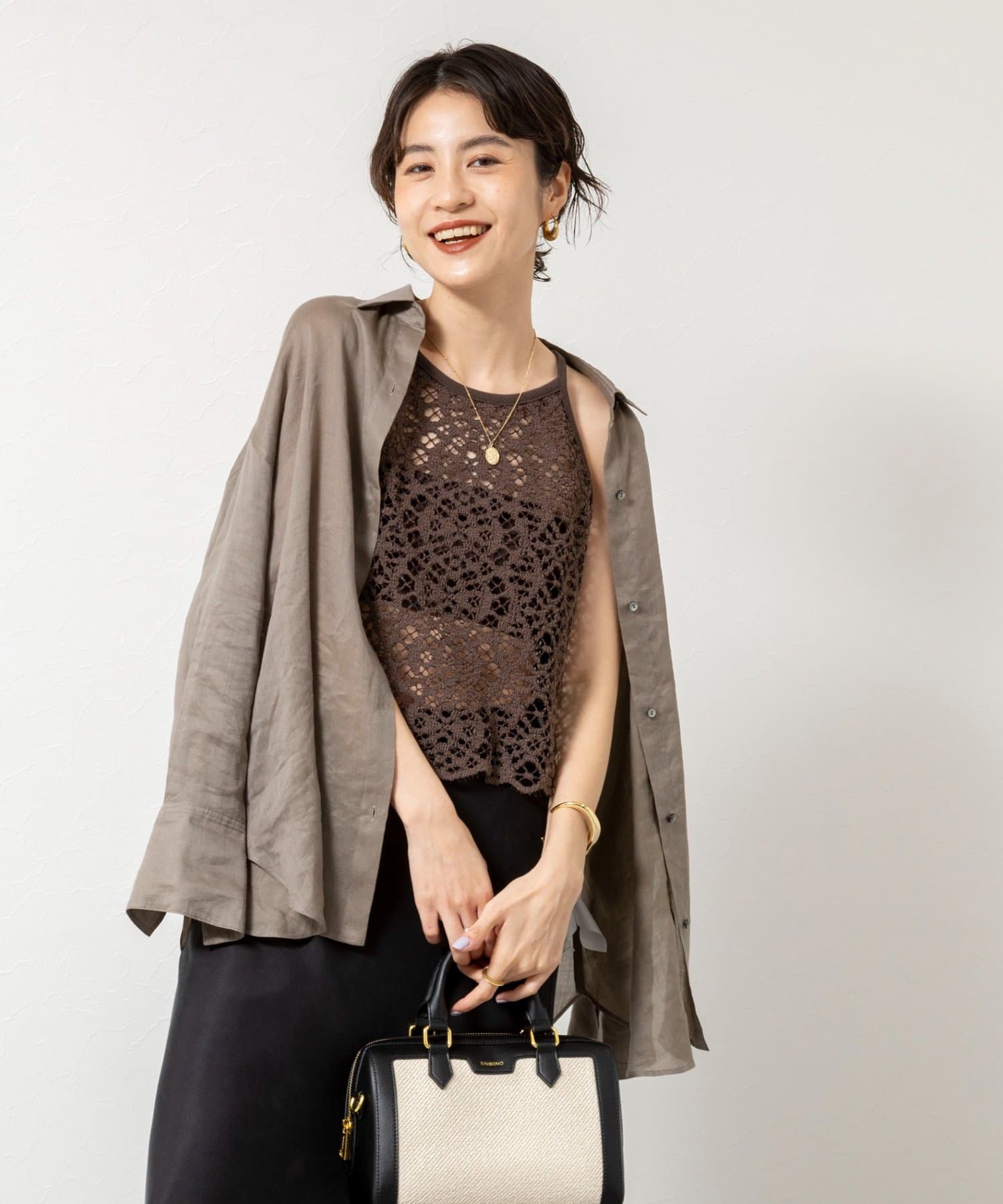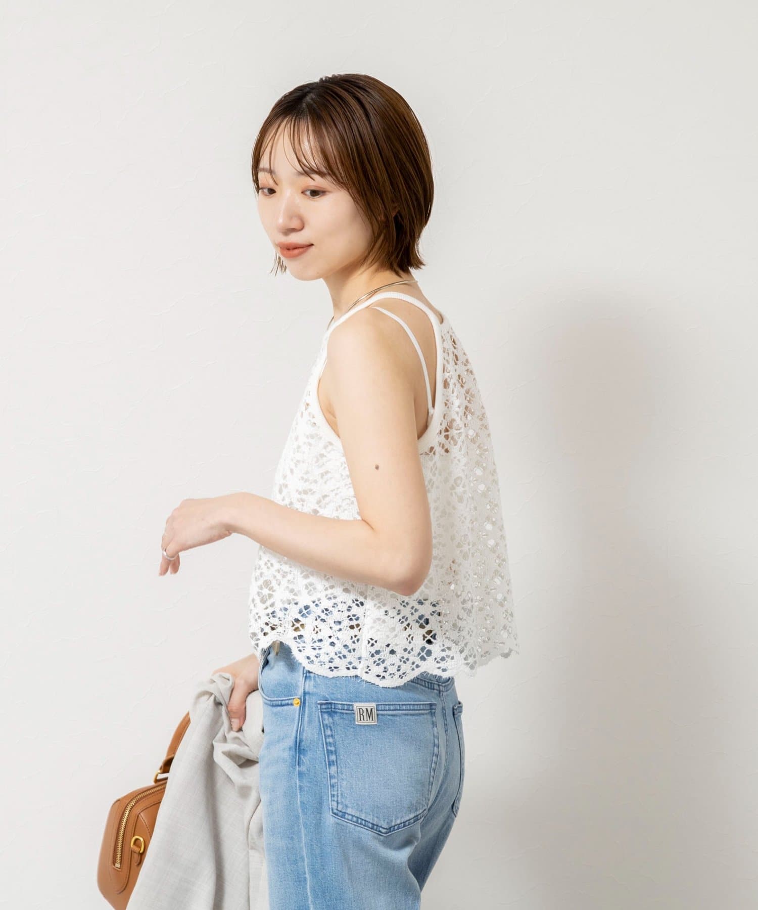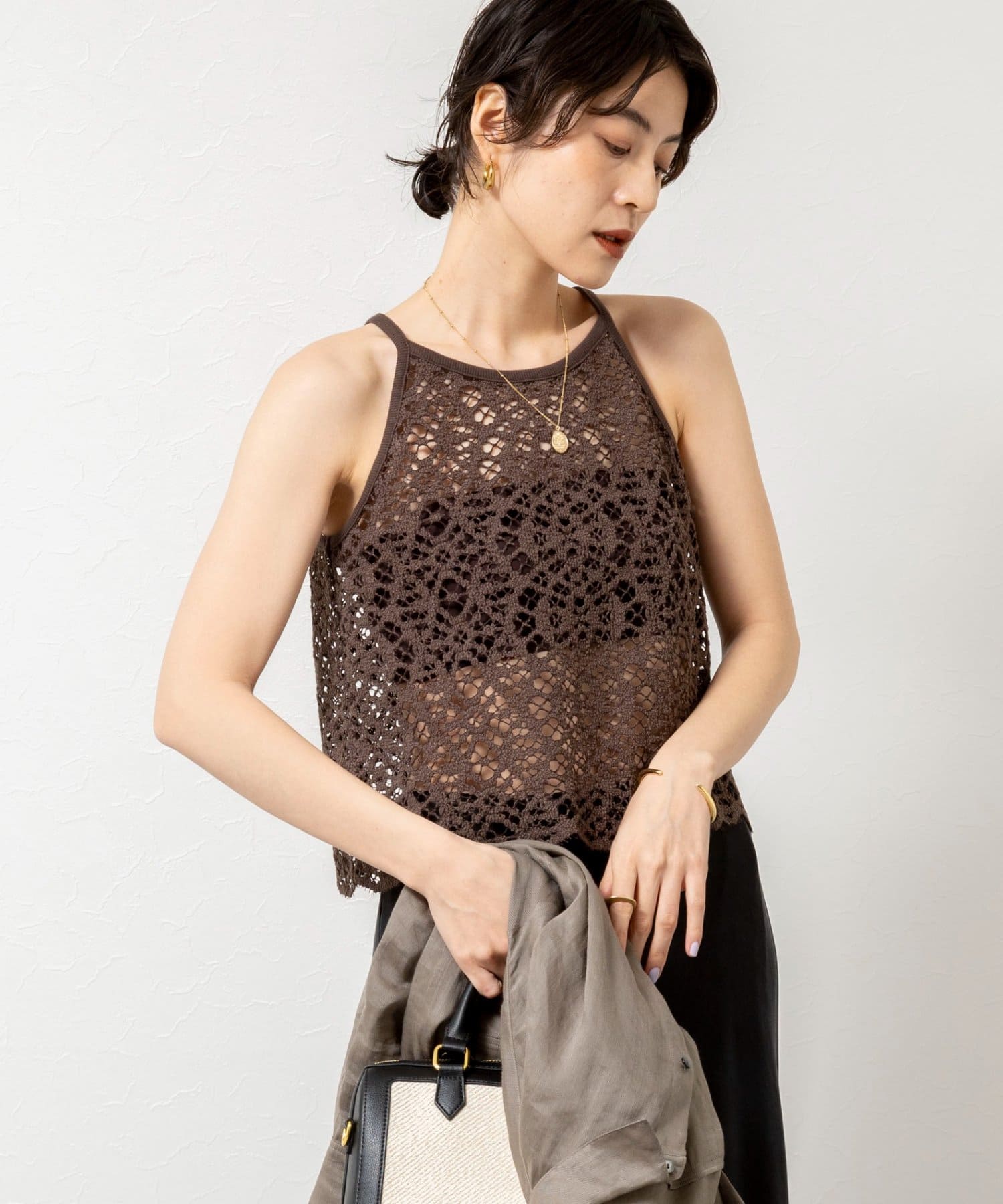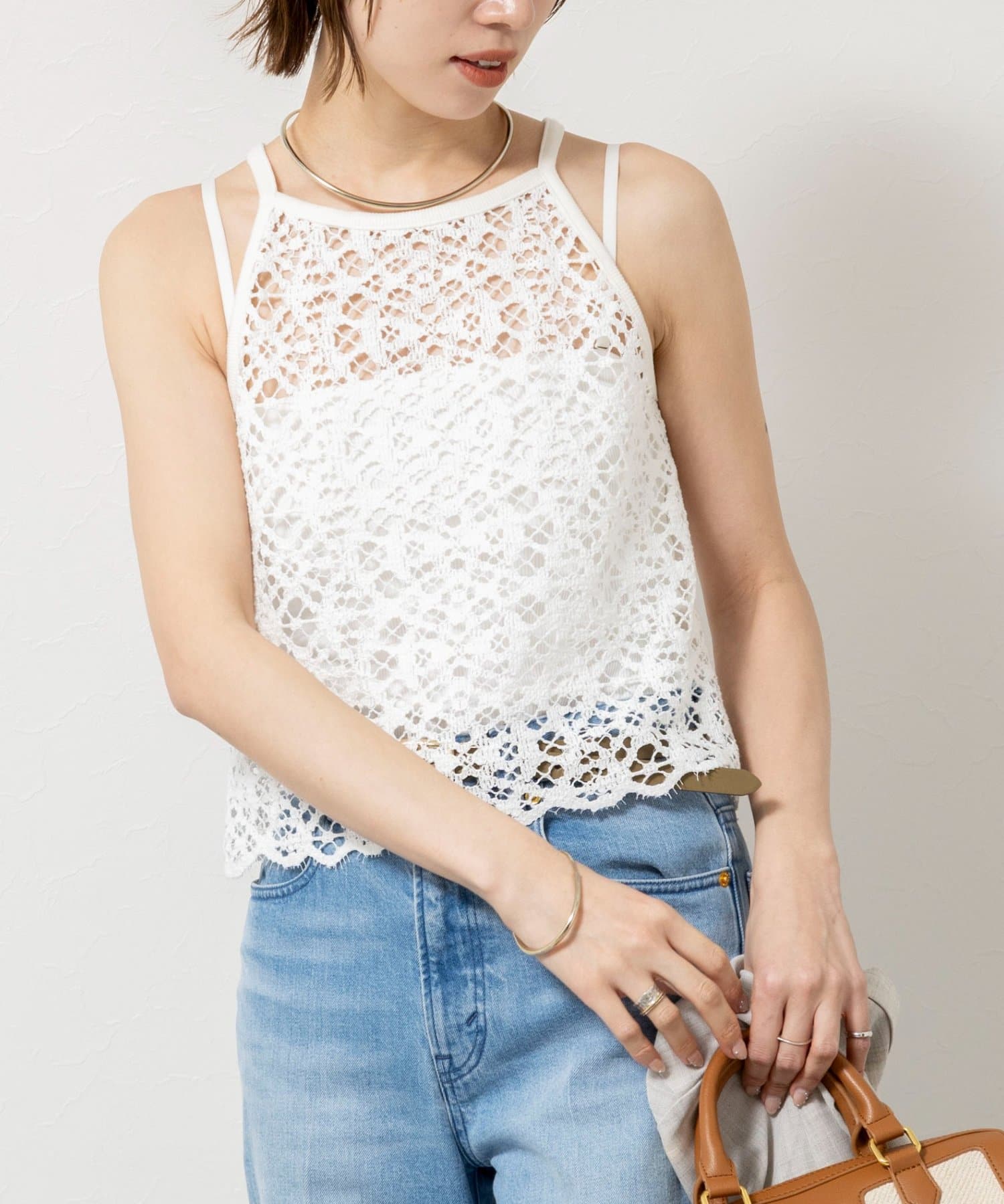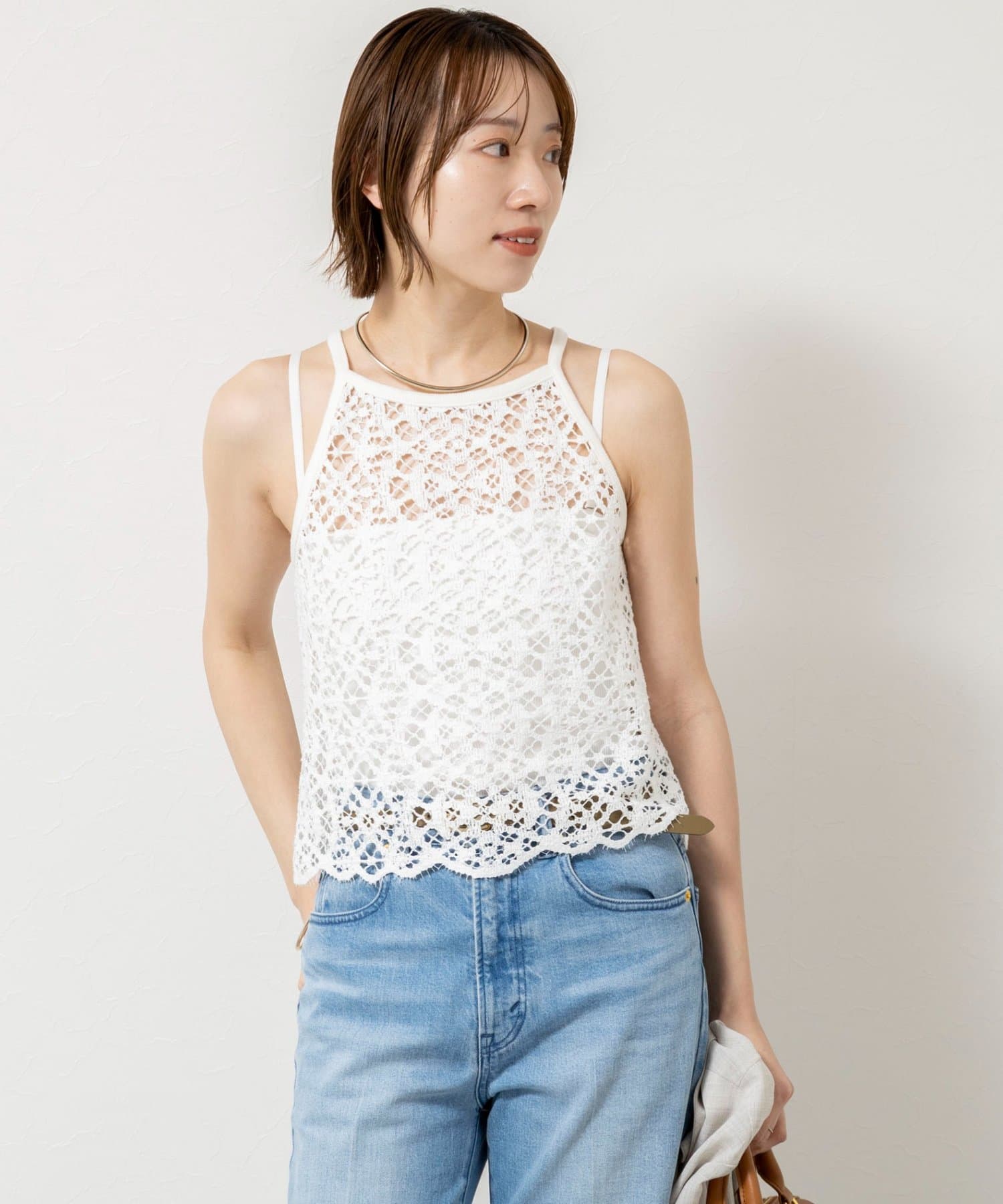 ウォッシャブルクロッシェレースアメスリタンクトップ