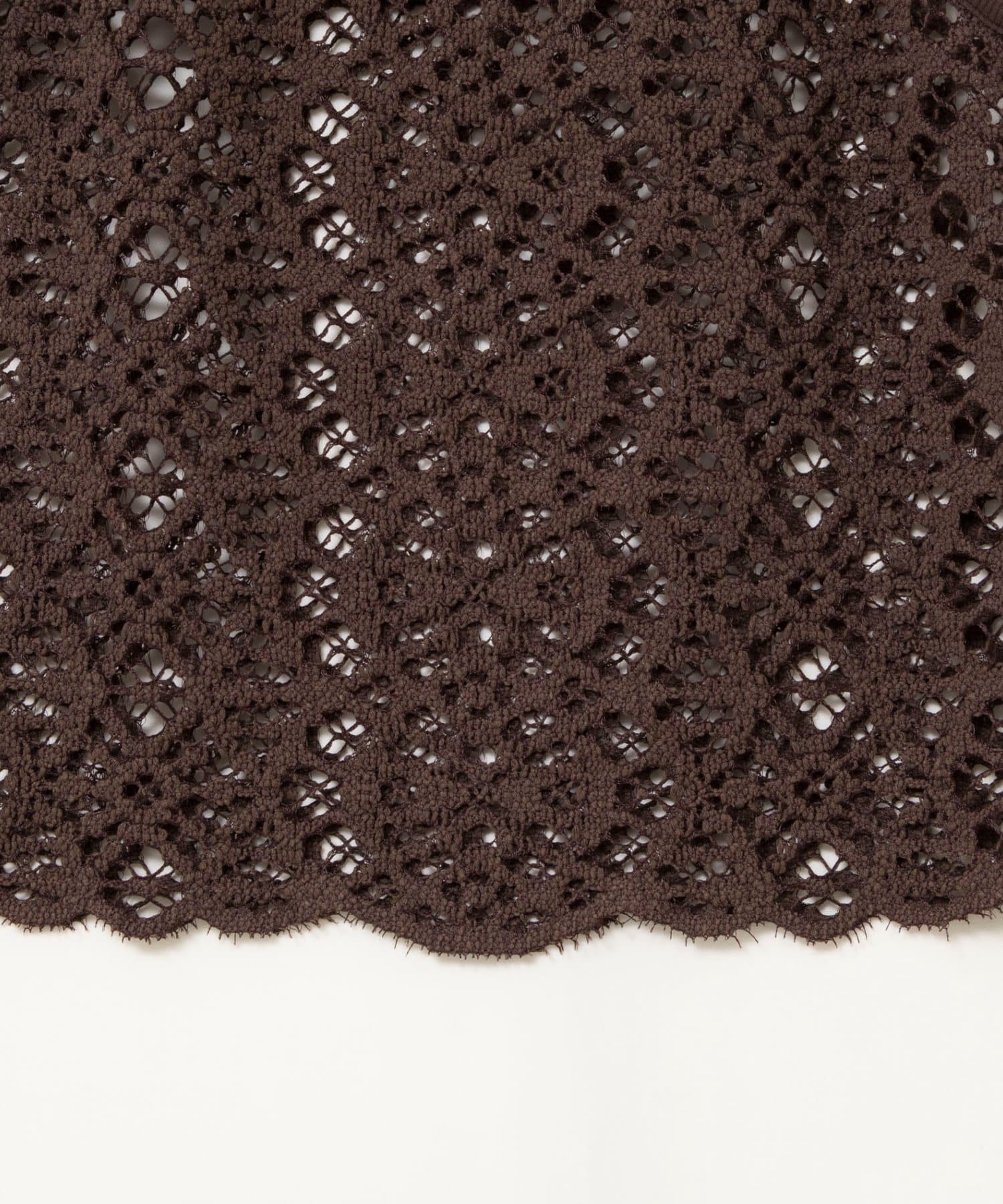 ・トレンドのクロッシェ調の立体感のあるレース素材を使用したヘルシーなアメスリ型のトップス