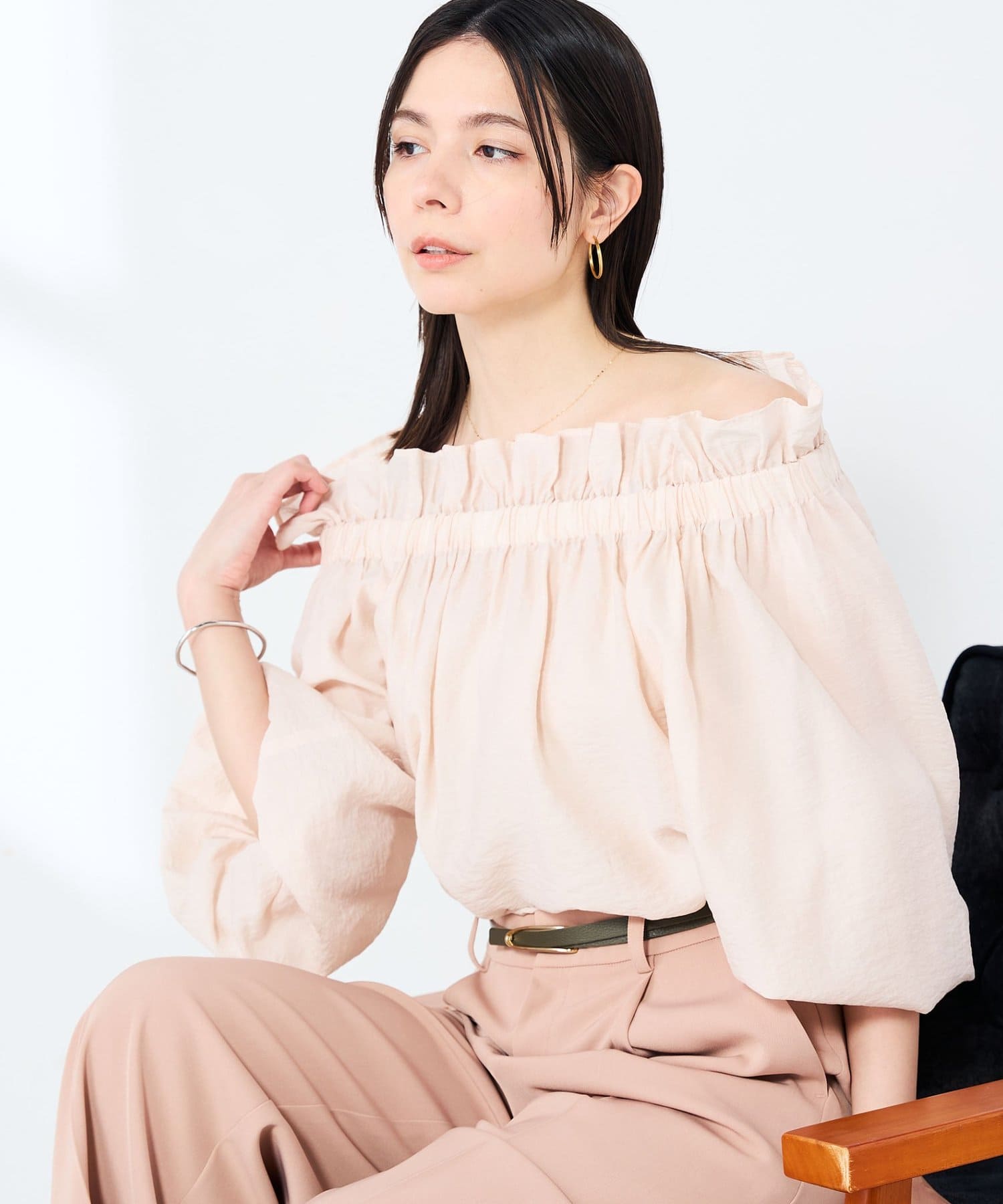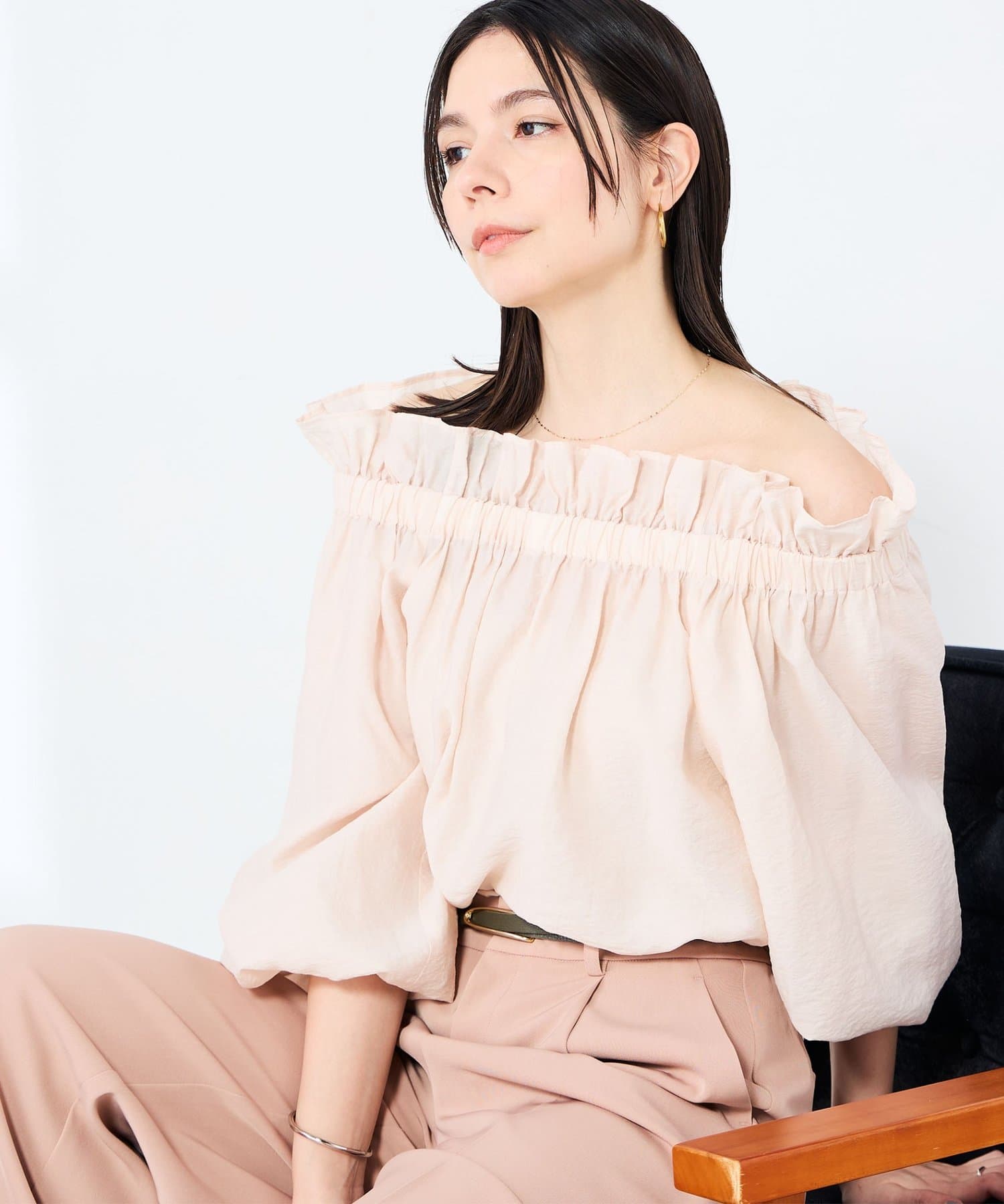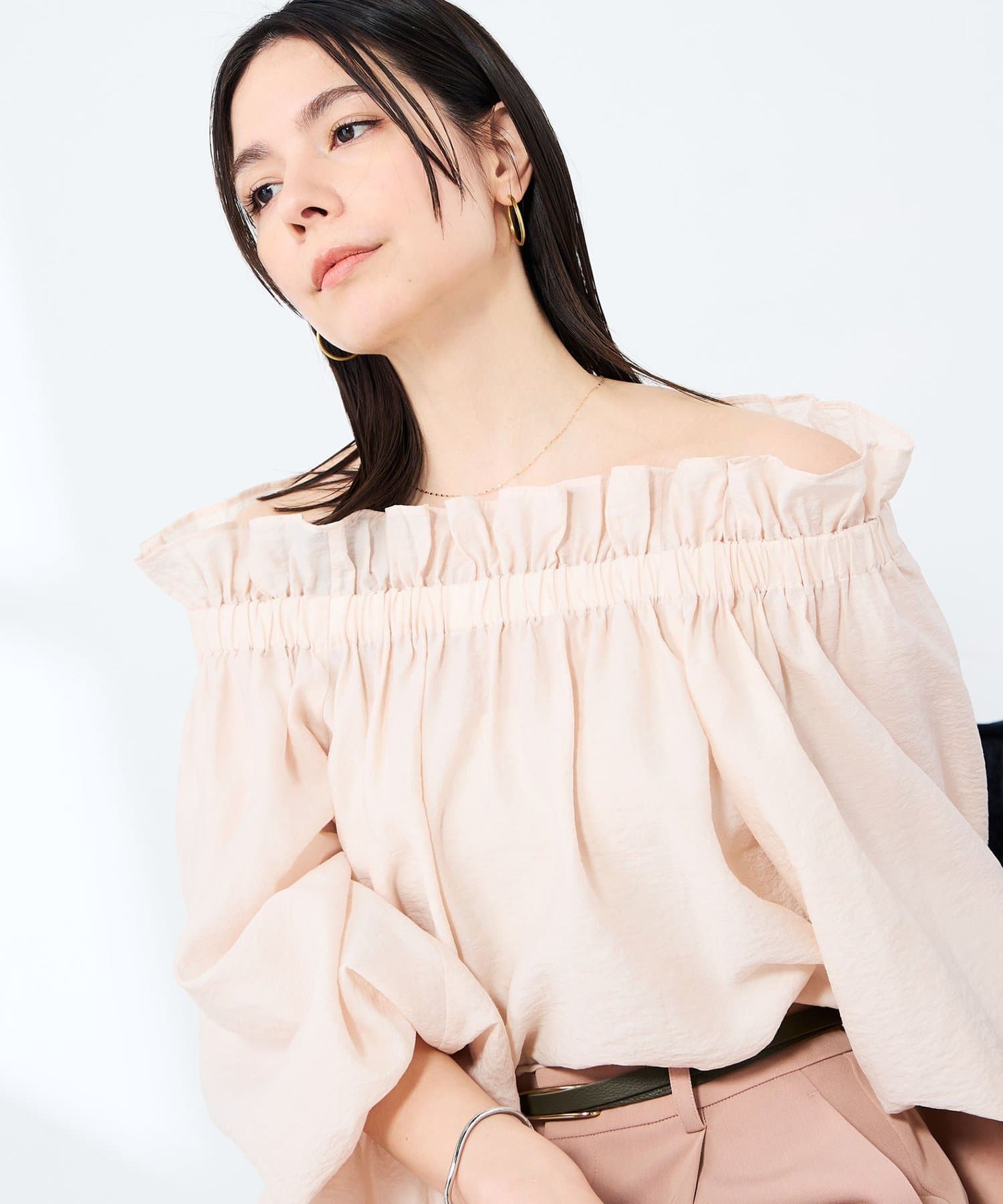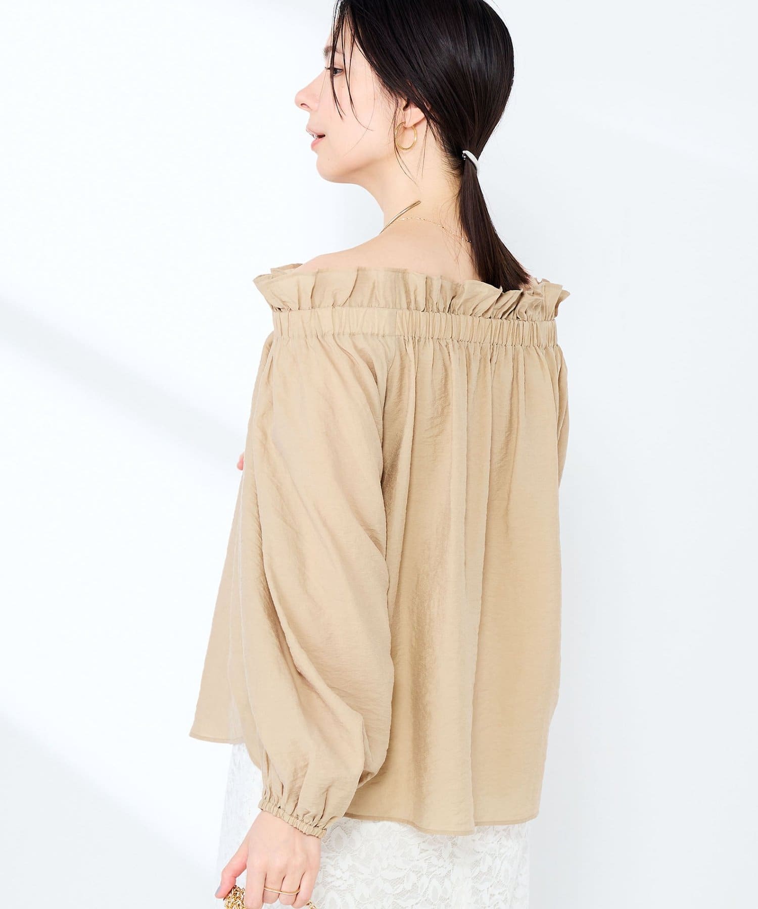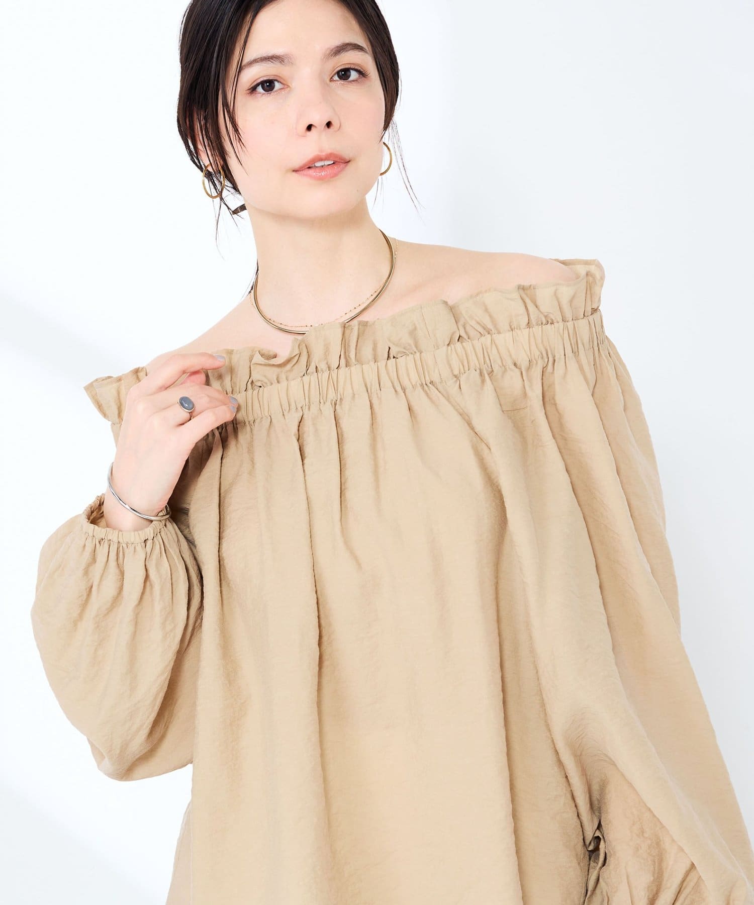 ・シルク混のシアー素材を使用したオフショルにもなるヘルシーな2WAYブラウス