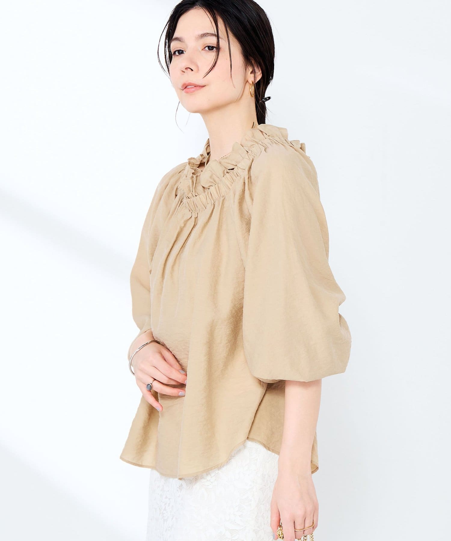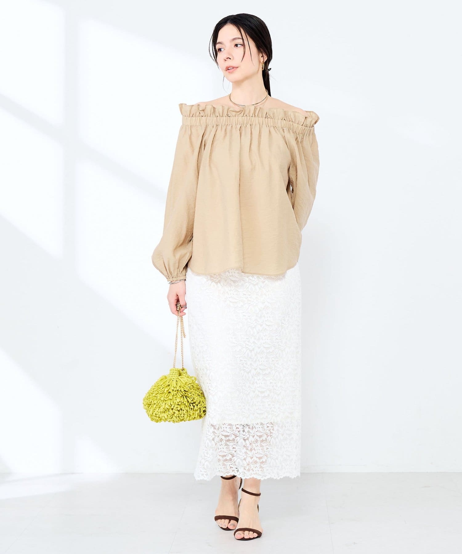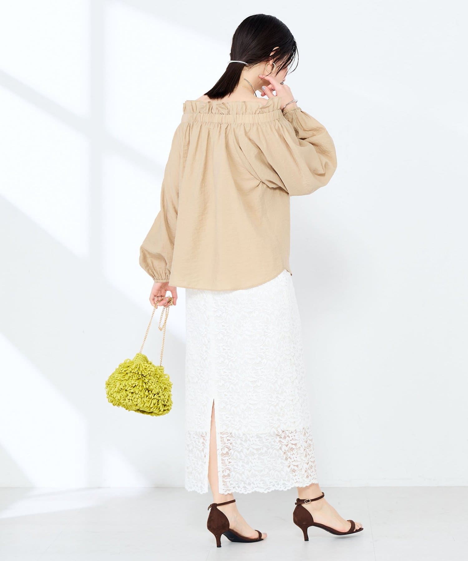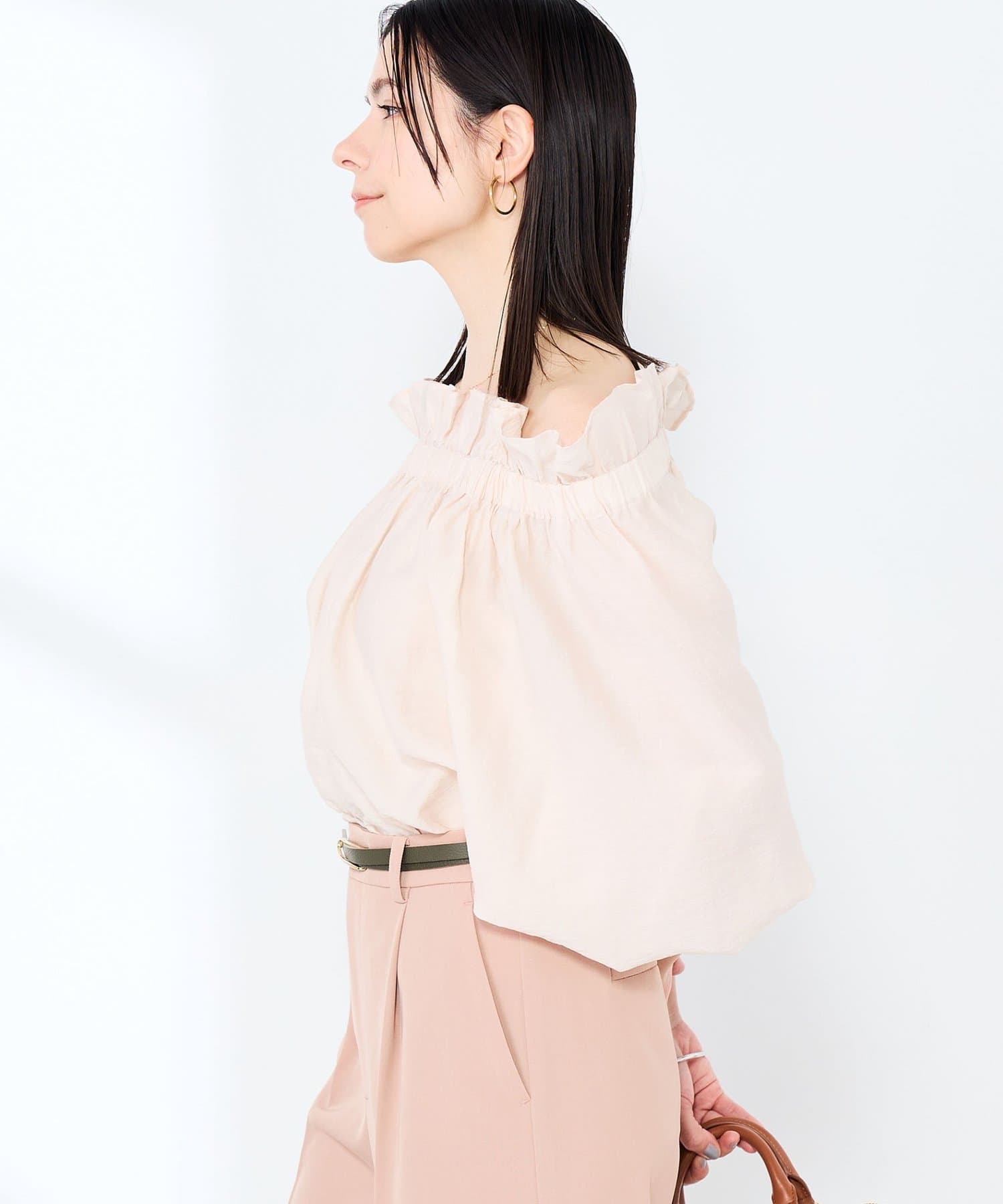 ・シルク混のシアー素材を使用したオフショルにもなるヘルシーな2WAYブラウス