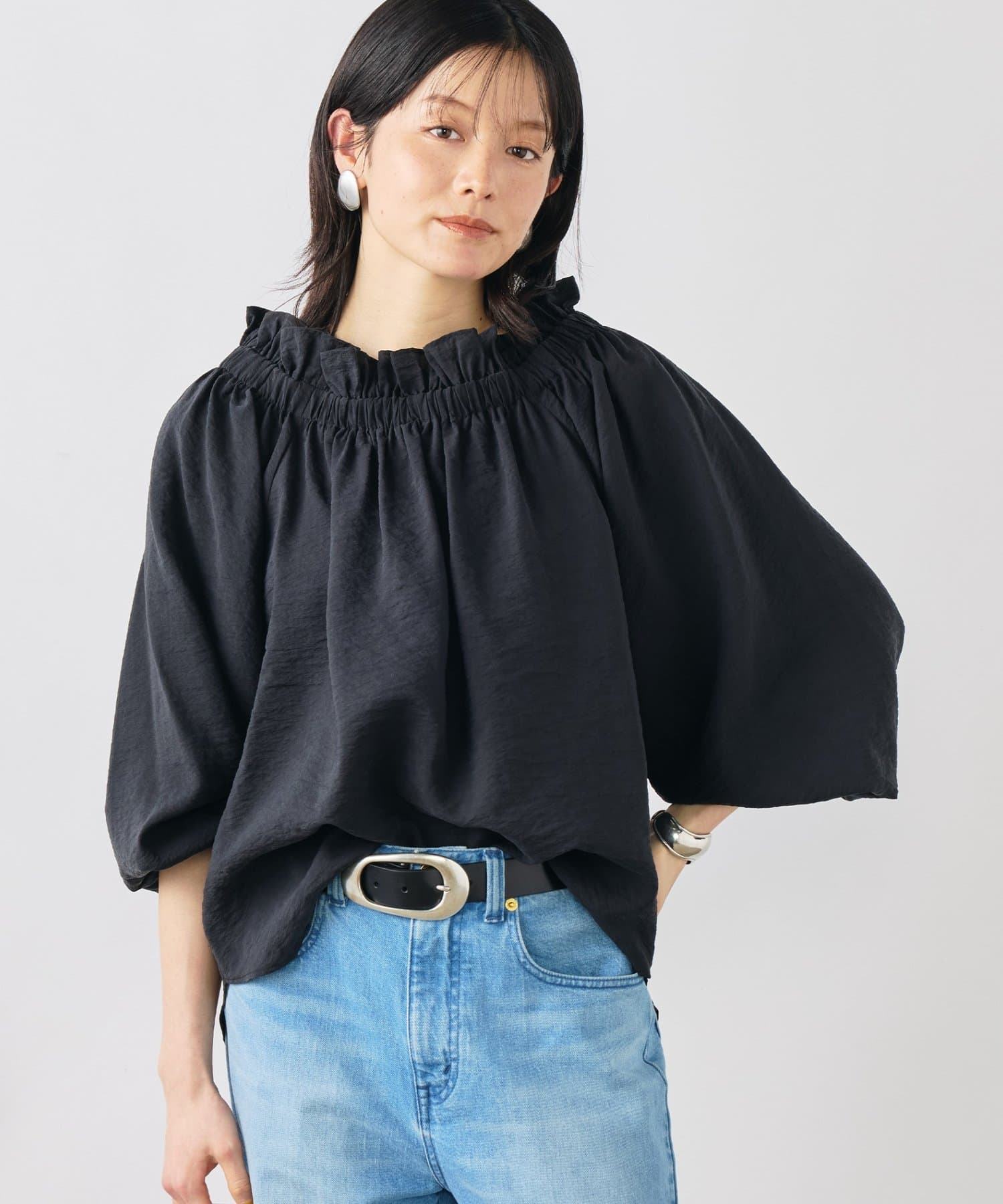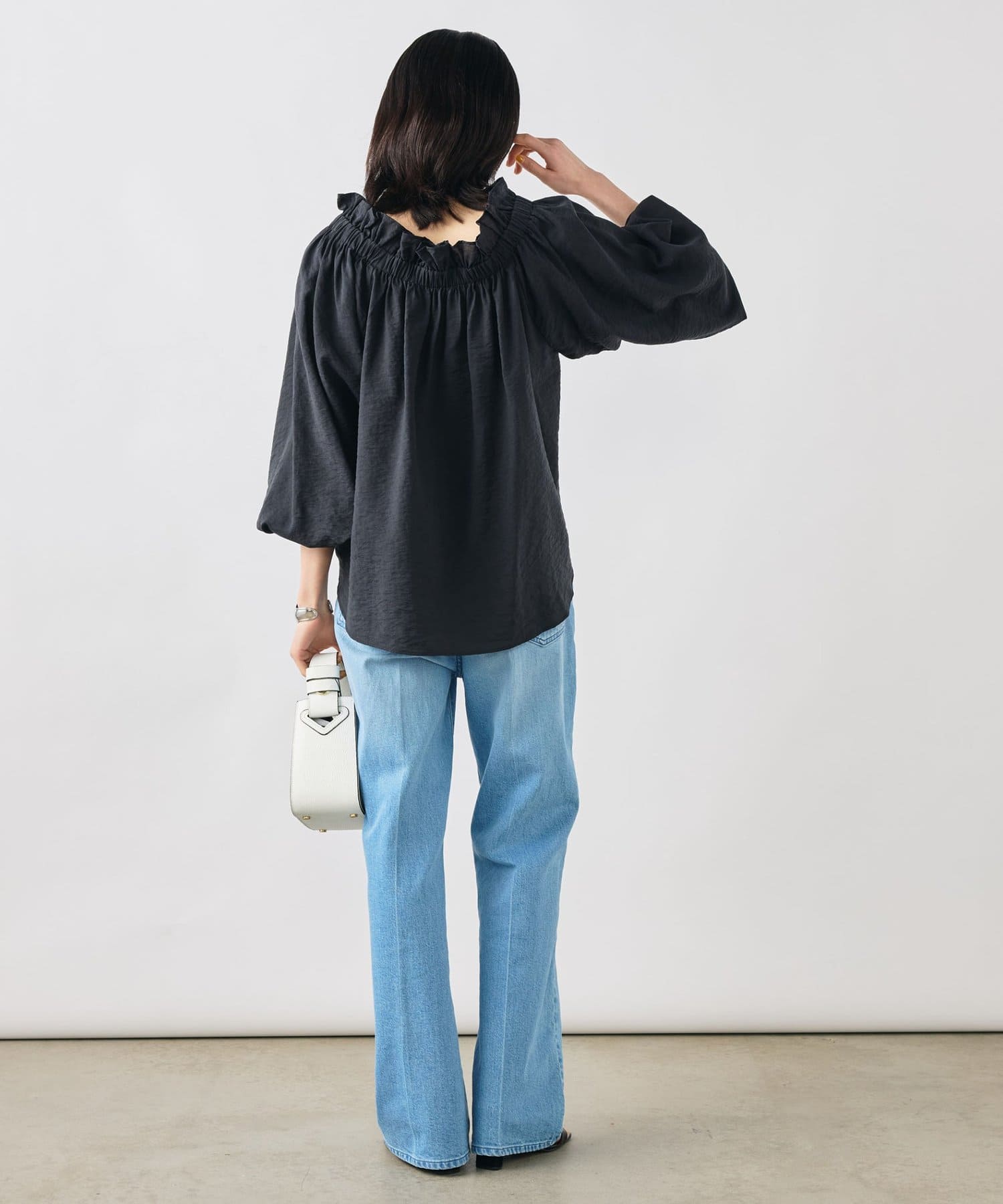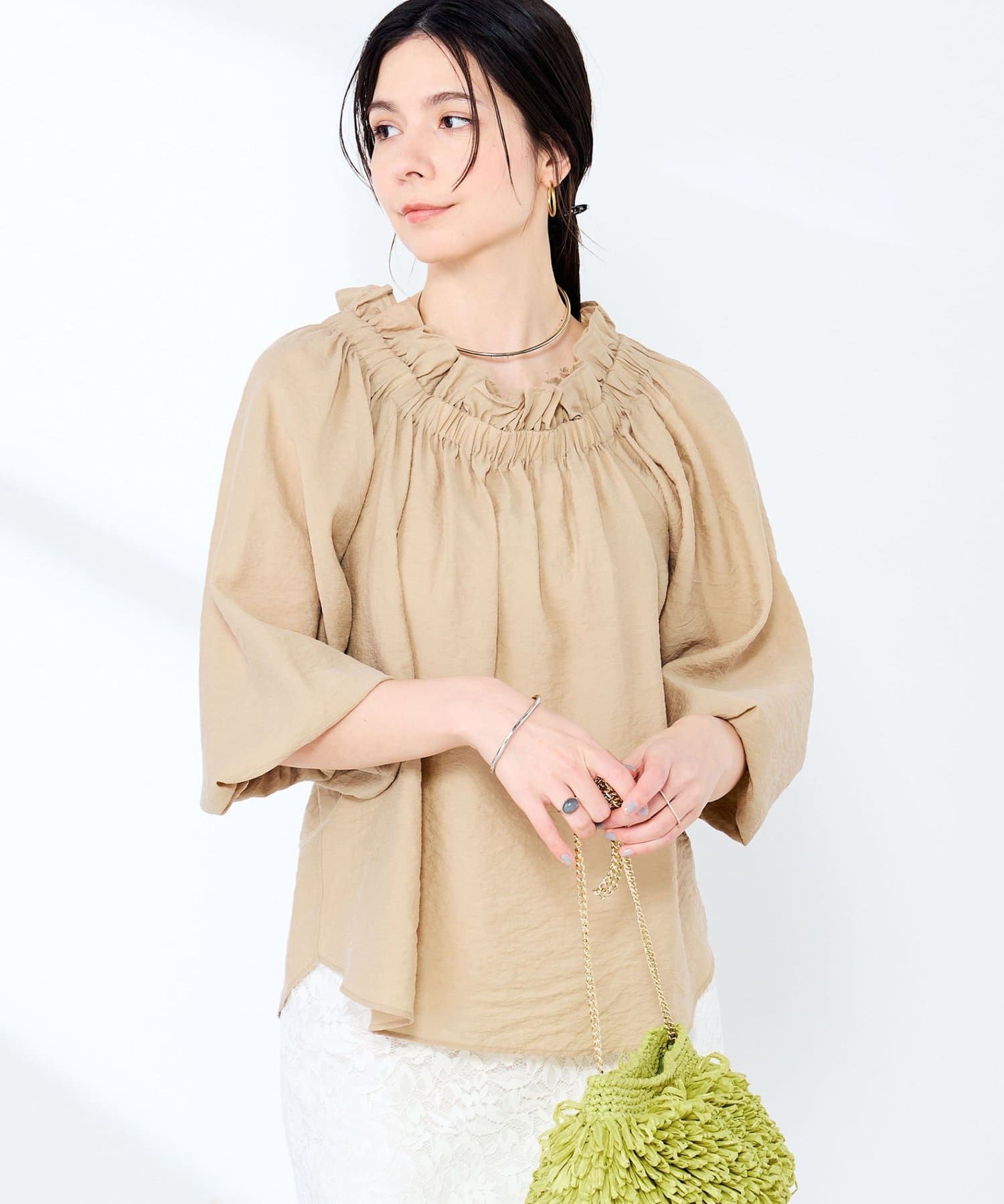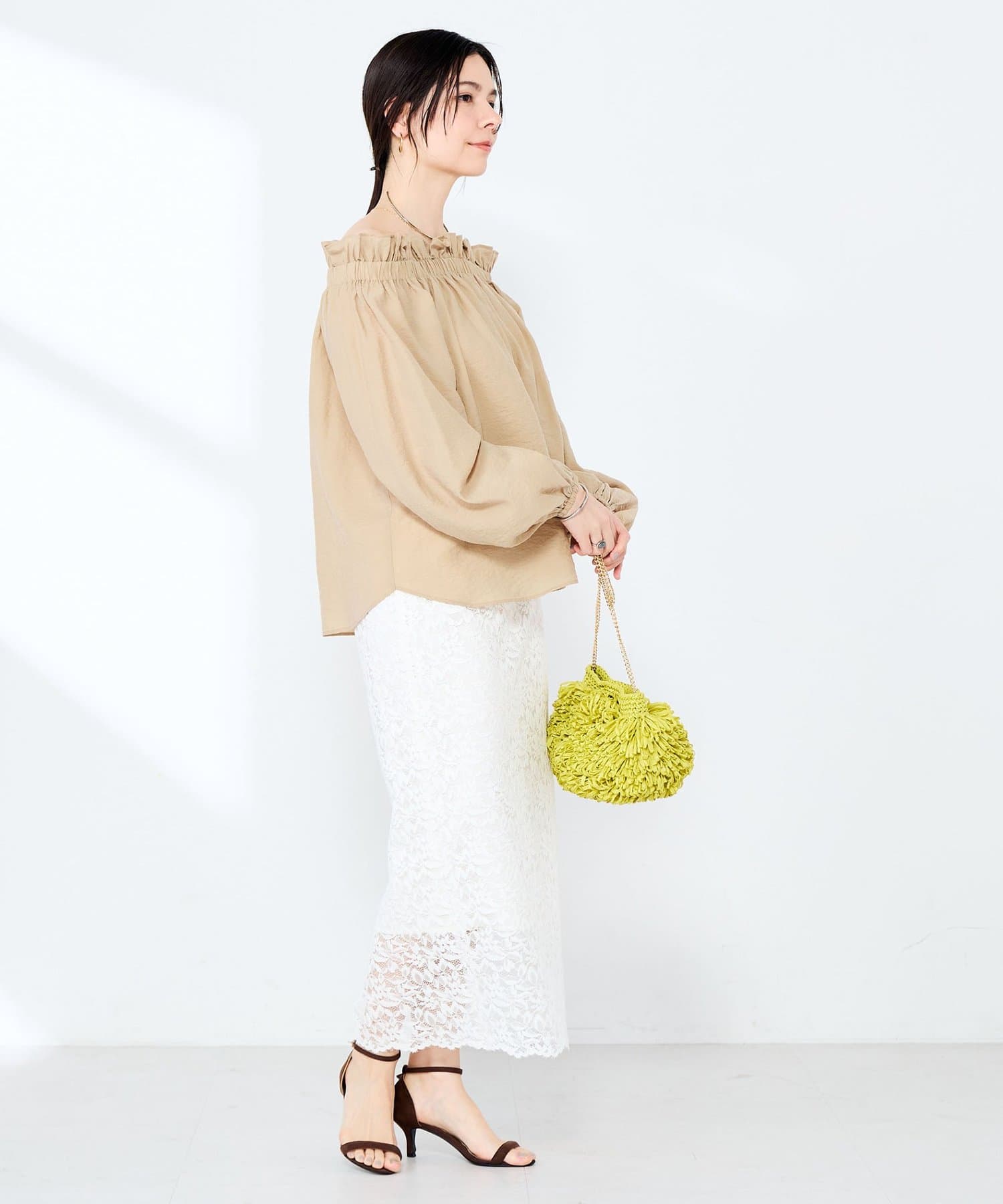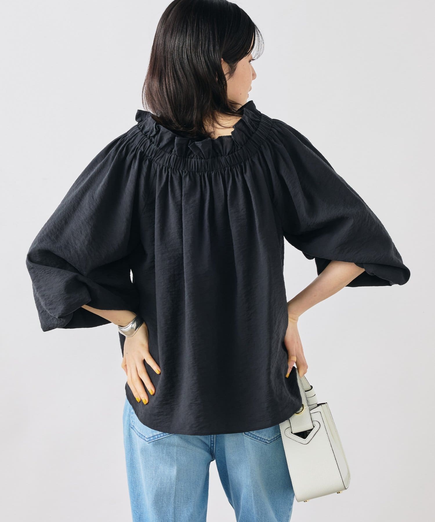 ・シルク混のシアー素材を使用したオフショルにもなるヘルシーな2WAYブラウス