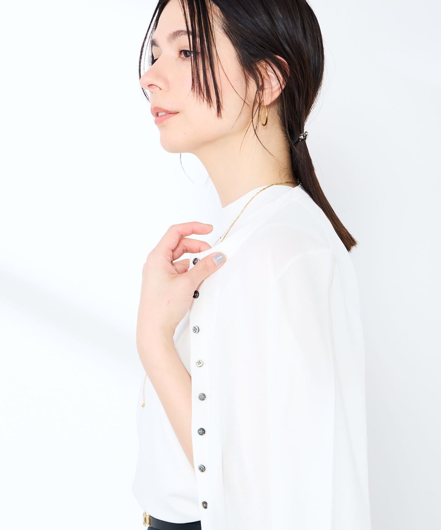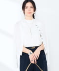 ・着丈を少し短くし、多めに付けた配色になる小さな貝釦がデザインポイント