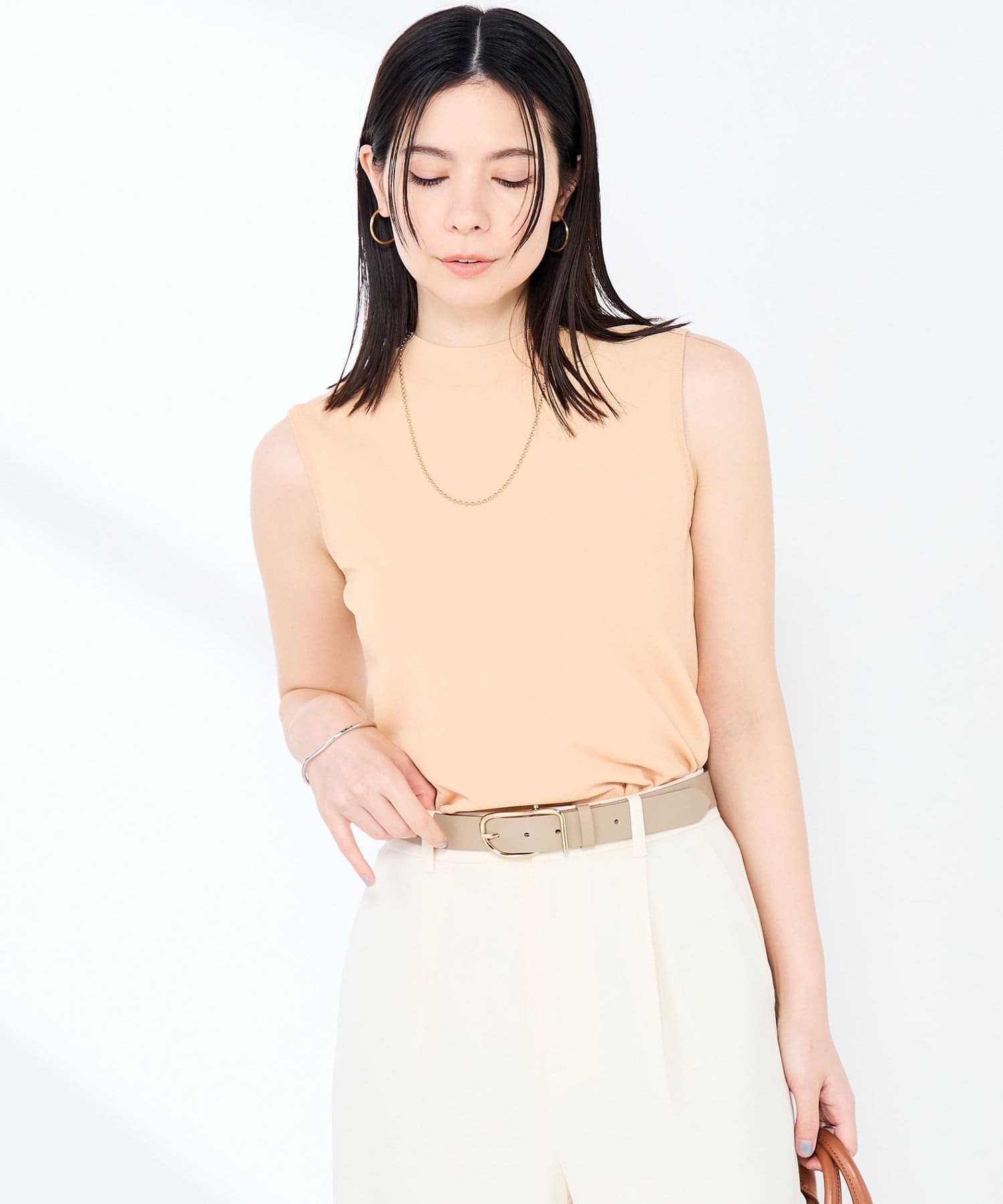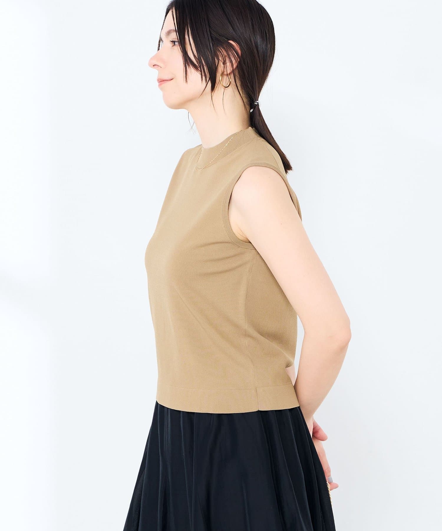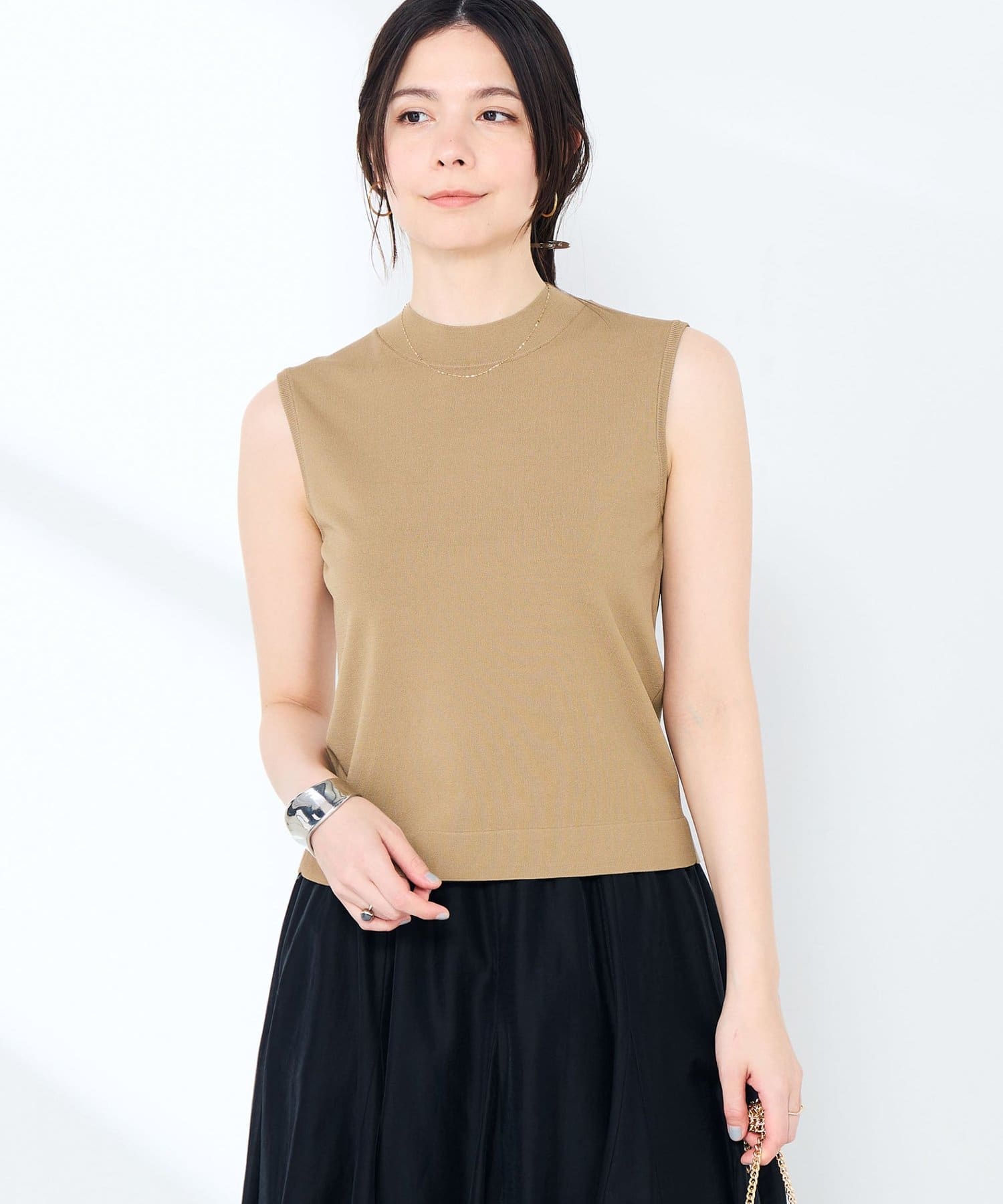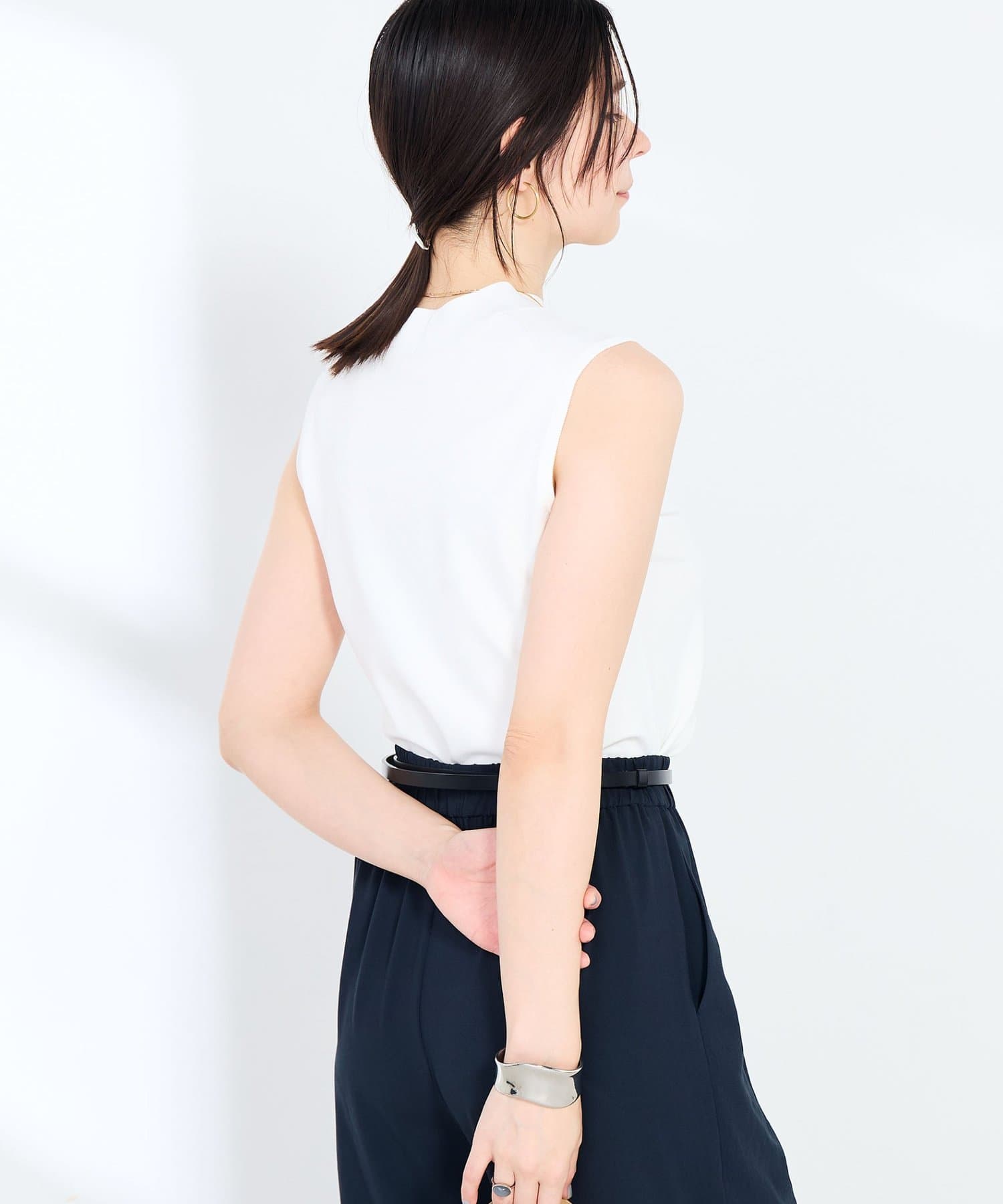 ・マルチファンクション素材のハイネックノースリーブプルオーバー