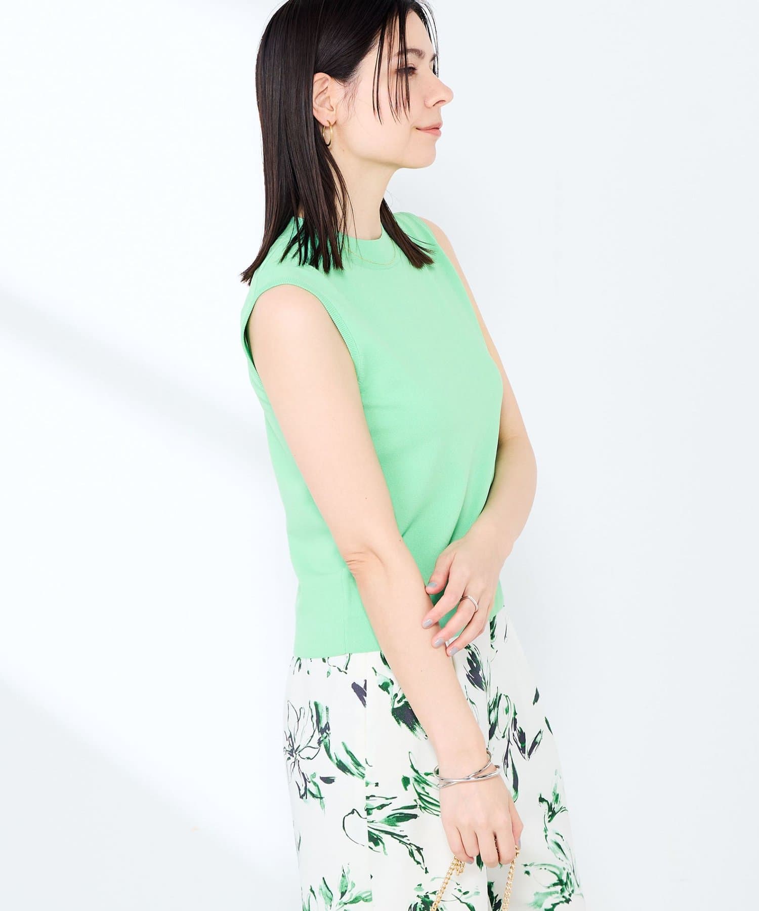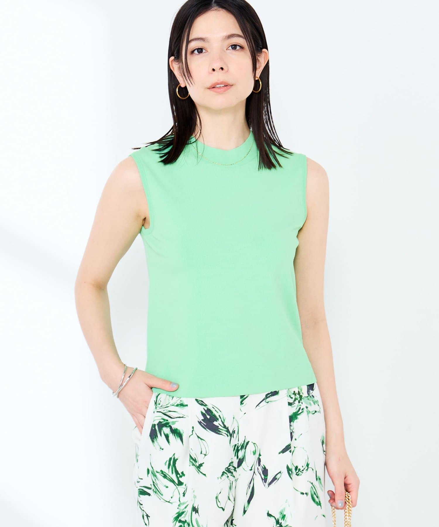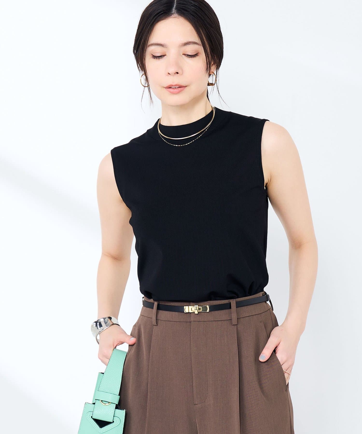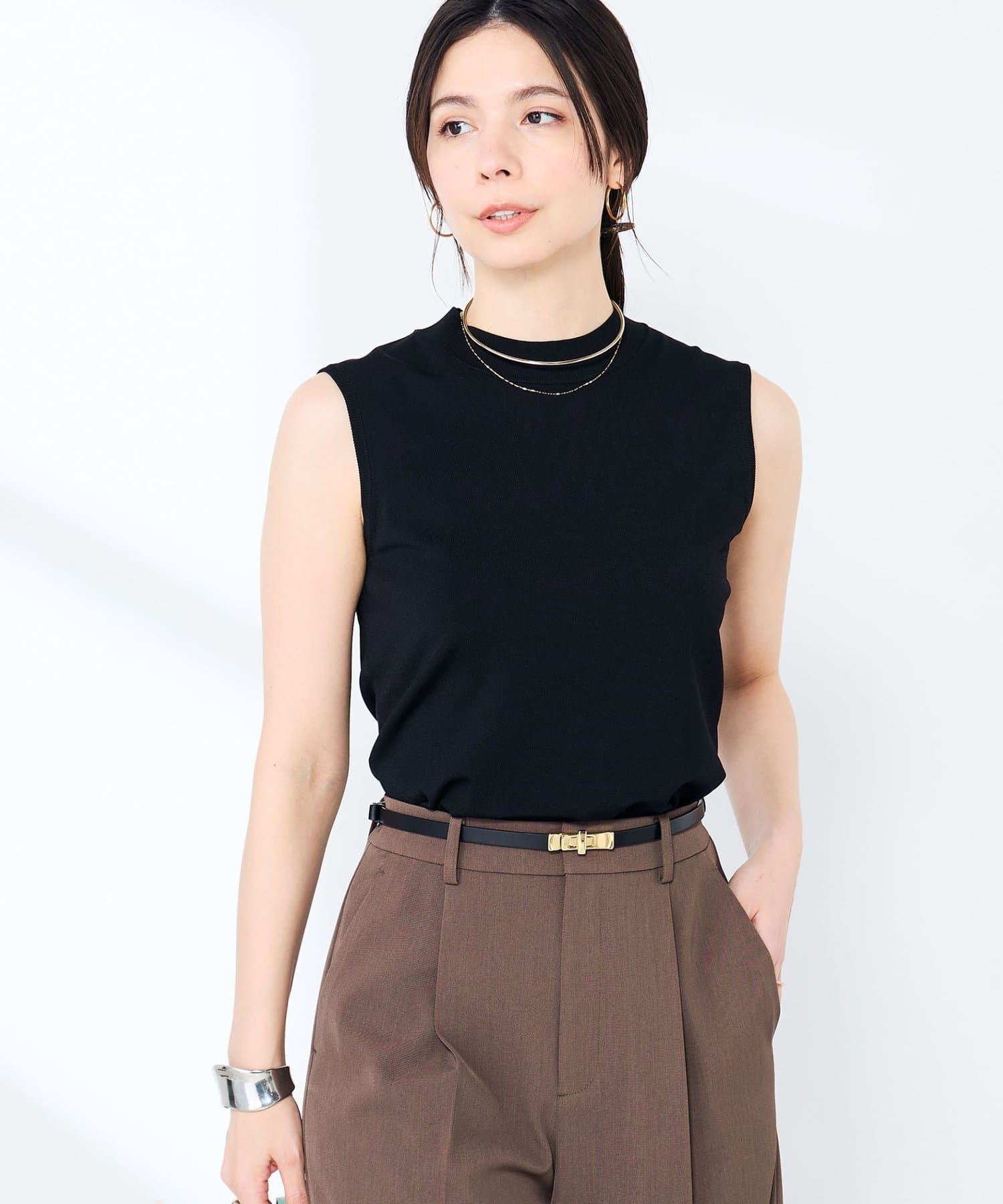 ・マルチファンクション素材のハイネックノースリーブプルオーバー