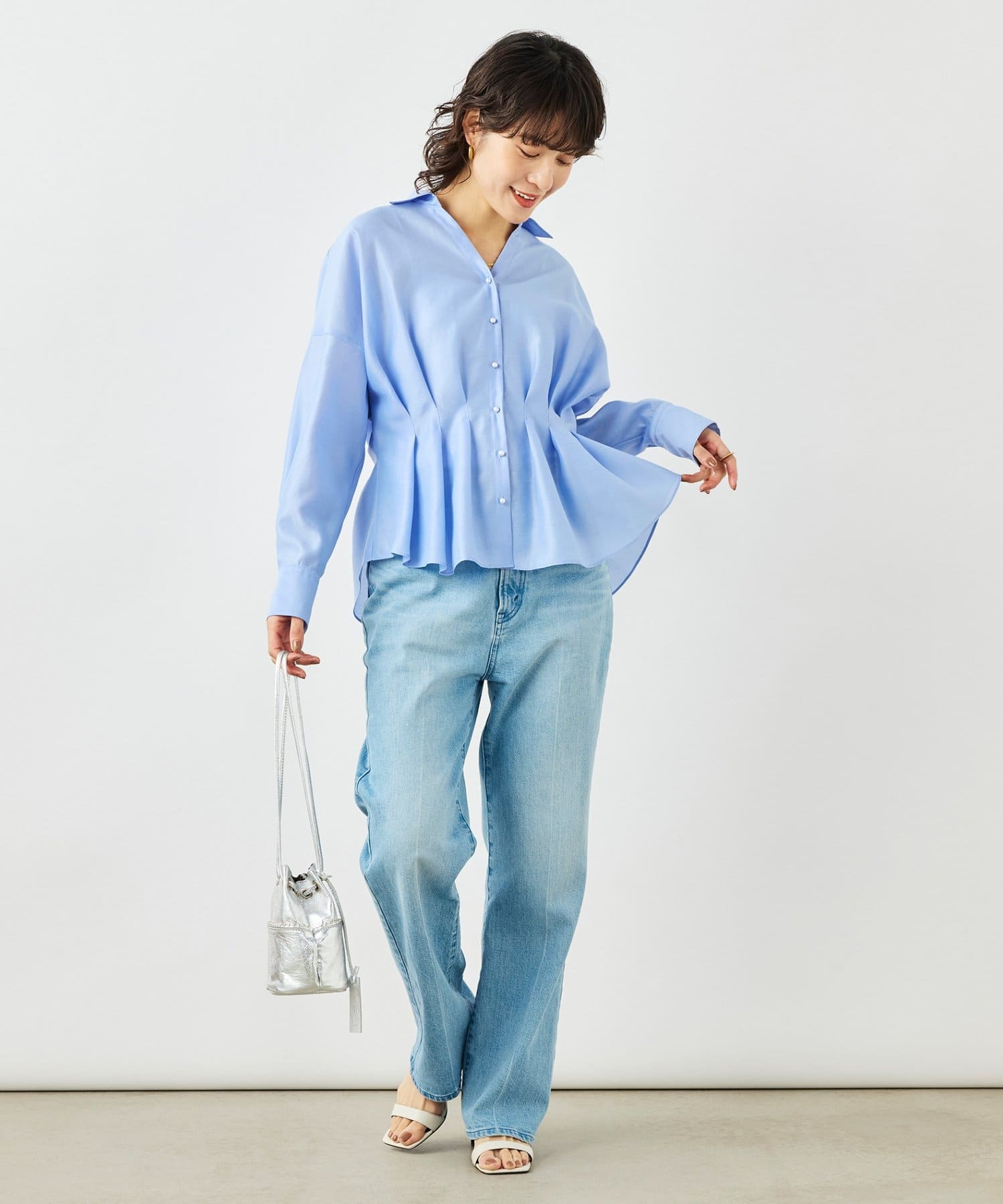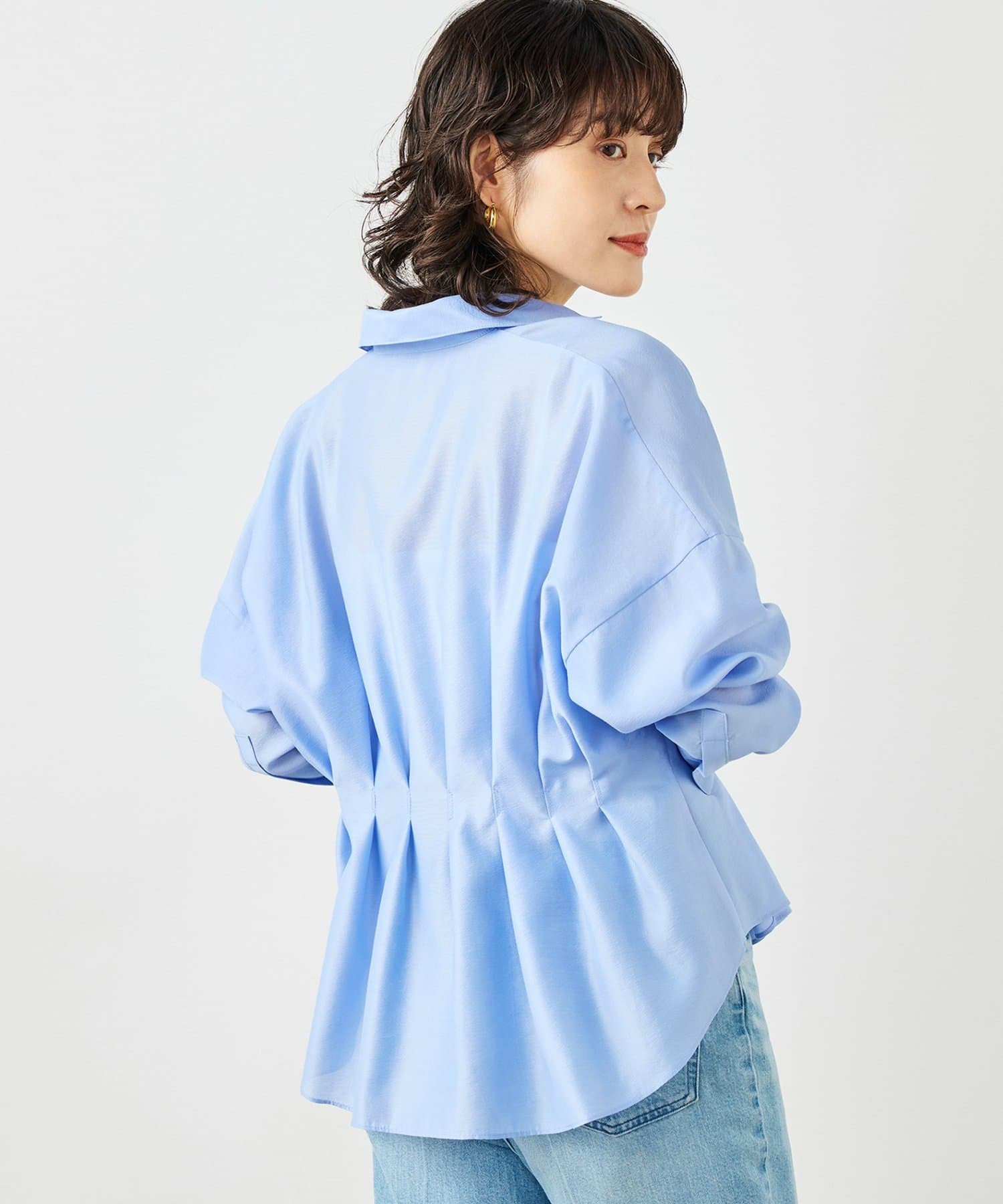 ウォッシャブルパール釦スキッパータックブラウス