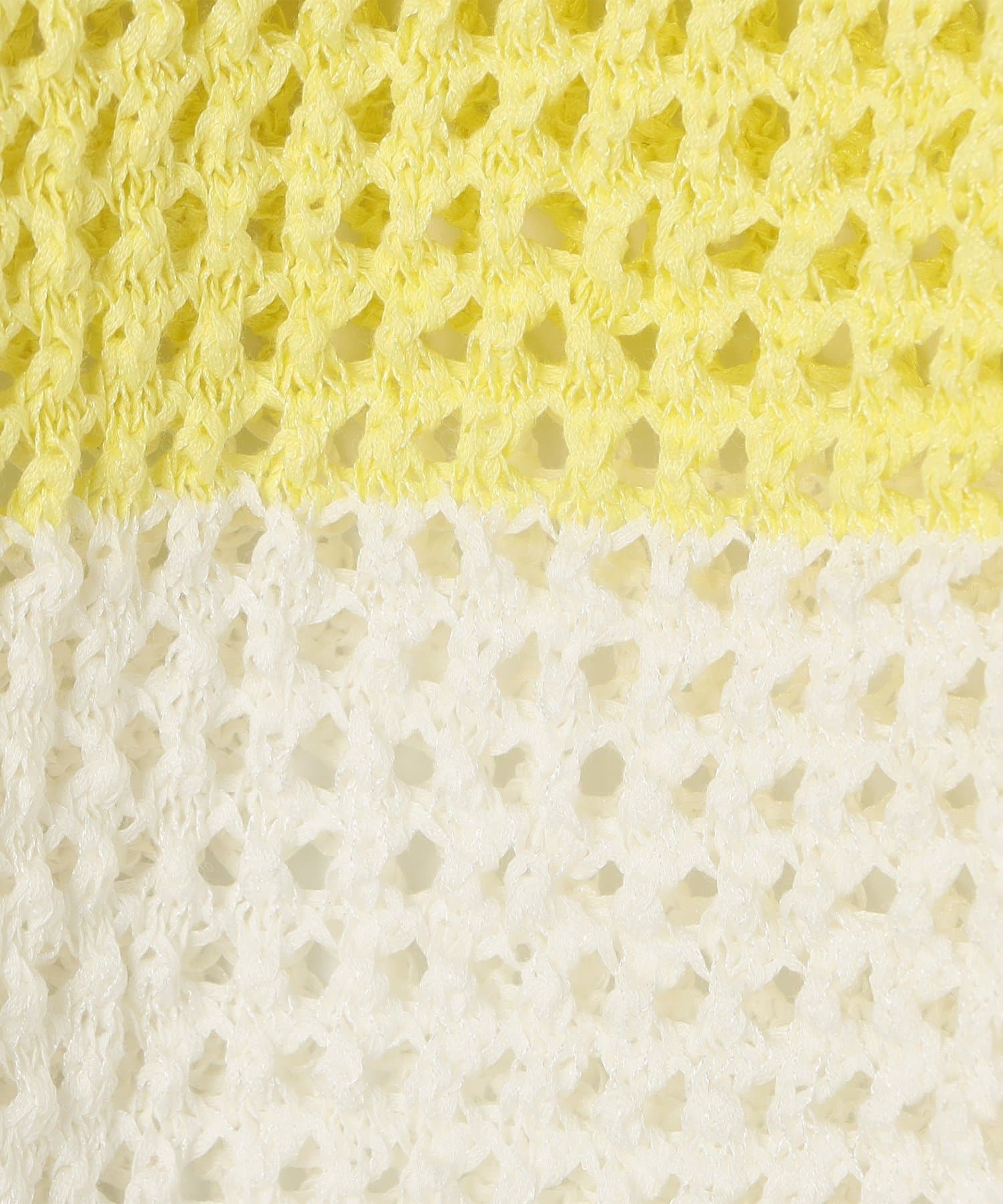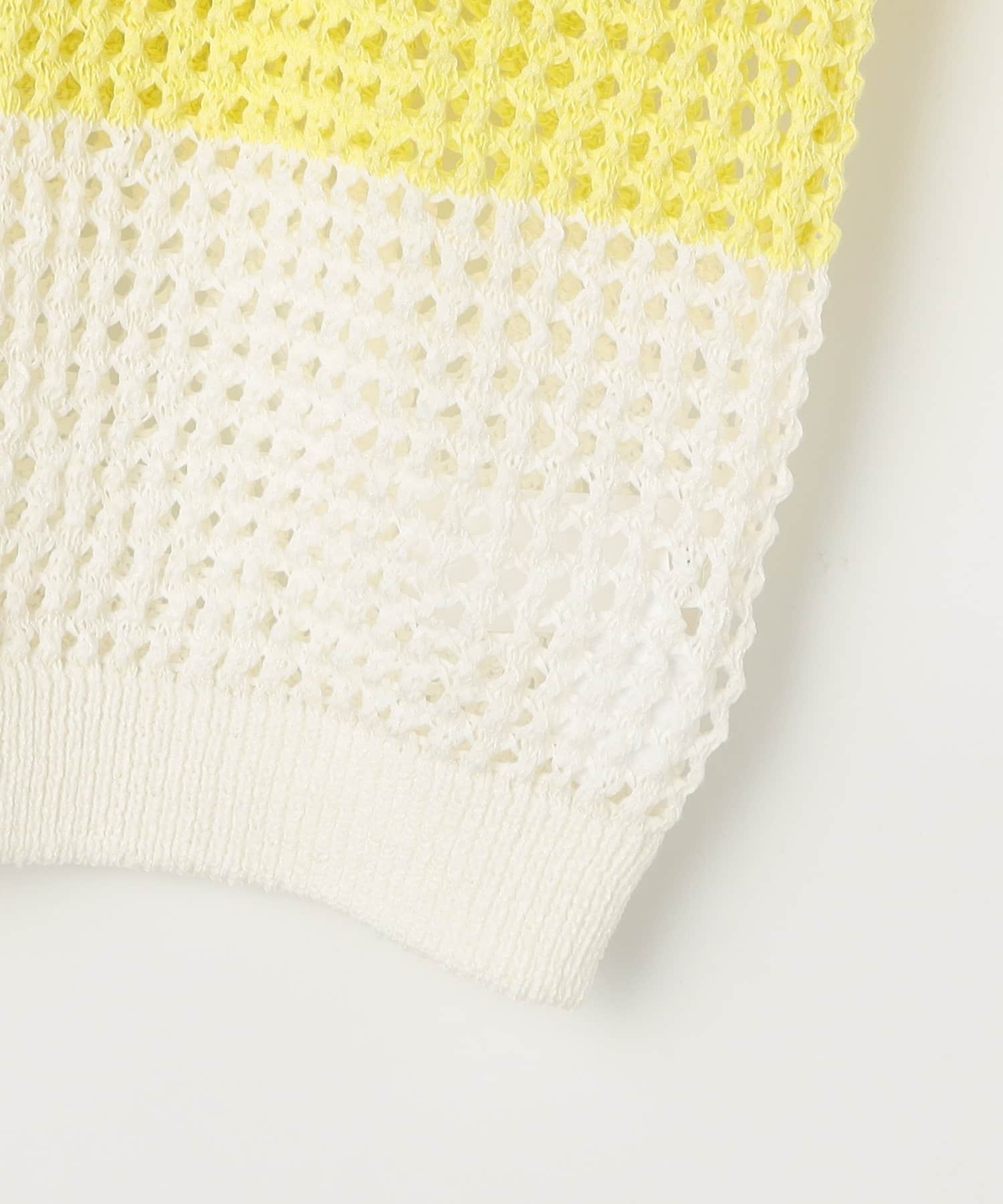 ・テープヤーンを使用したざっくりしたメッシュ編のポロプルオーバー