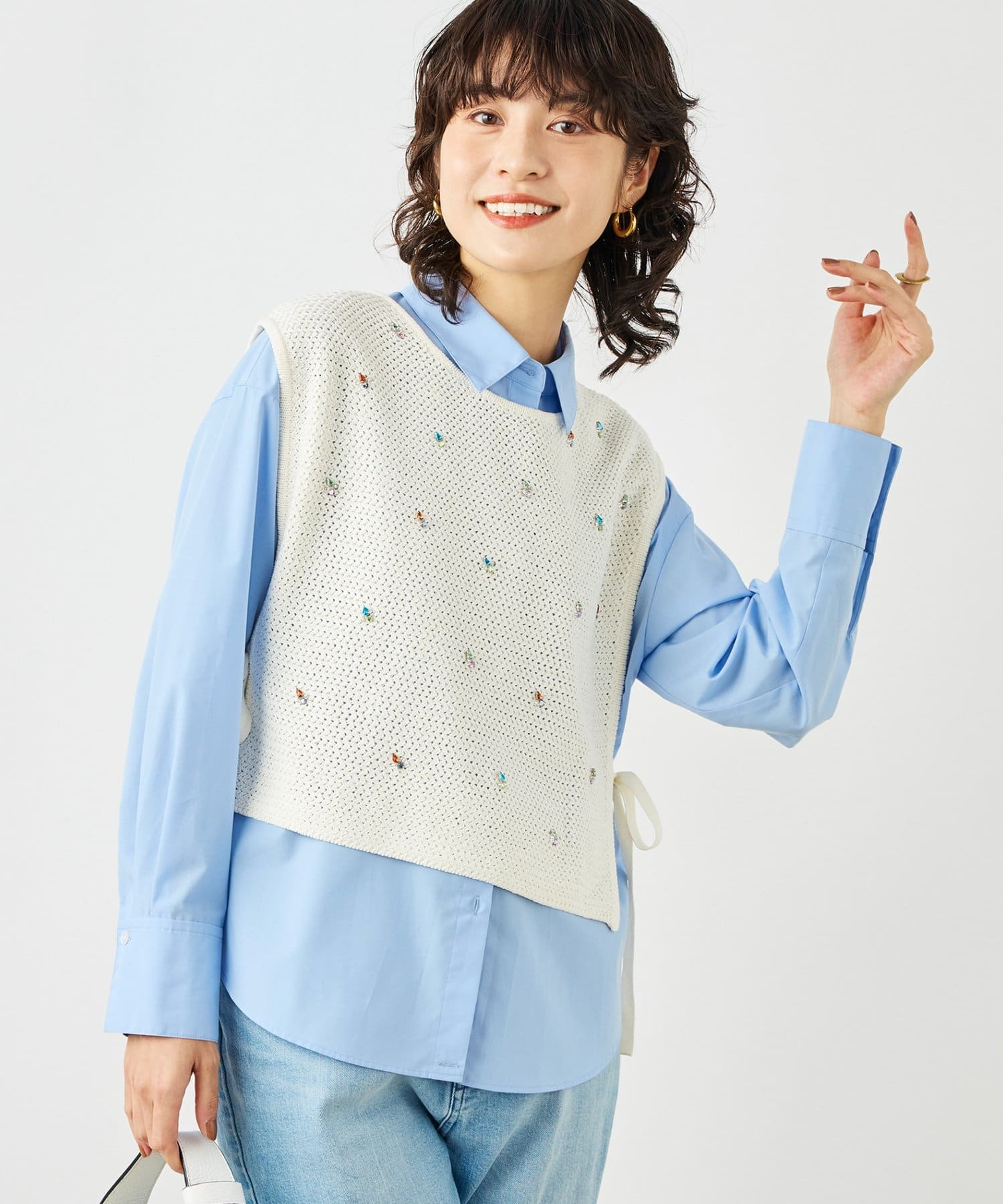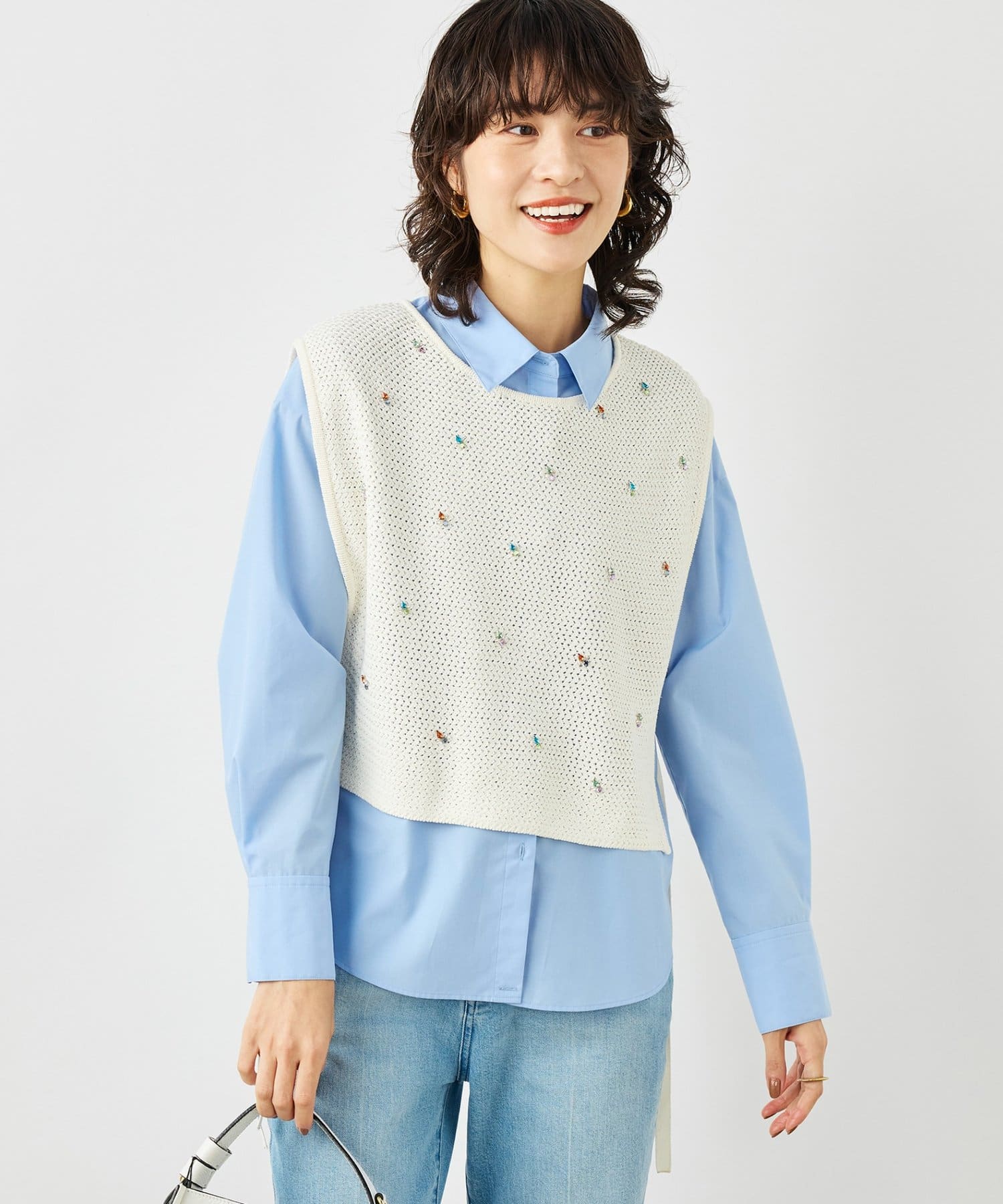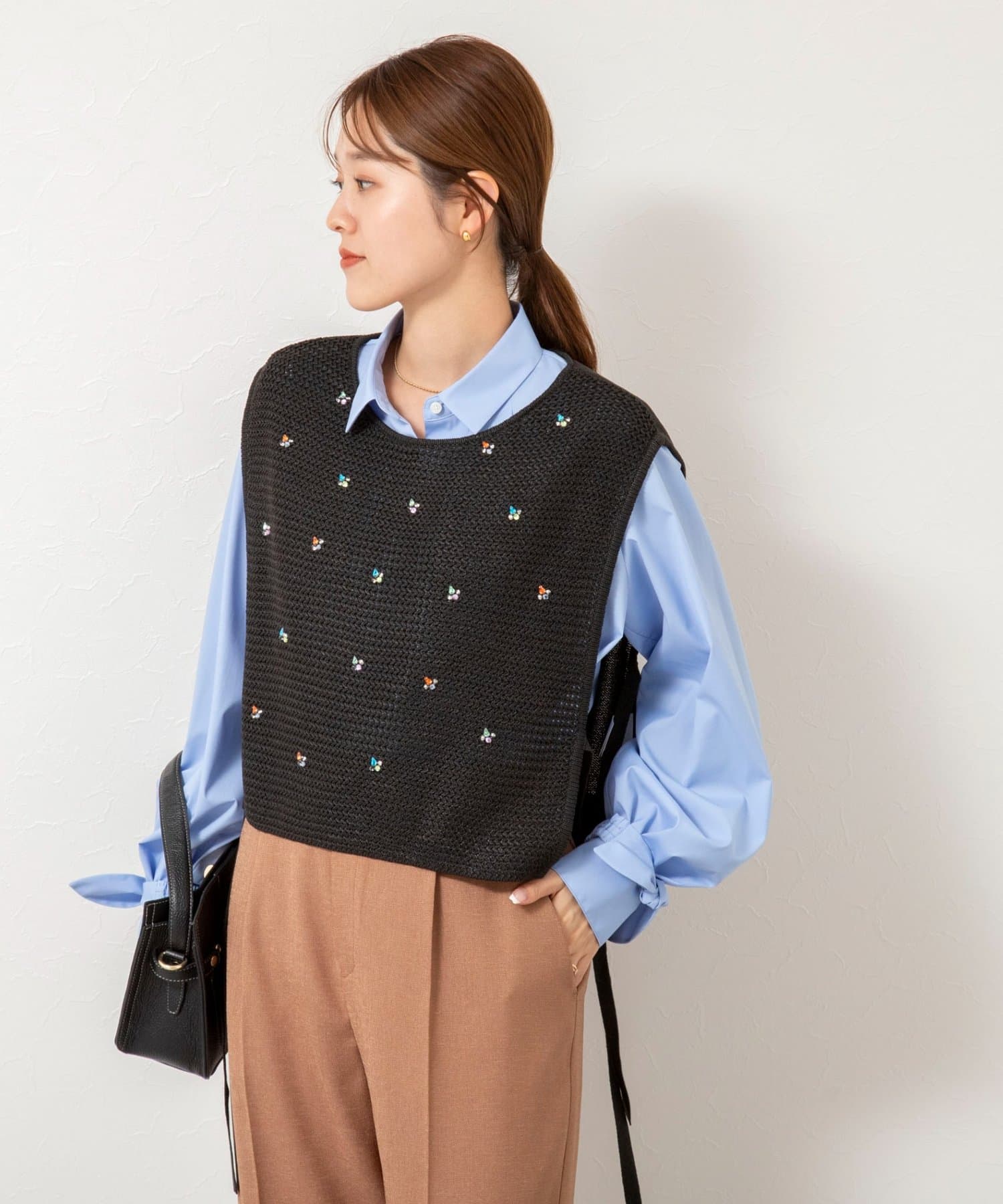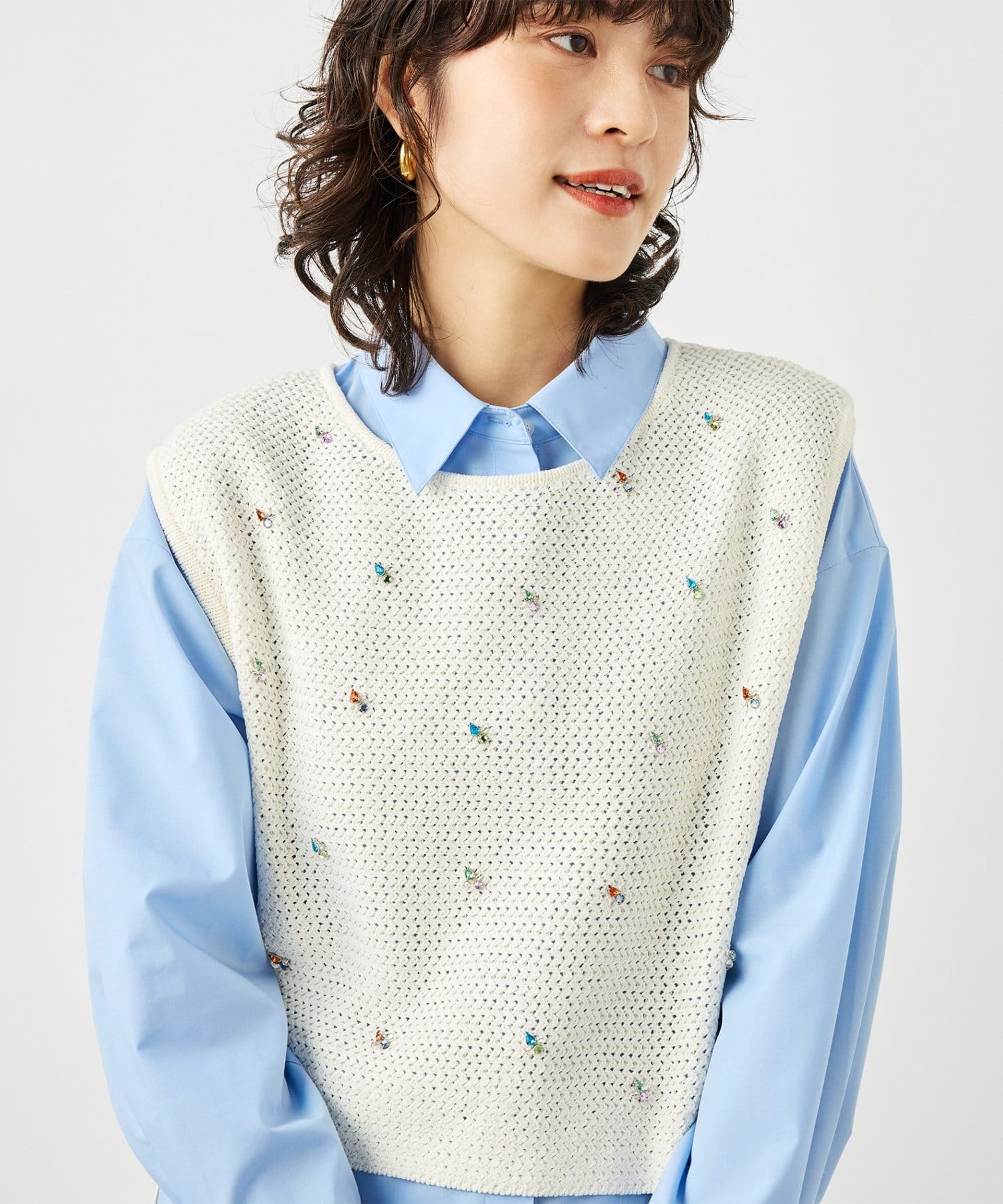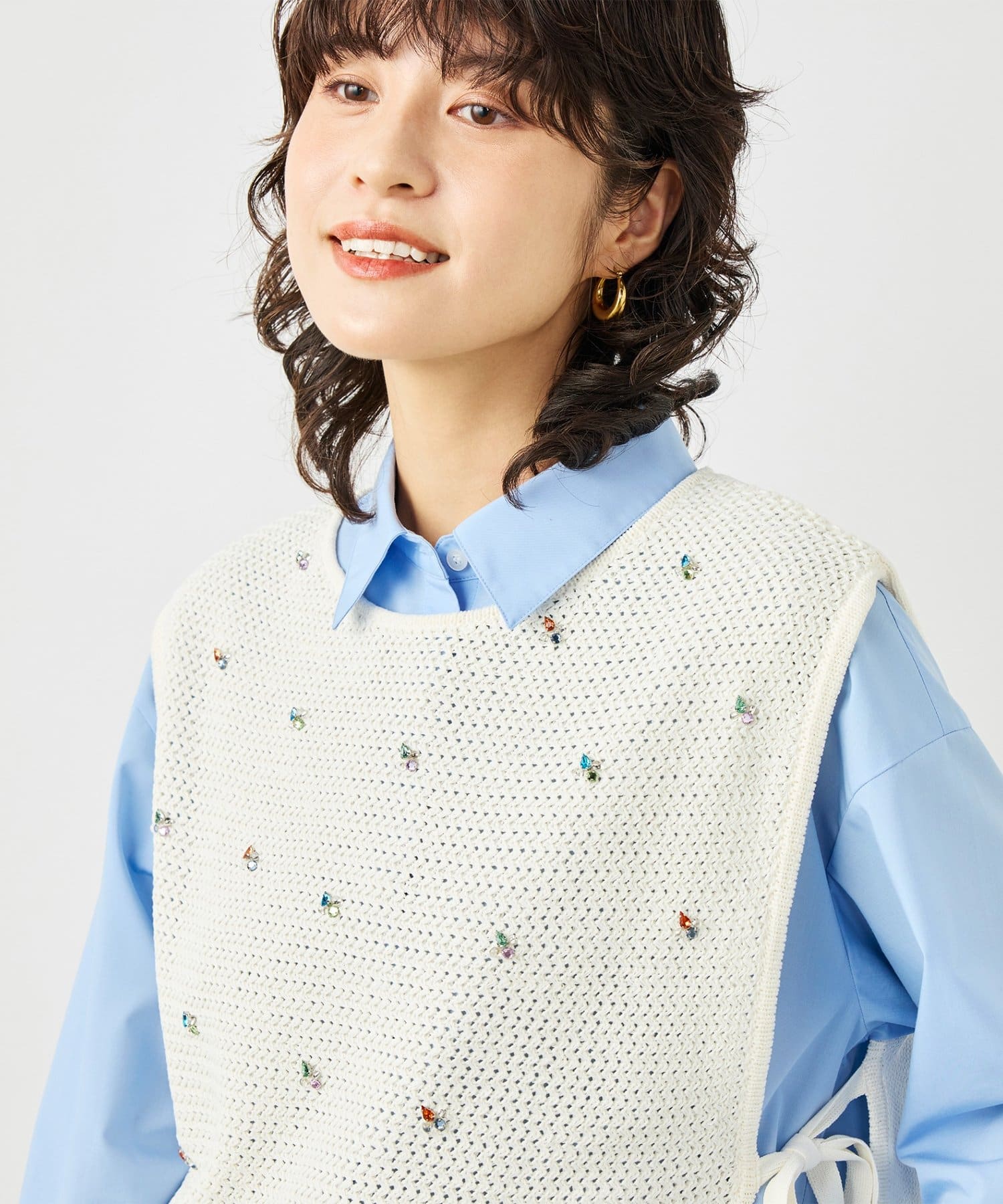 ・ジュエリーのようなカラービジューを手刺繍したニットベスト