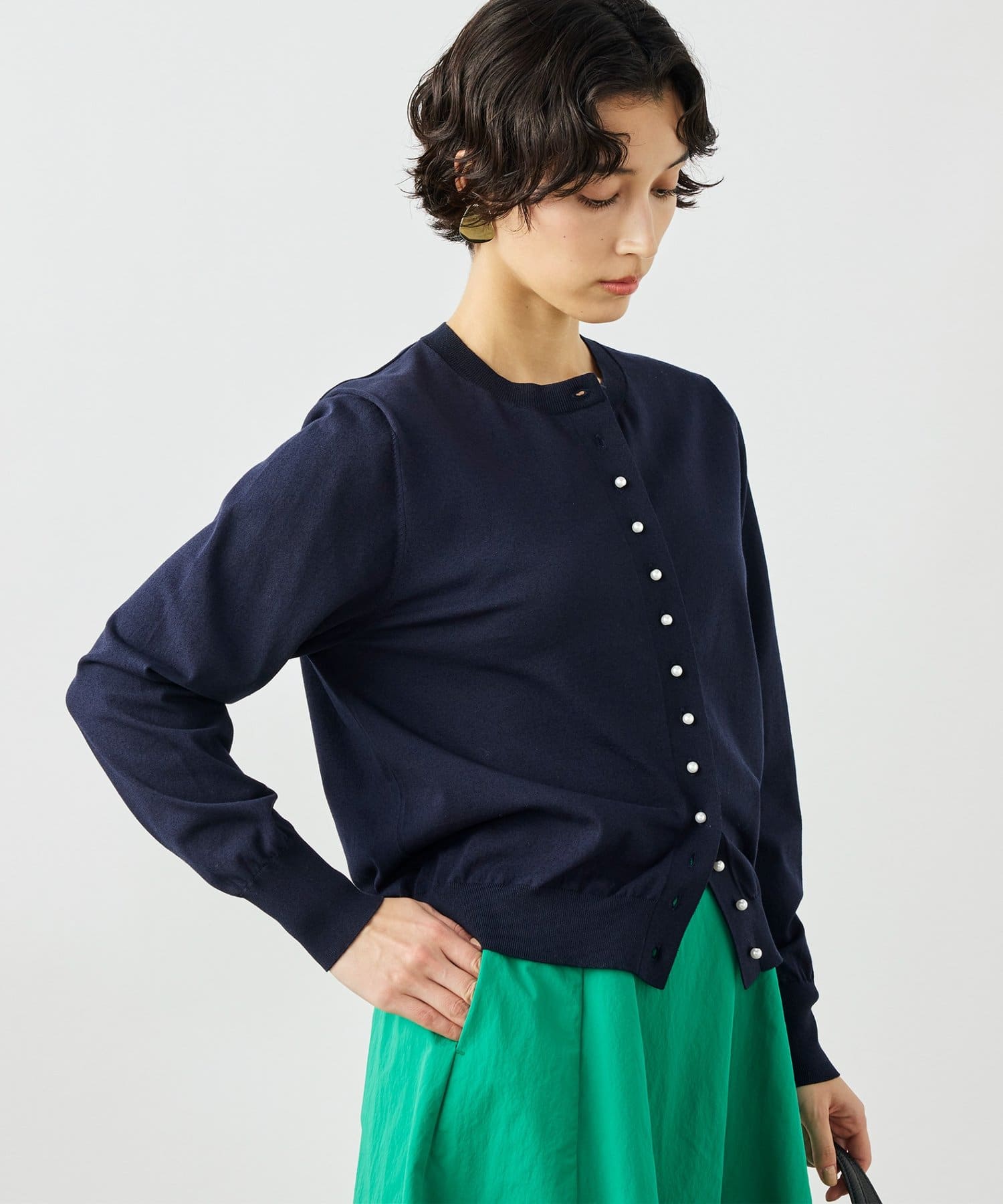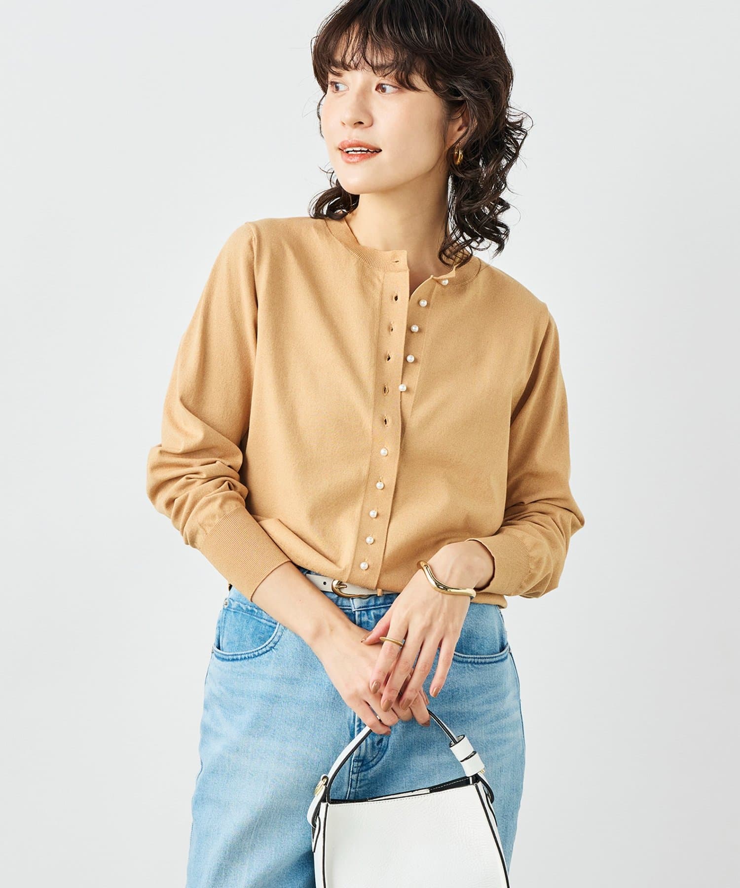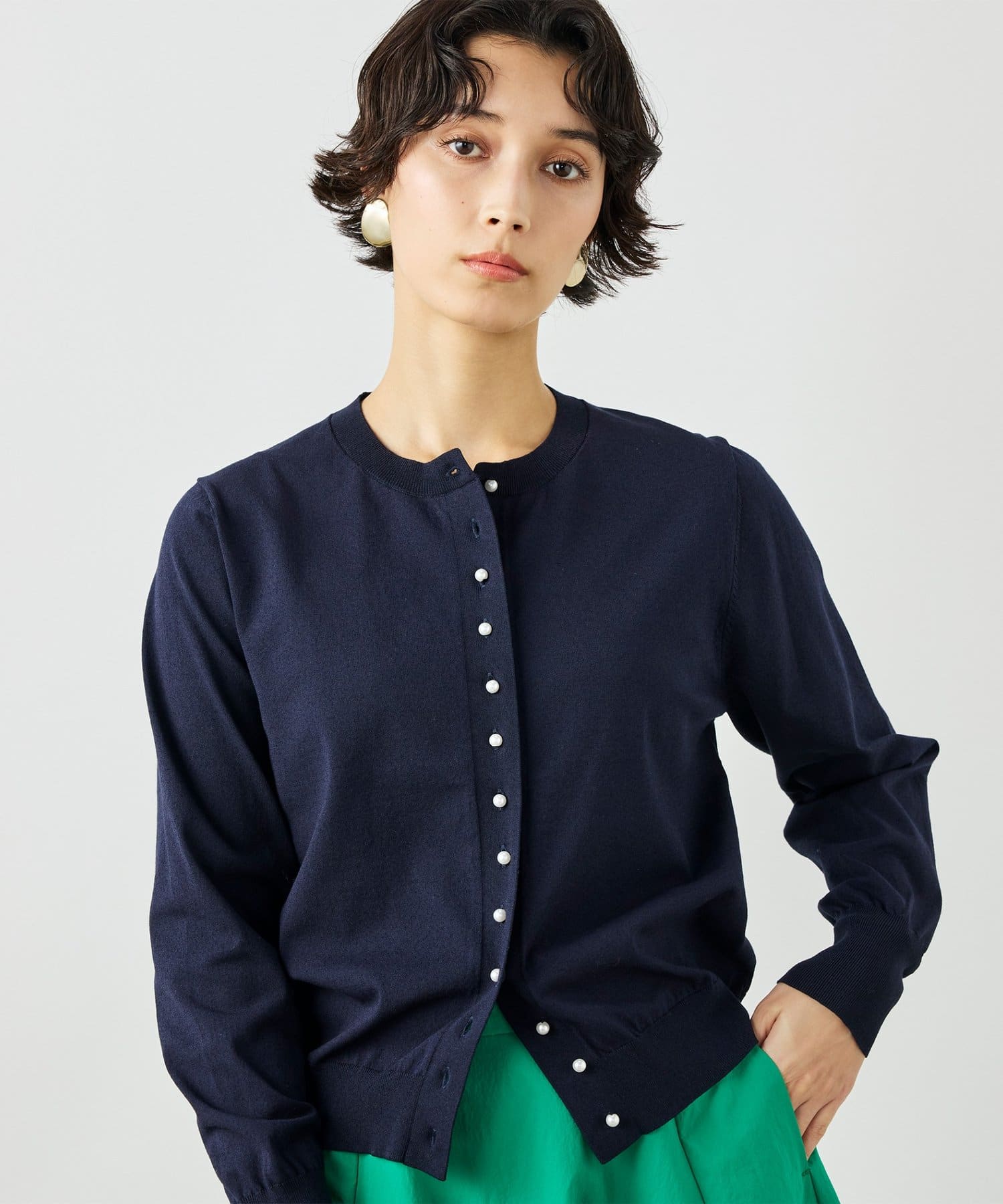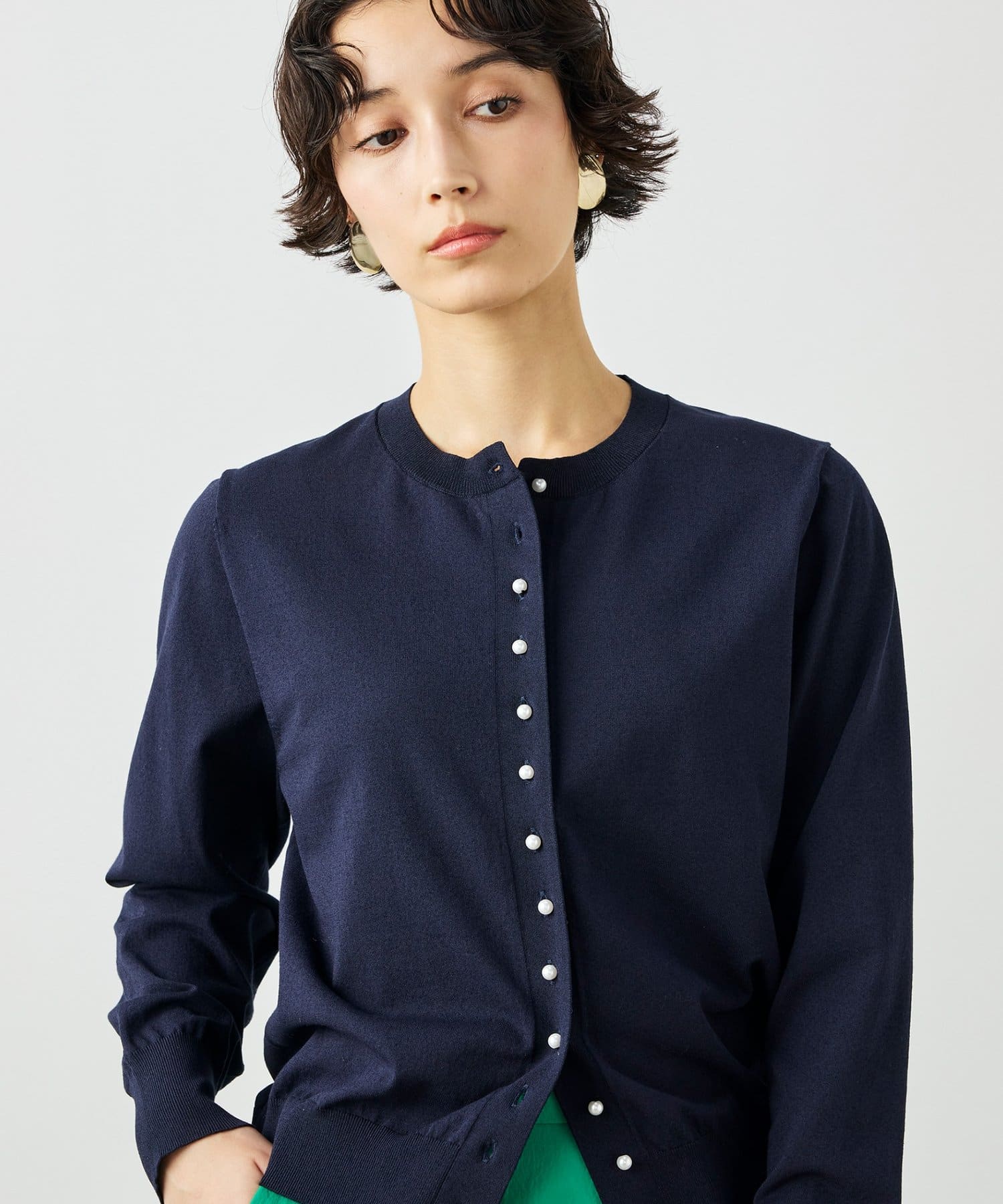TOP > NOLLEY'S > レディース > トップス > ニット/セーター > 《手洗い可能》コットンテックスクルーネックカーディガン