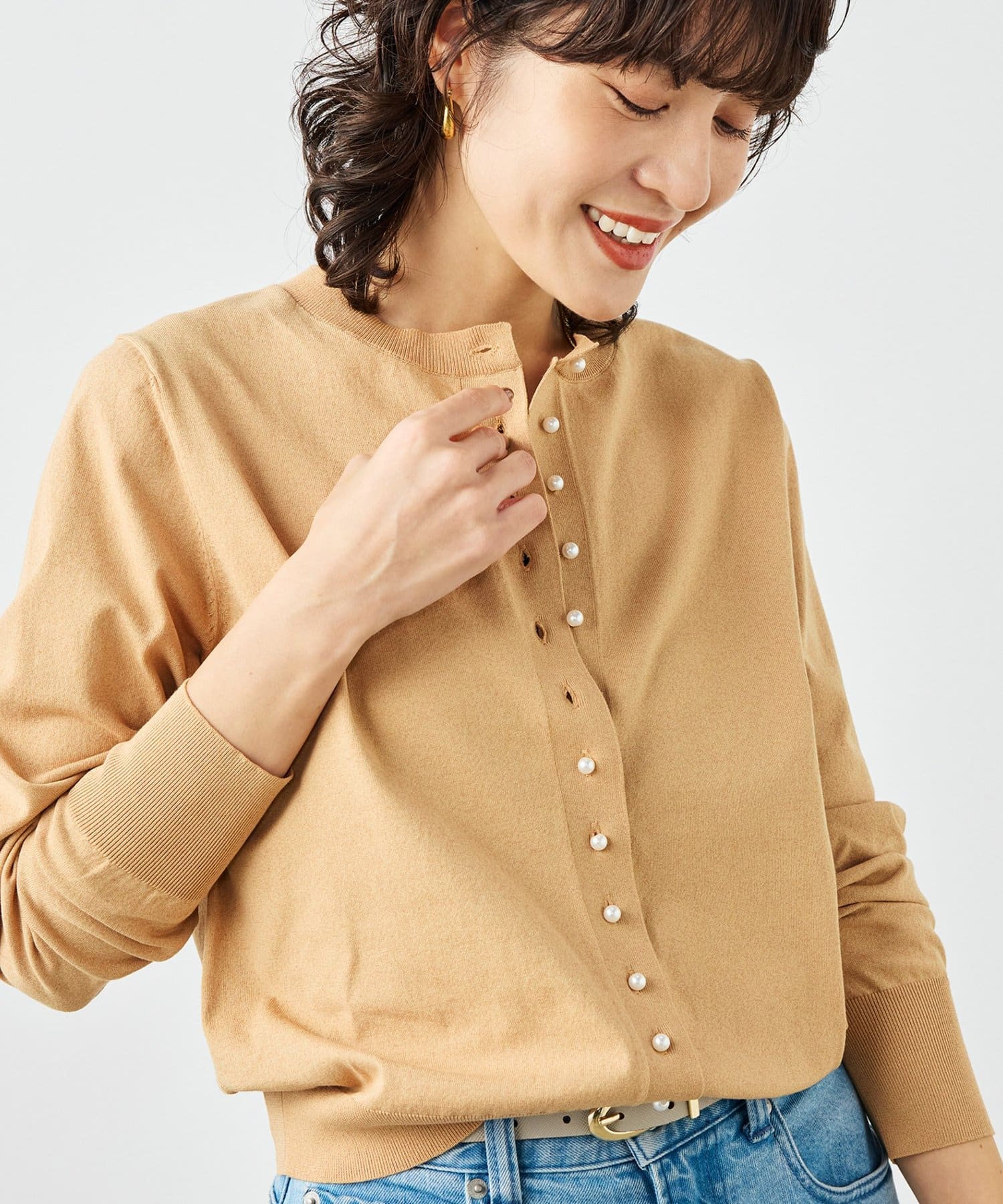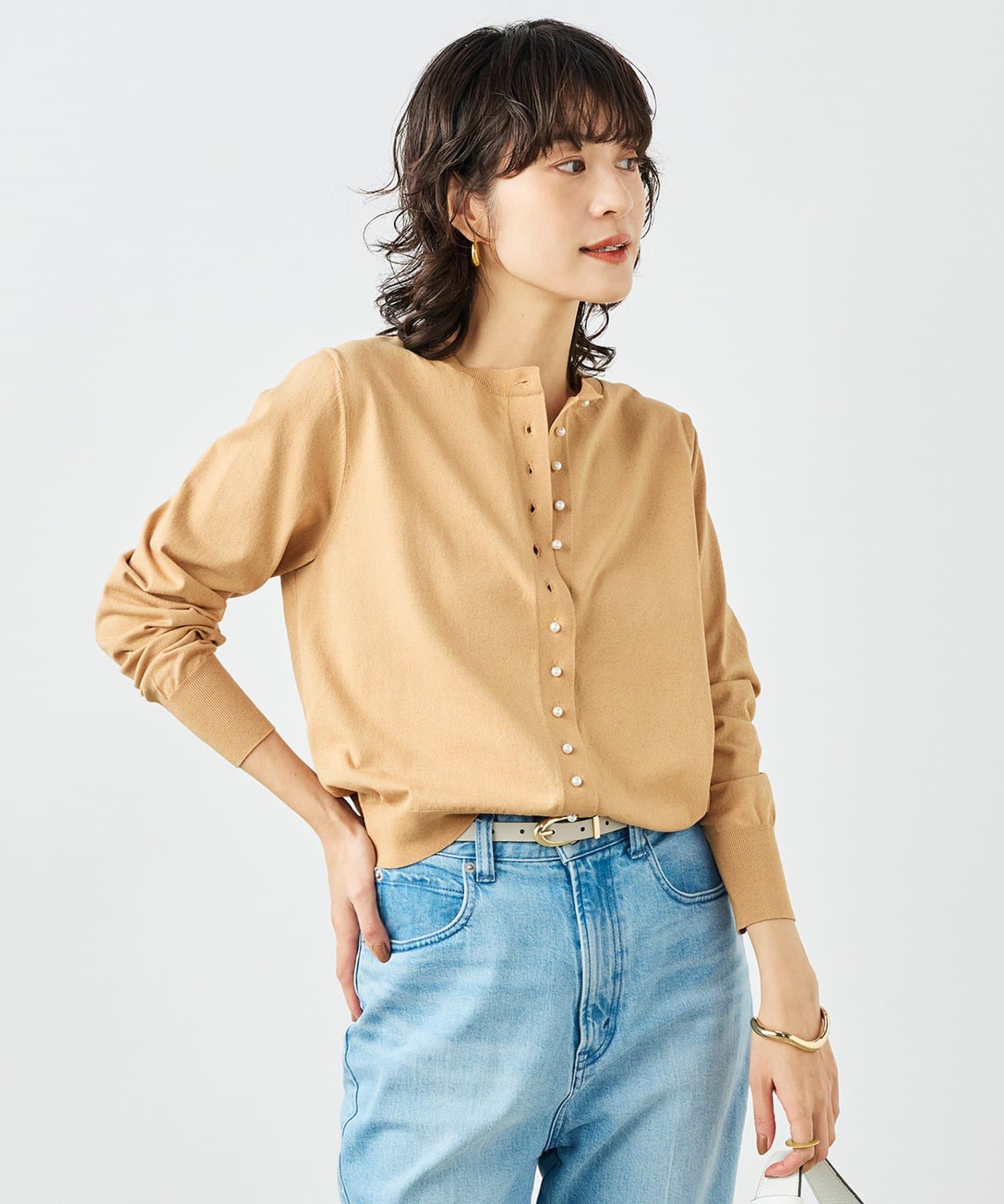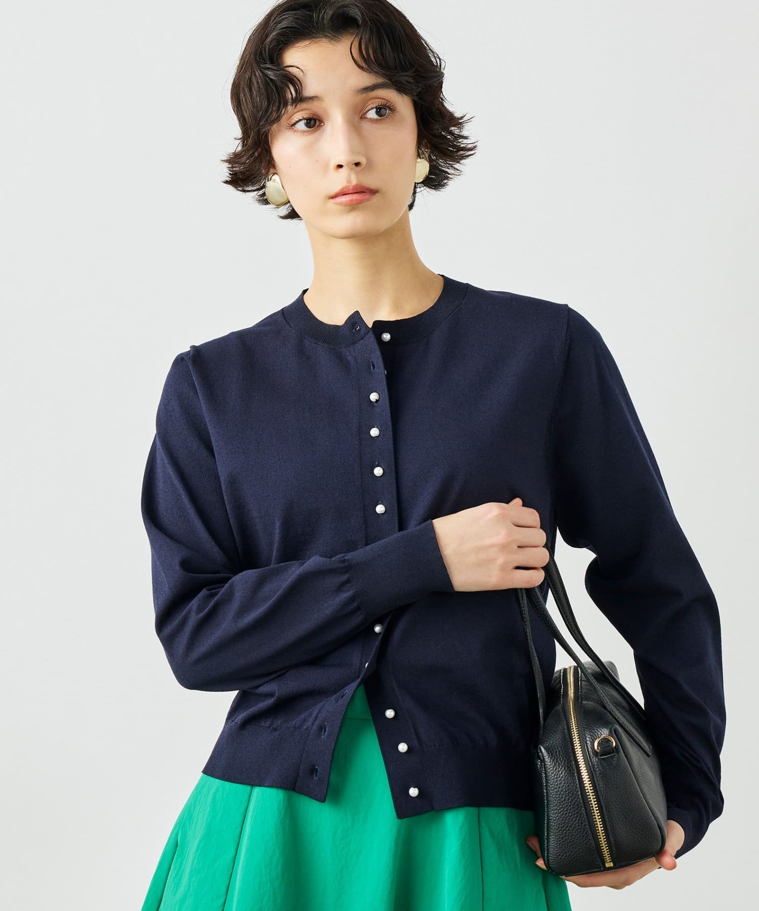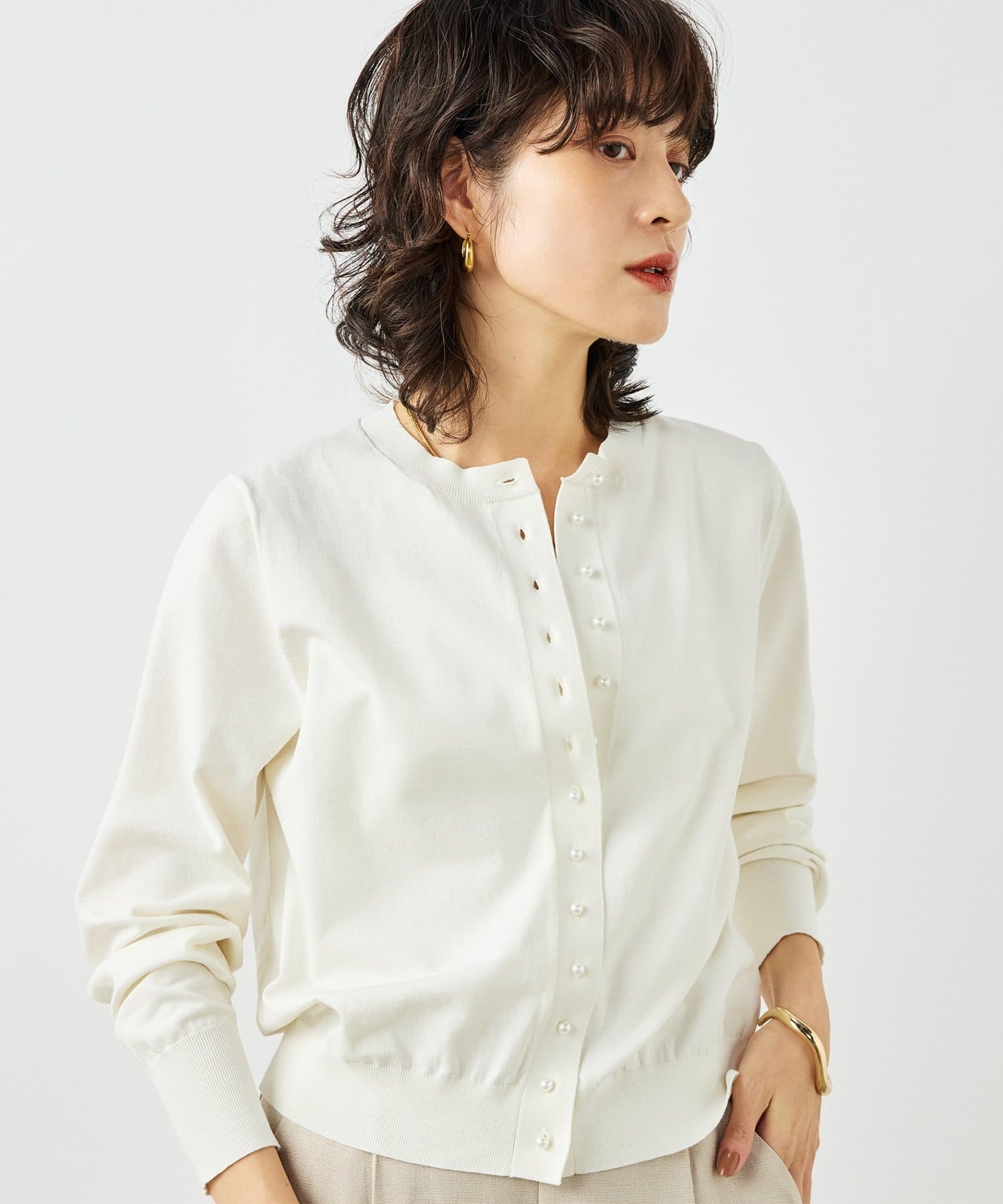 TOP > NOLLEY'S > レディース > トップス > ニット/セーター > 《手洗い可能》コットンテックスクルーネックカーディガン