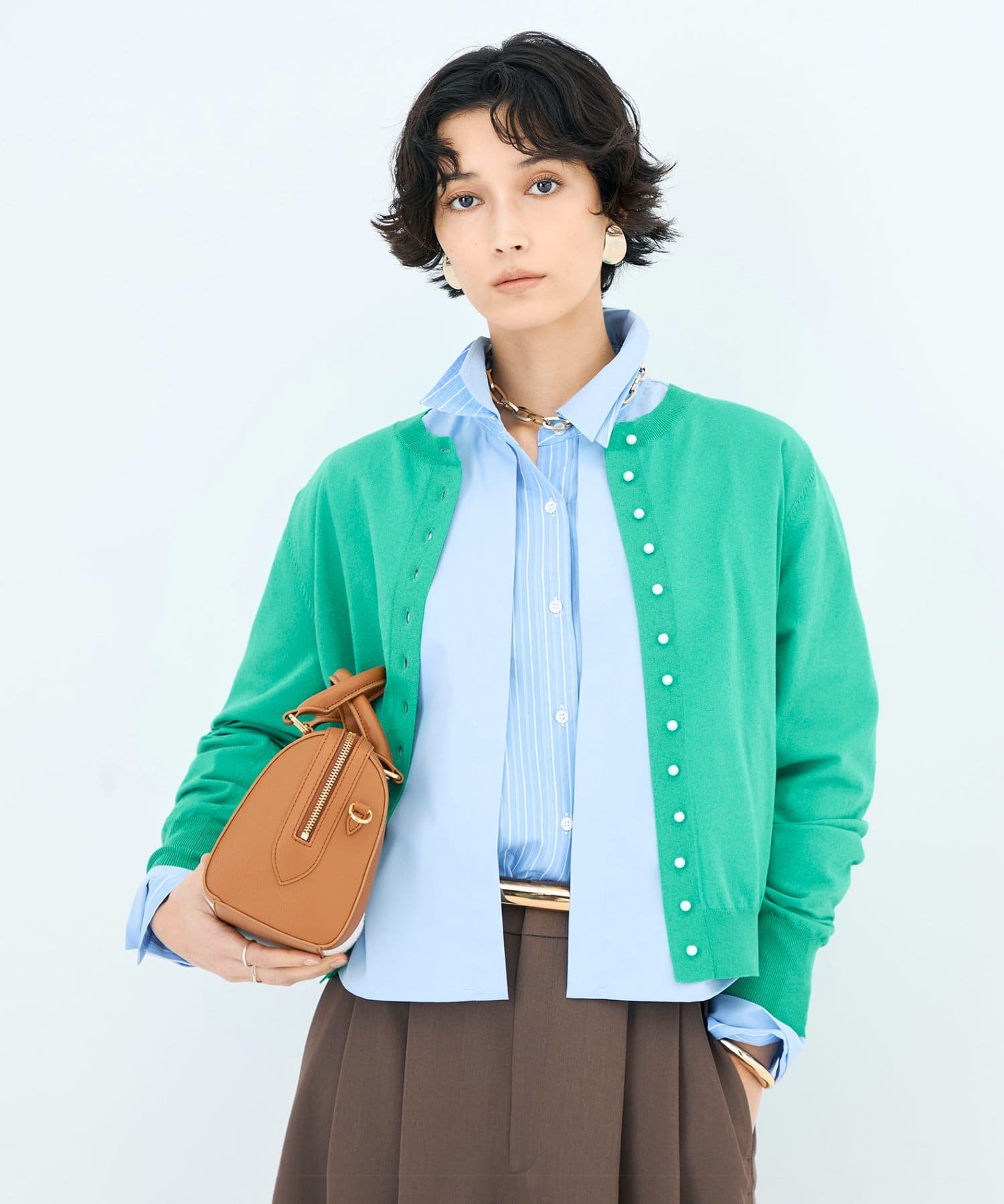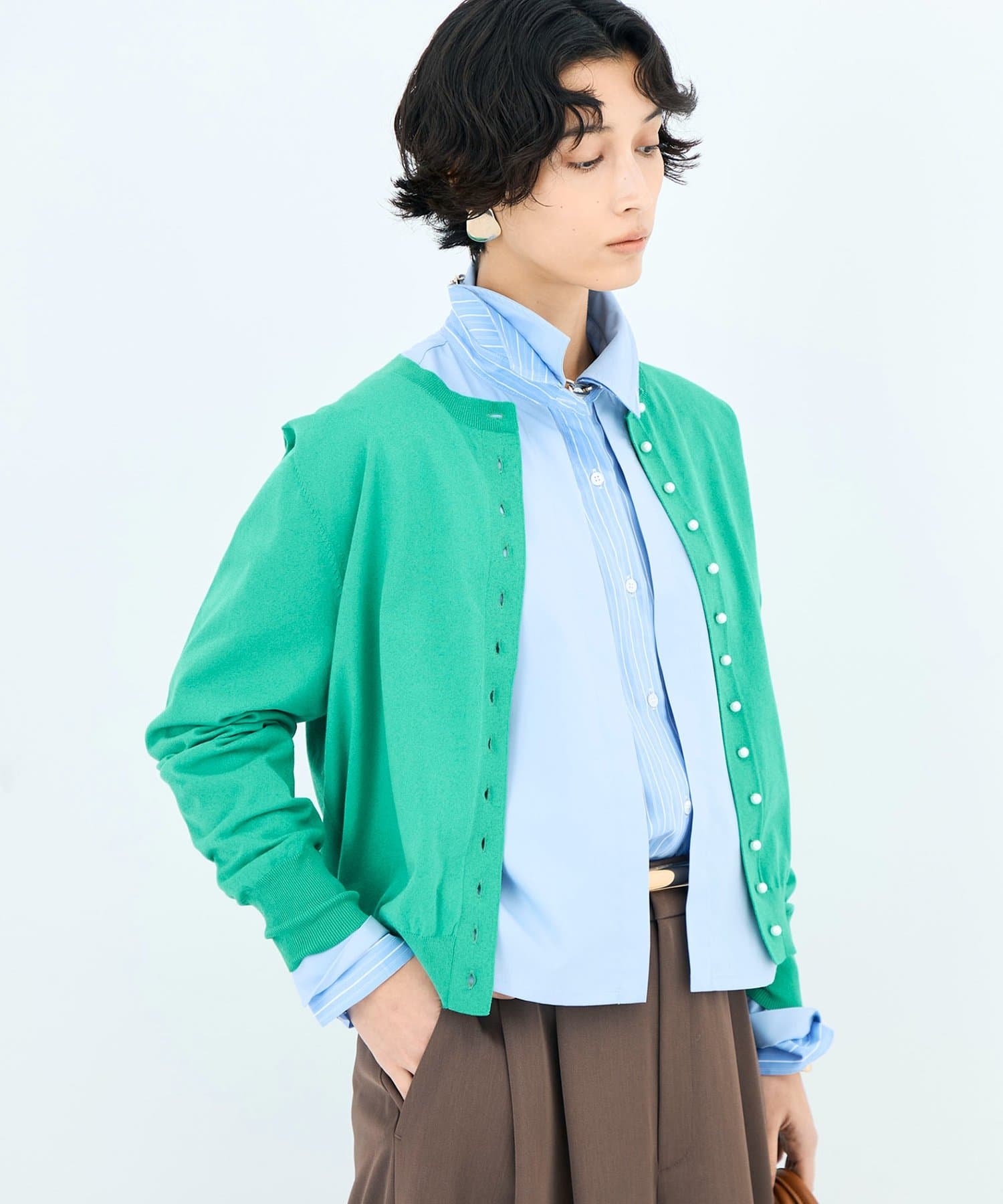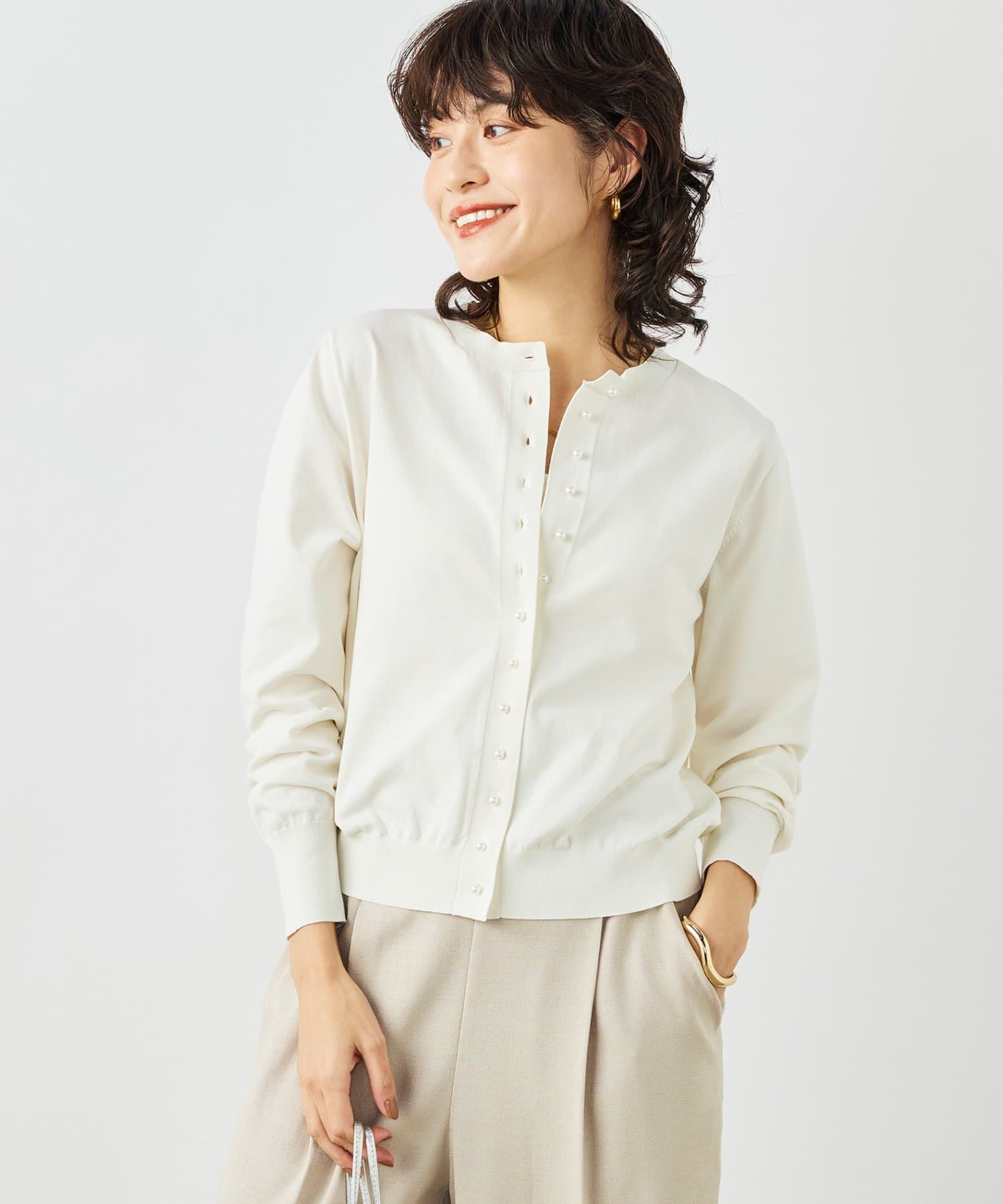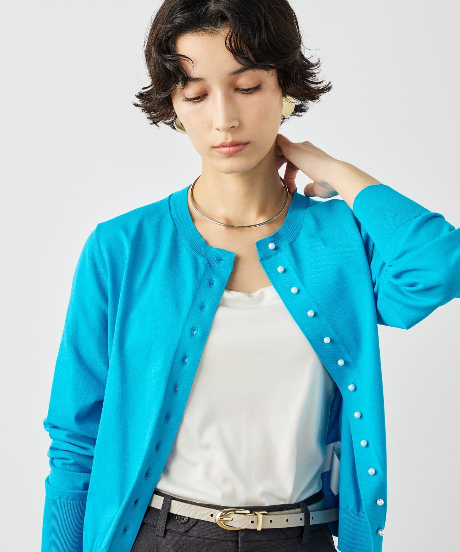 TOP > NOLLEY'S > レディース > トップス > ニット/セーター > 《手洗い可能》コットンテックスクルーネックカーディガン