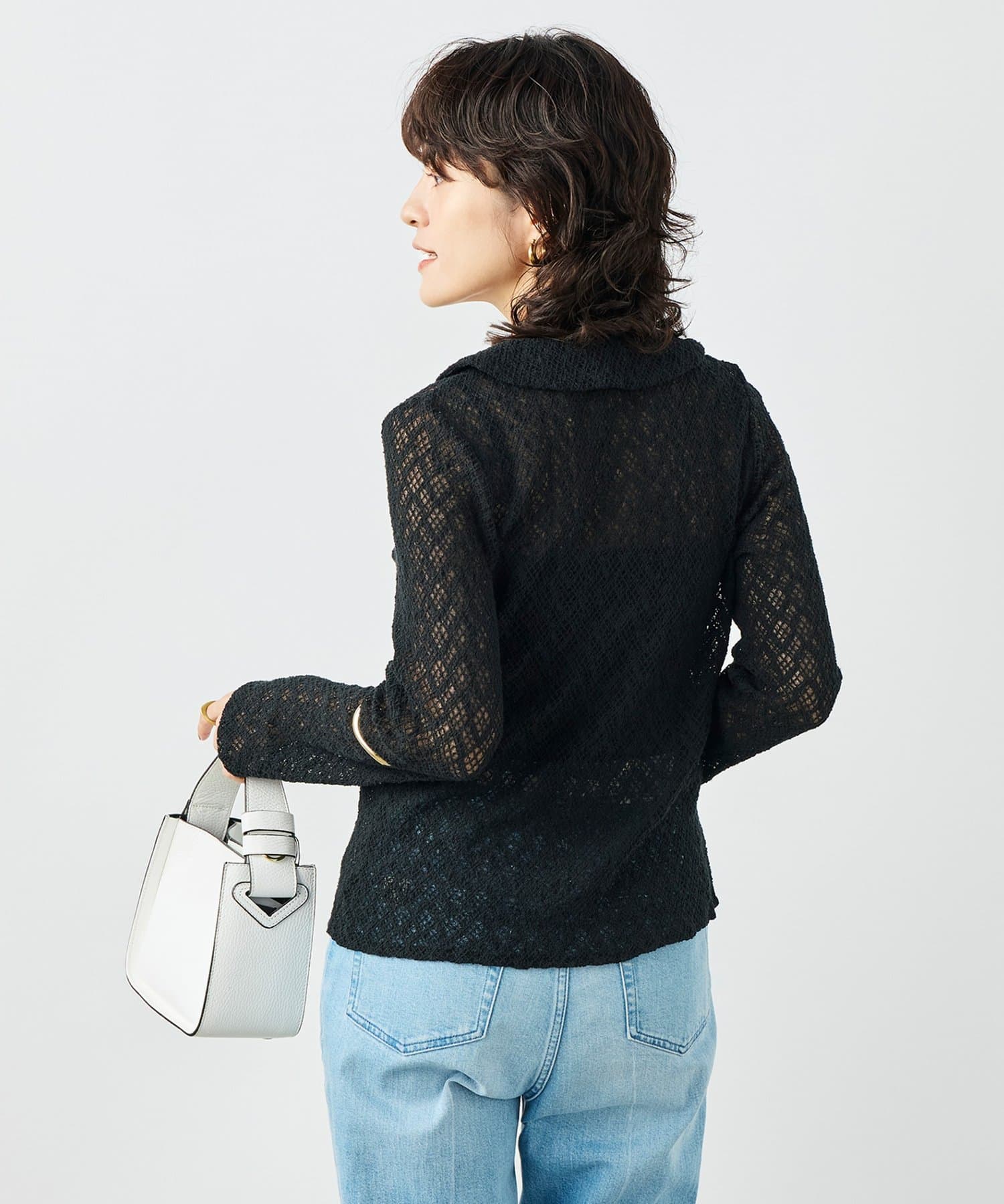 ウォッシャブル襟付きレースカーディガン