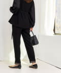 ・スッキリとしたペンシルシルエットはトップスを選ばず、オンオフ問わず様々なシーンで活躍するアイテム