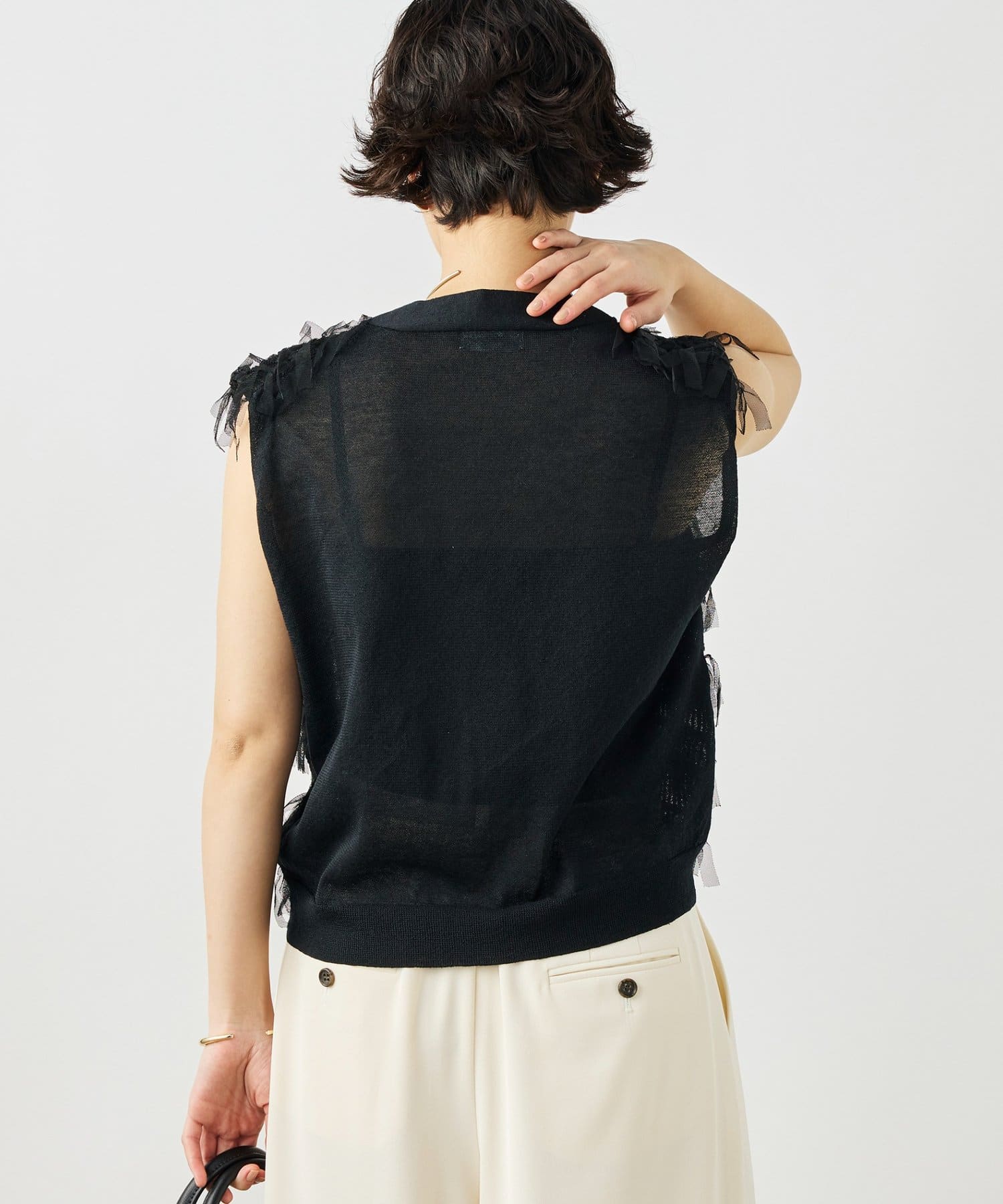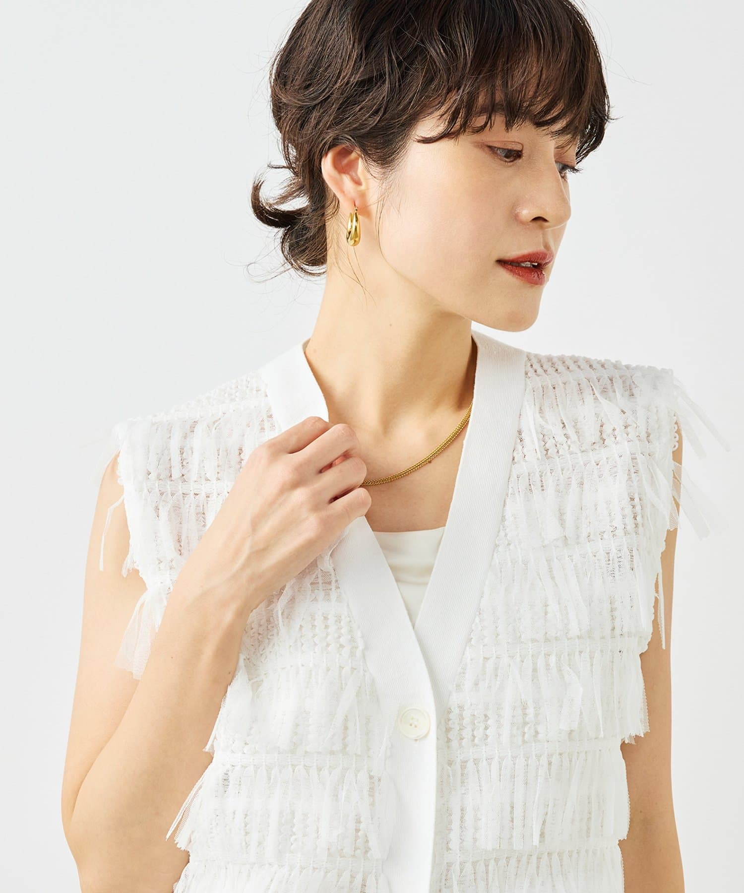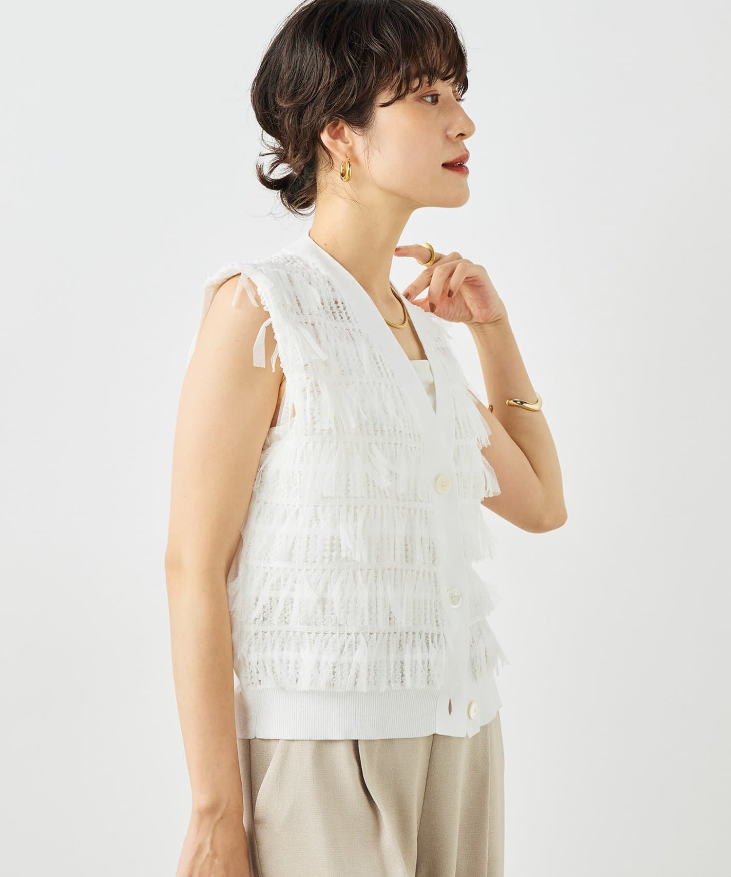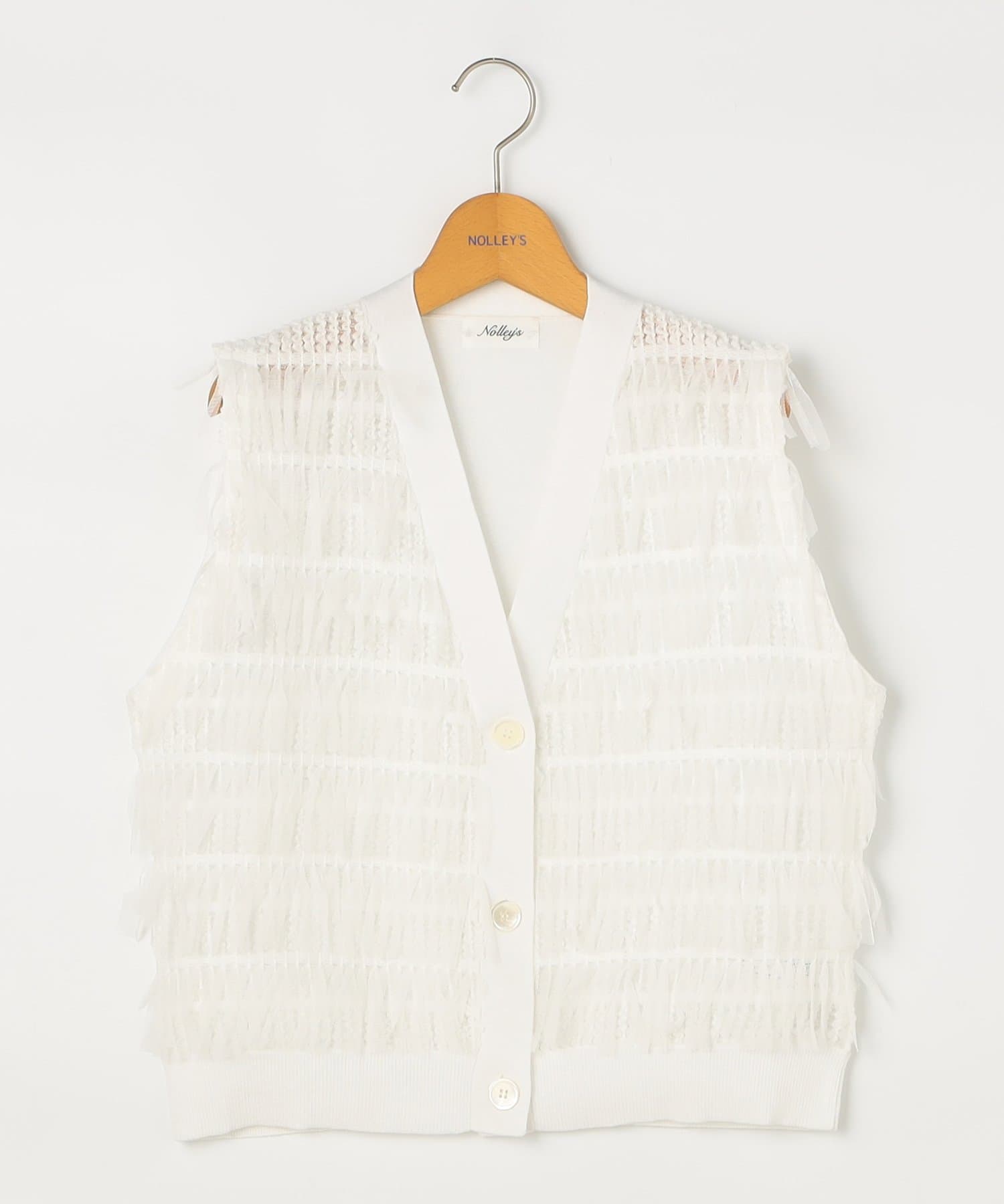 NOLLEY'S(ノーリーズ) 《手洗い可能》チュールフリンジVネックベスト