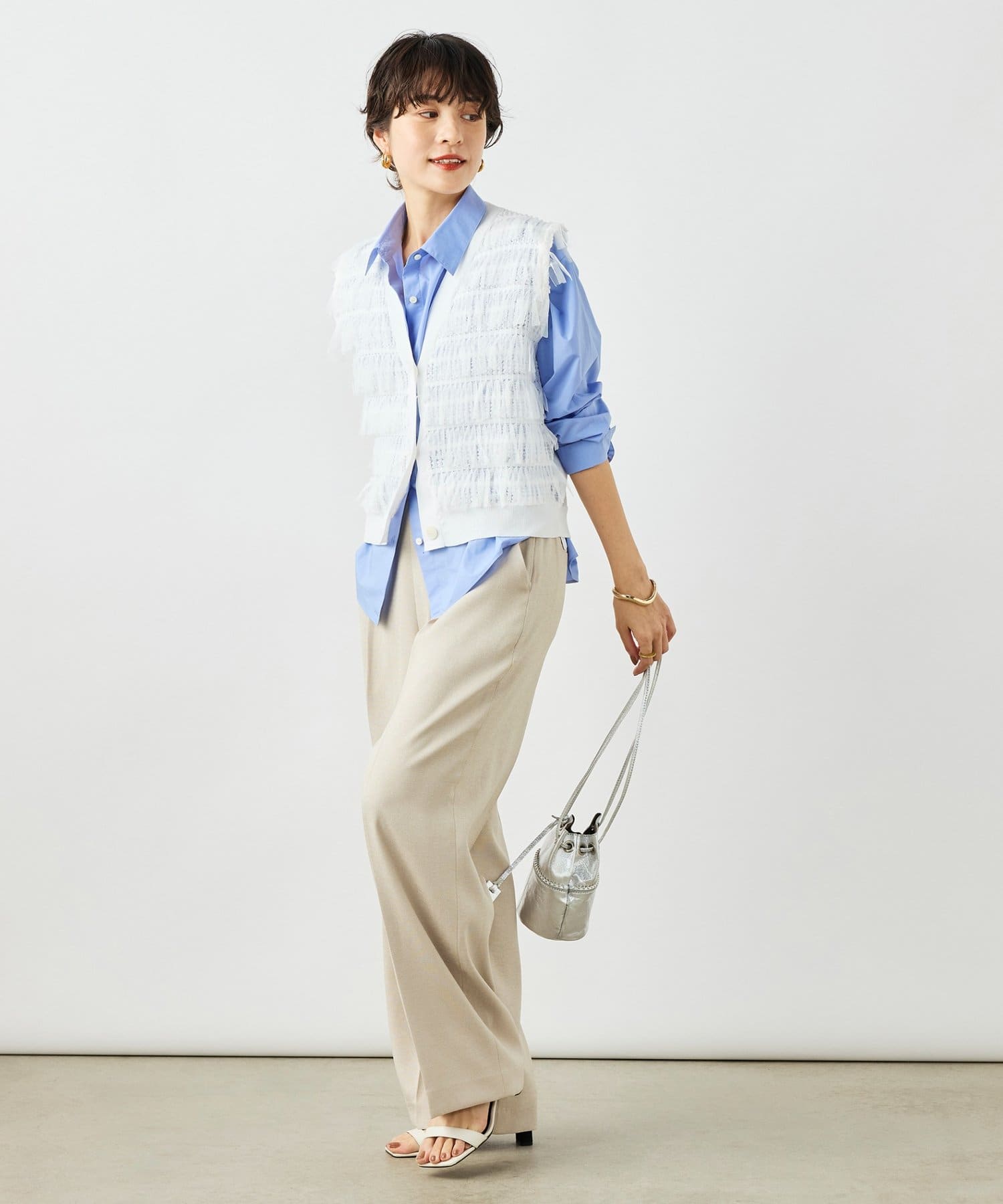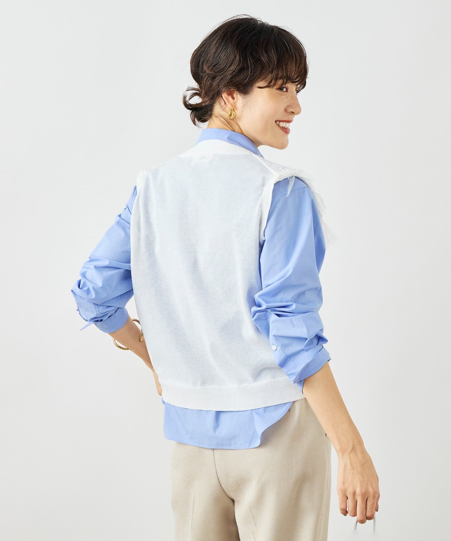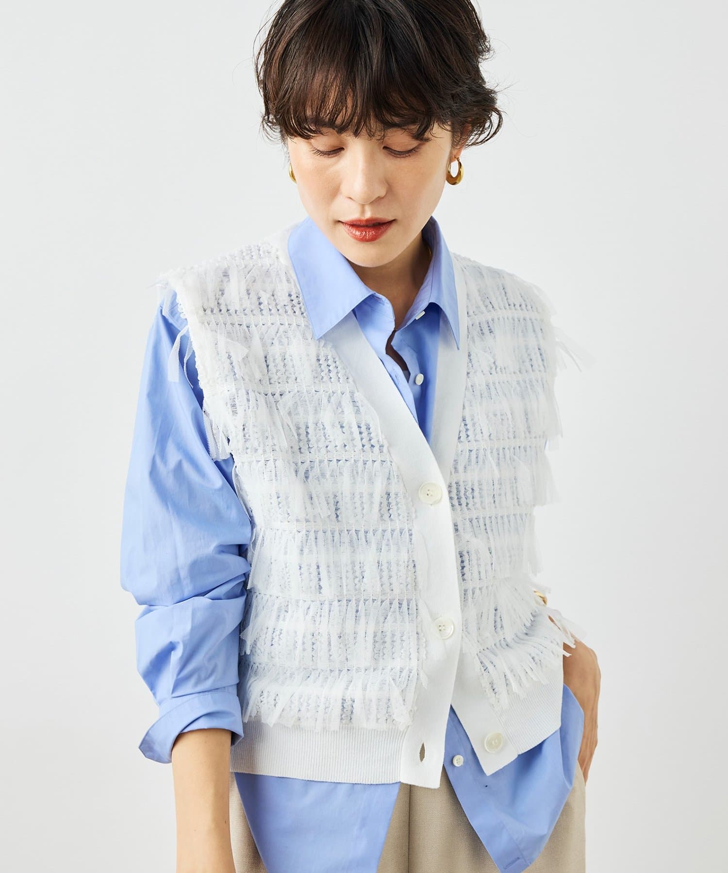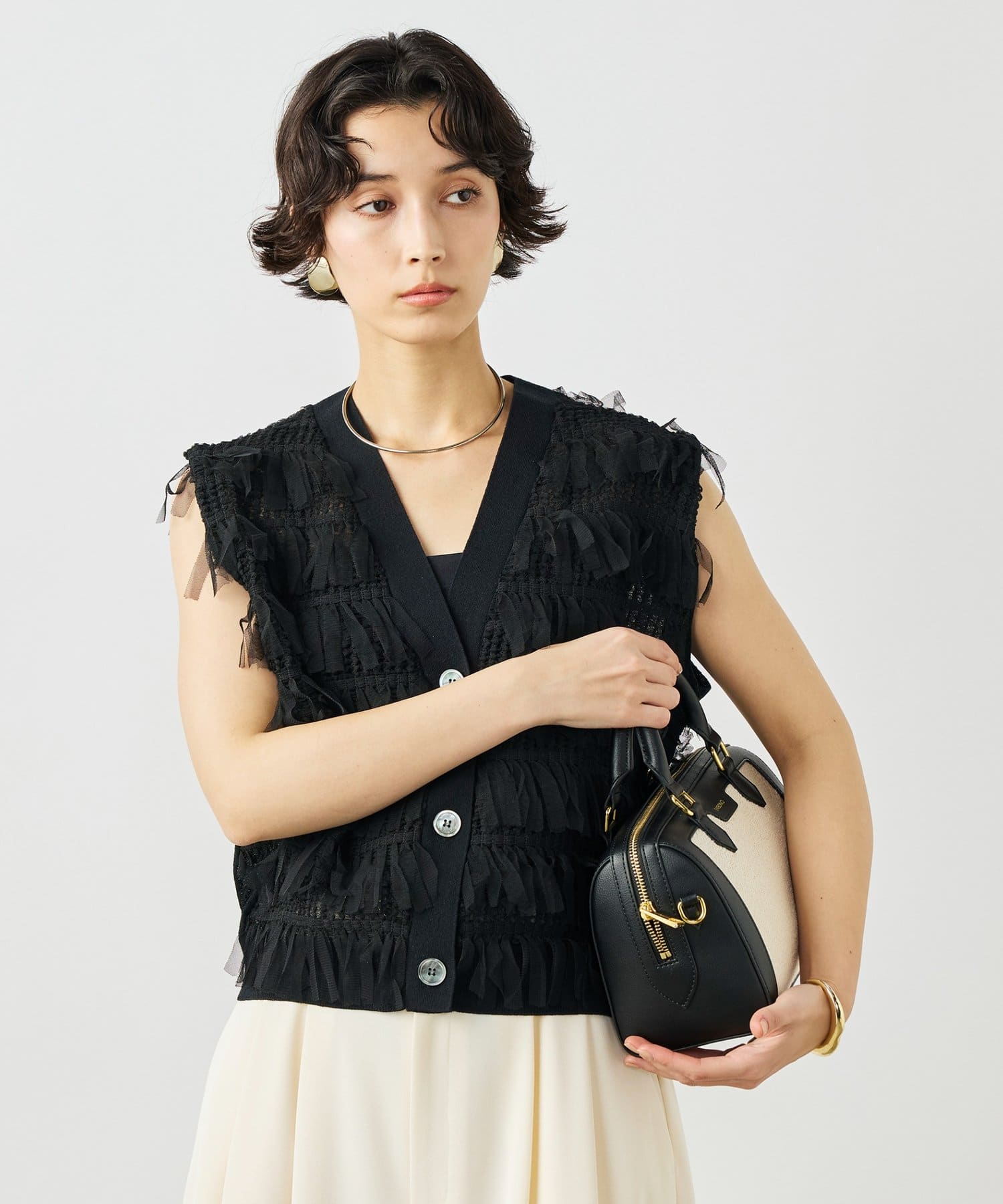 NOLLEY'S(ノーリーズ) 《手洗い可能》チュールフリンジVネックベスト