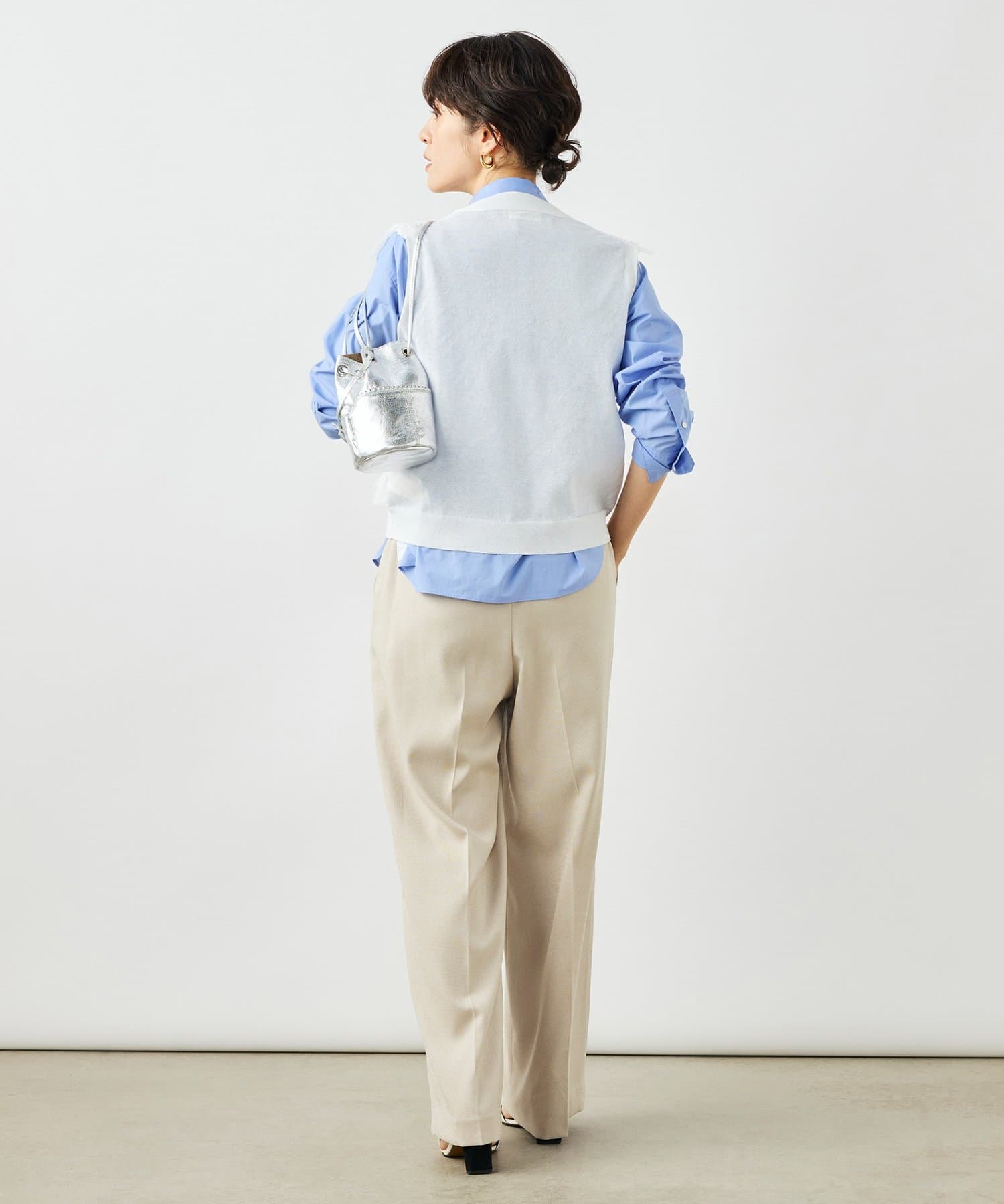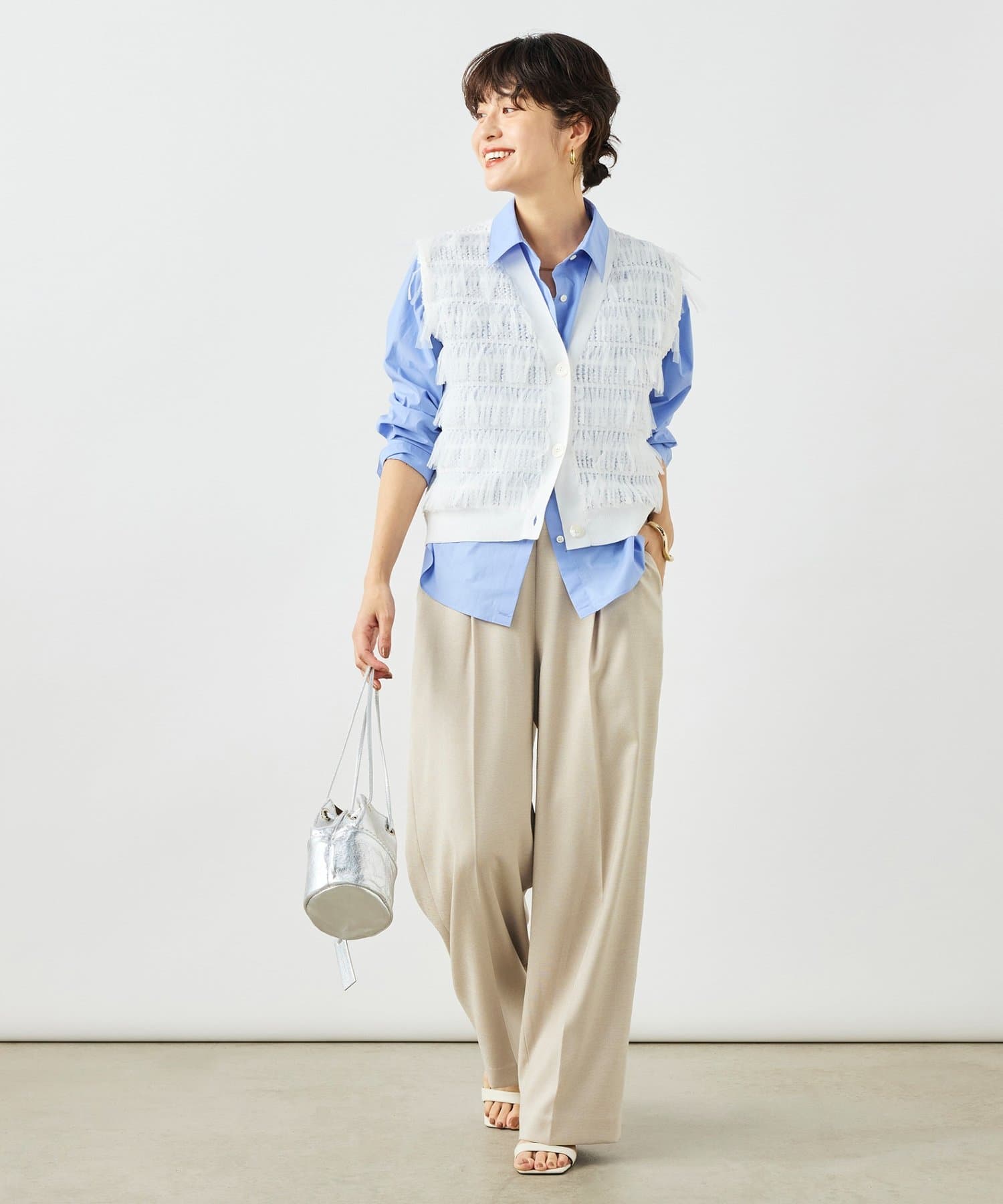 ・インナーにシャツを着てすっきりレイヤードも楽しい一枚