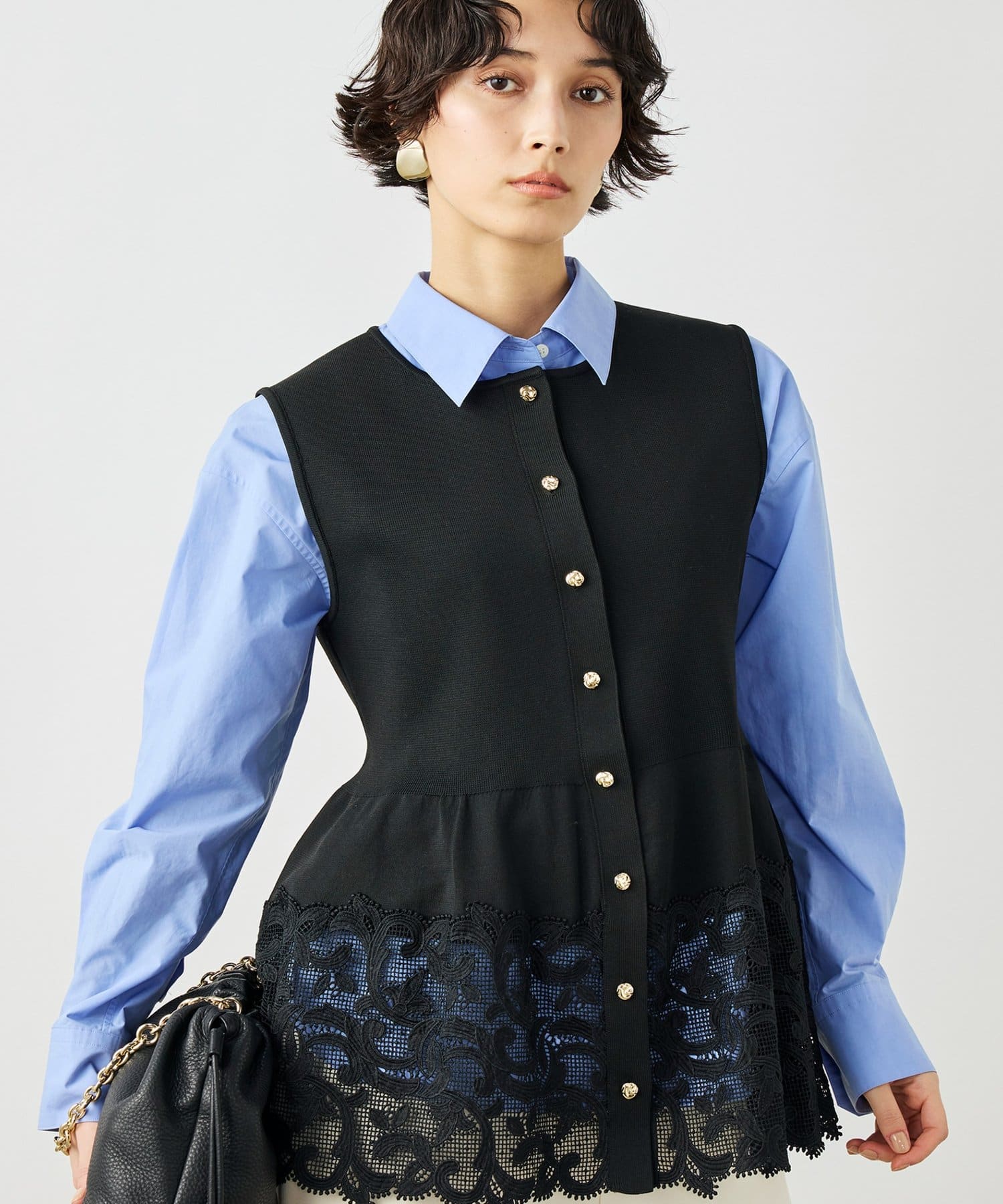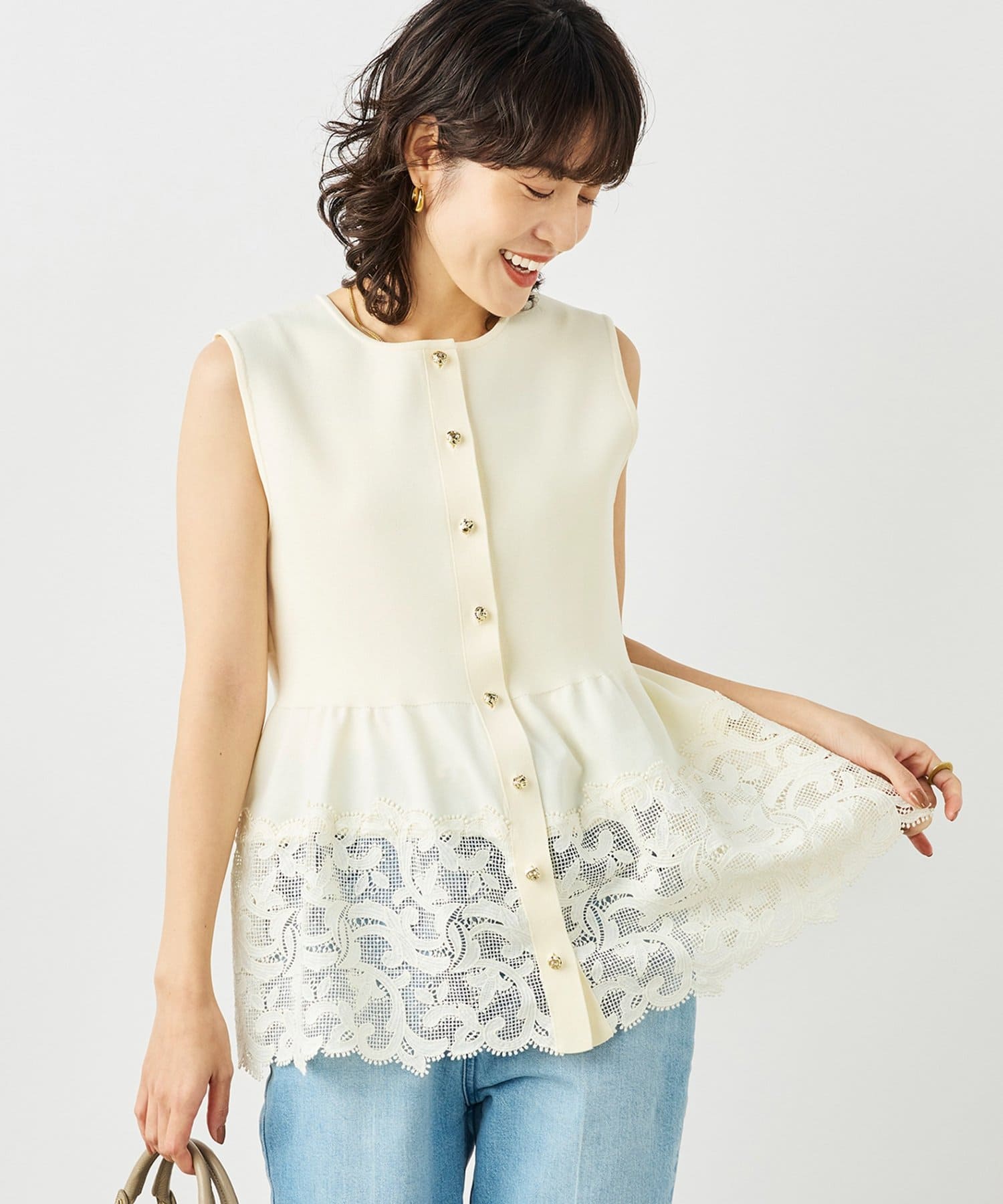 TOP > NOLLEY'S > レディース > トップス > ニット/セーター > 《手洗い可能》レース付きペプラムベスト