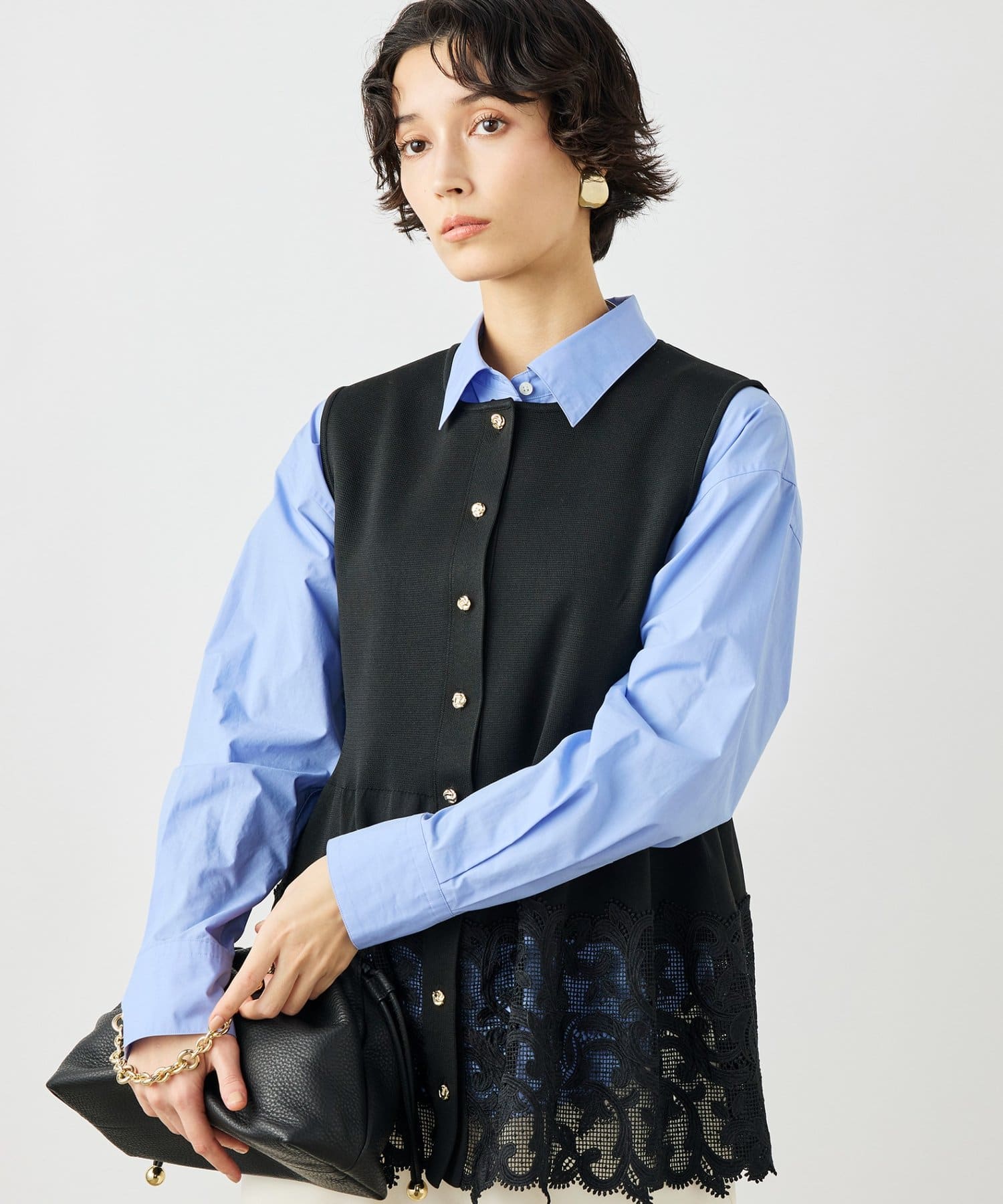 • NOLLEY'S(ノーリーズ) 《手洗い可能》レース付きペプラムベスト