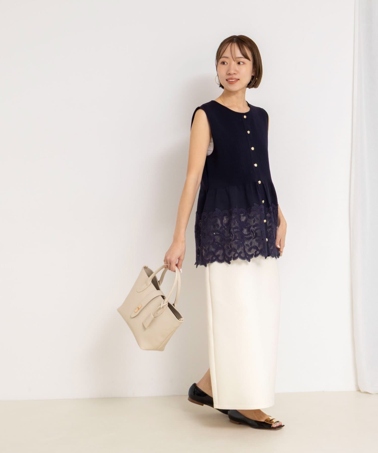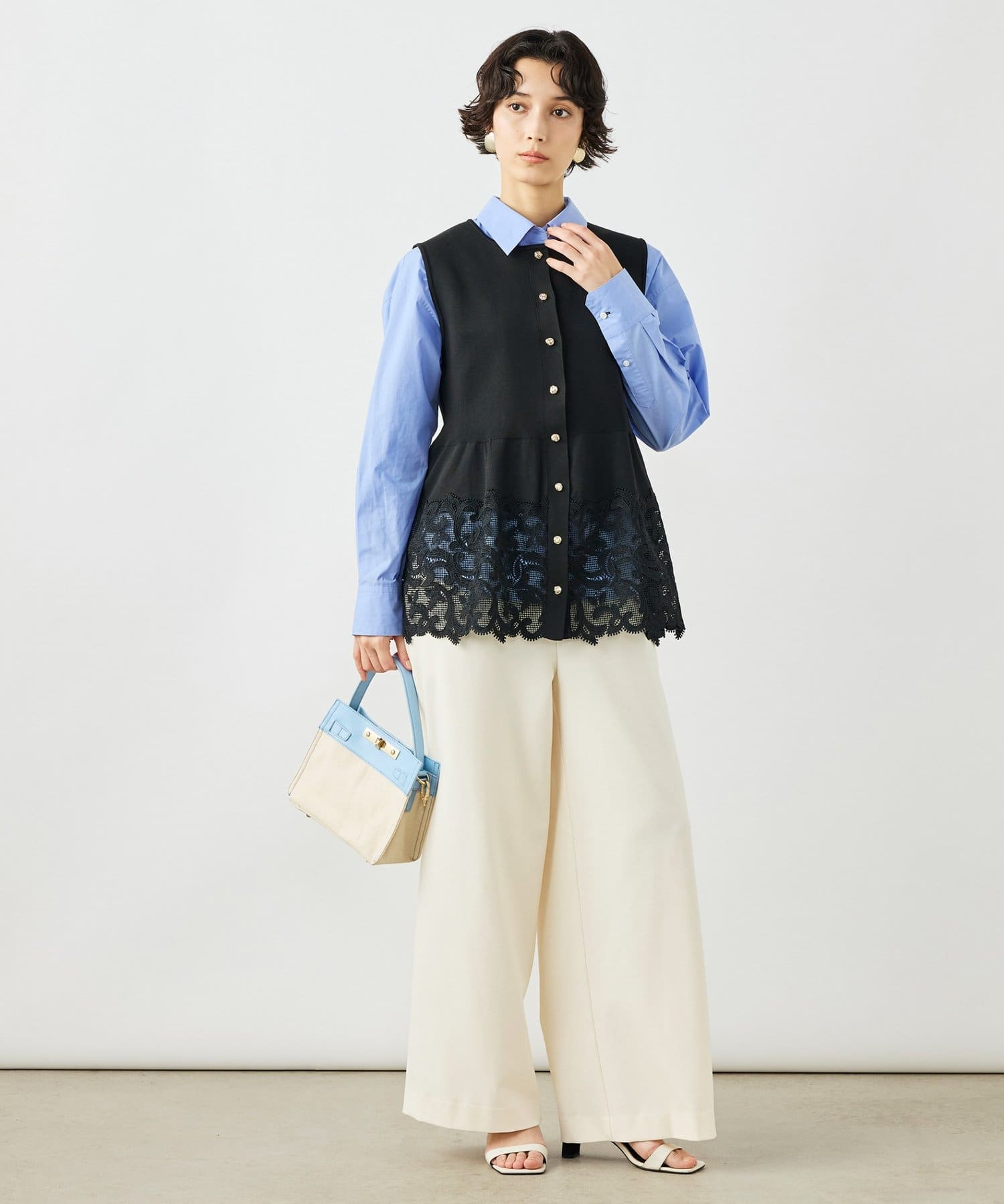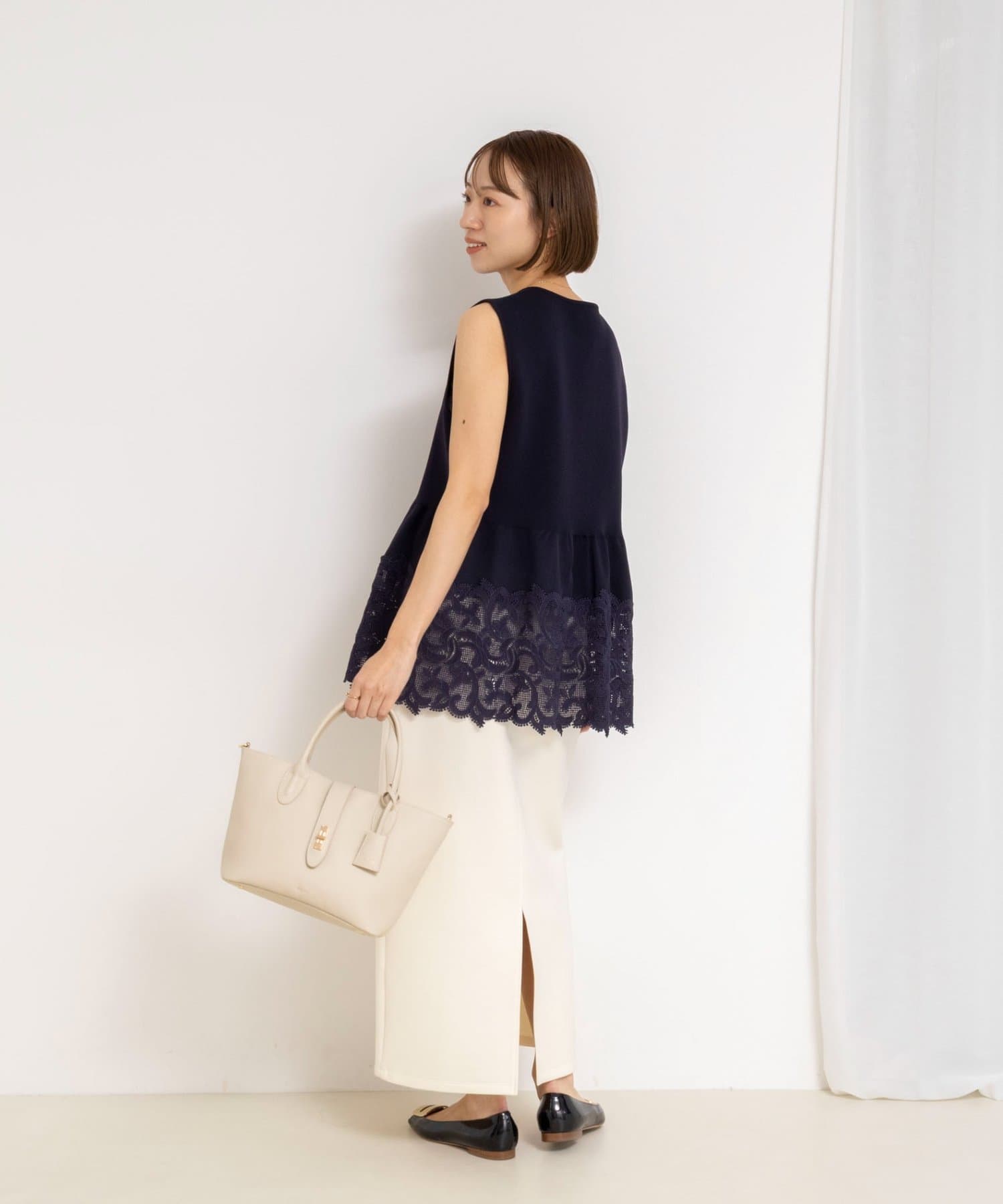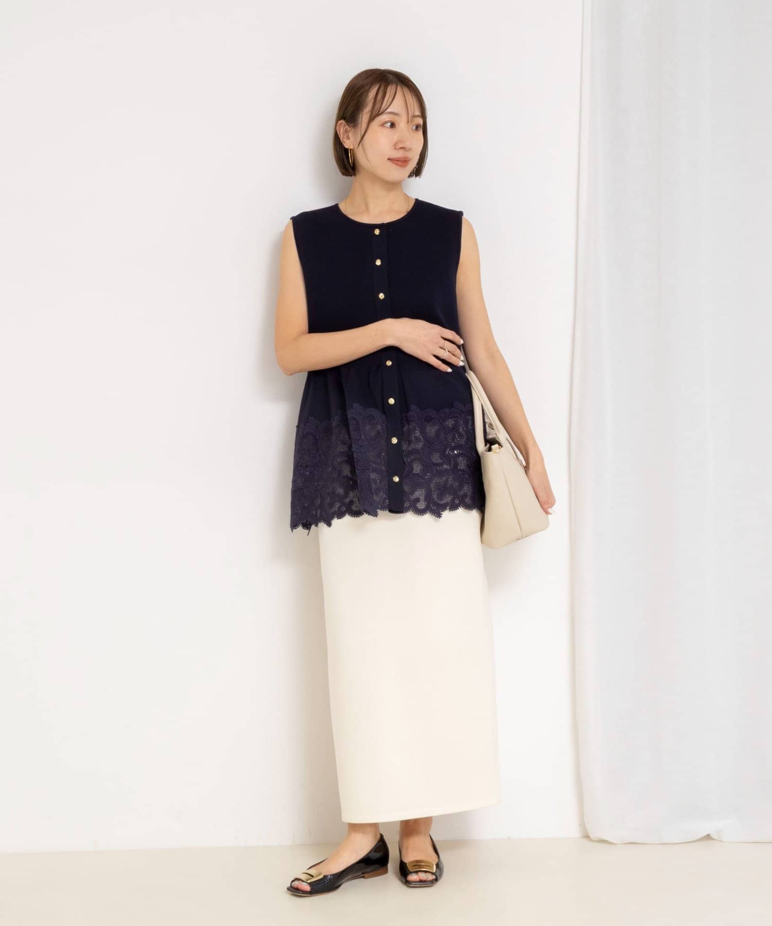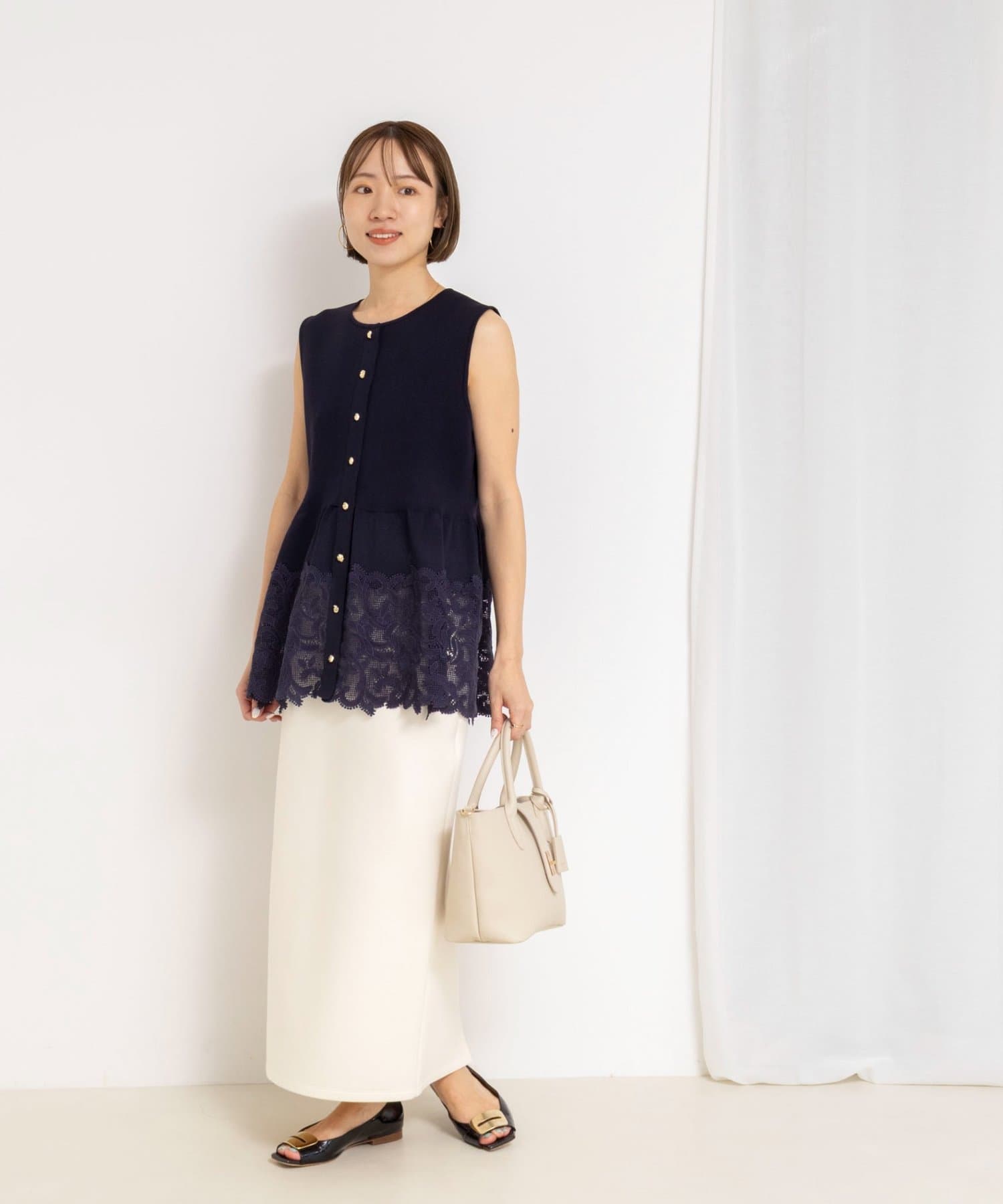 ・ミラノリブとレースで仕上げた品のあるニットベスト