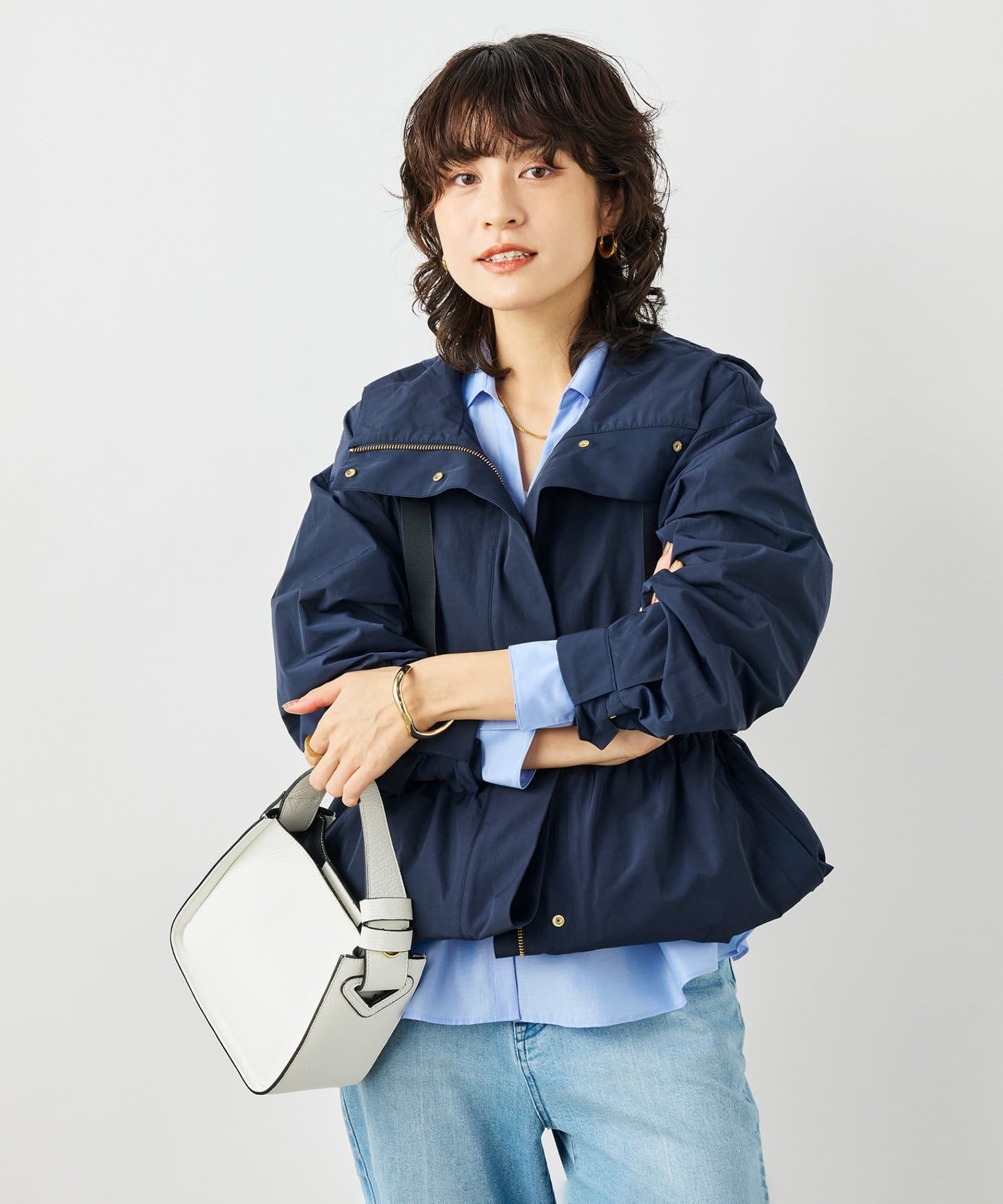 ・撥水機能付きで、春先の冷たい風を防ぐ目の詰まったタフタを使用したブルゾン