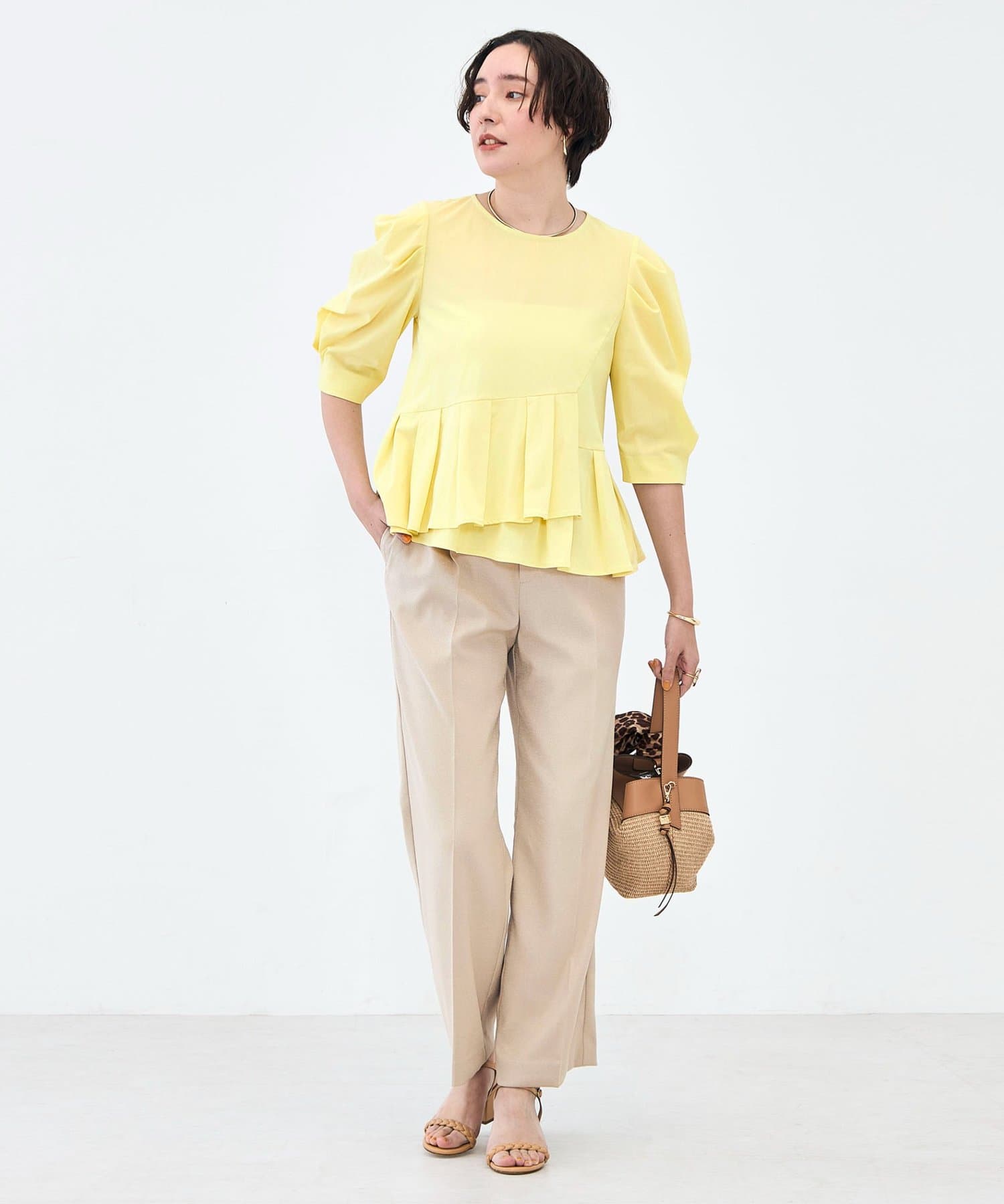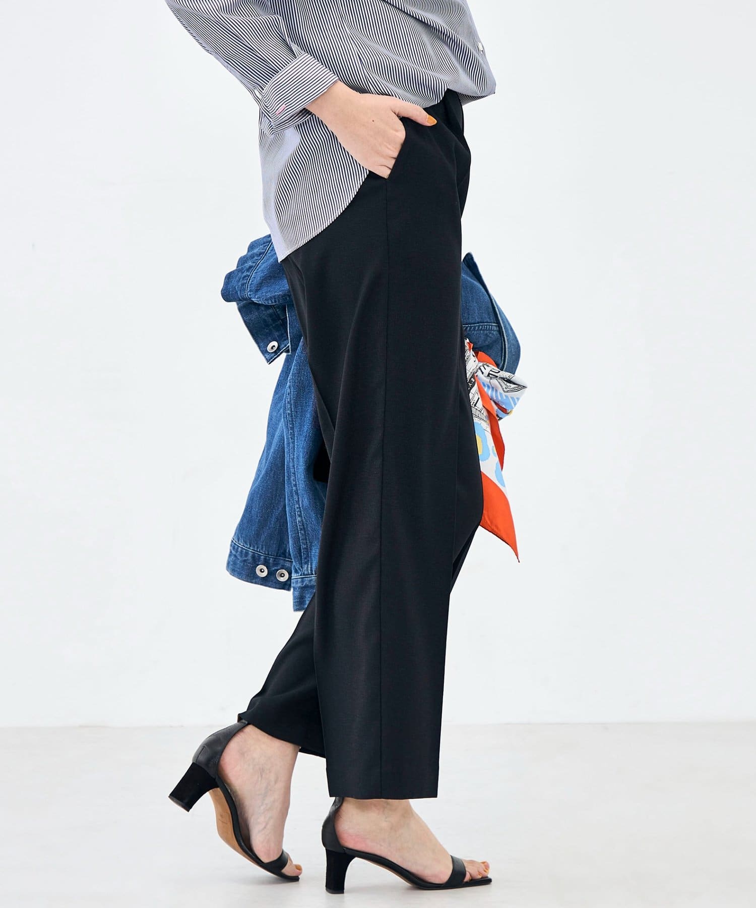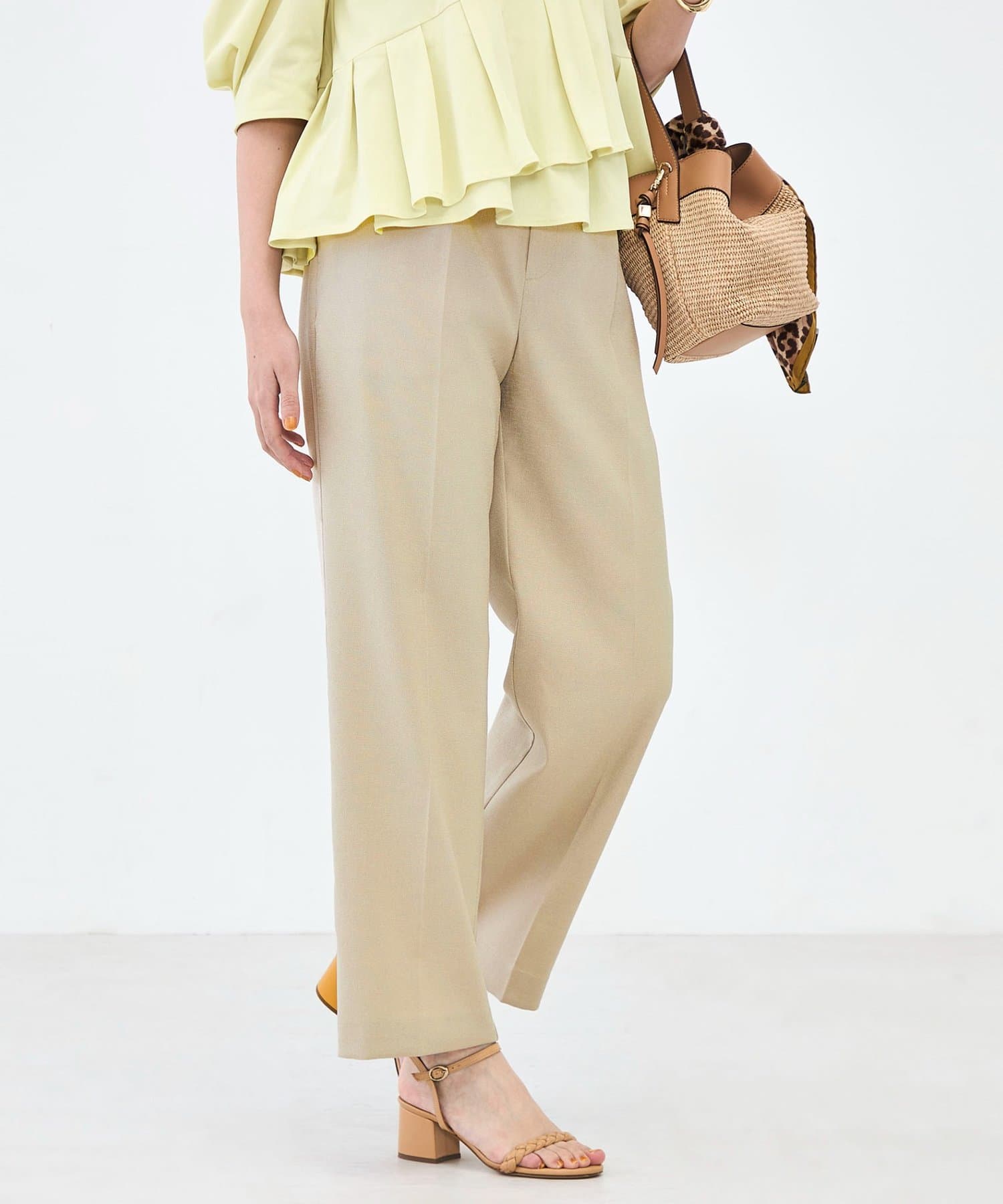 ウォッシャブルハイスペック麻調愛されセミワイドパンツ