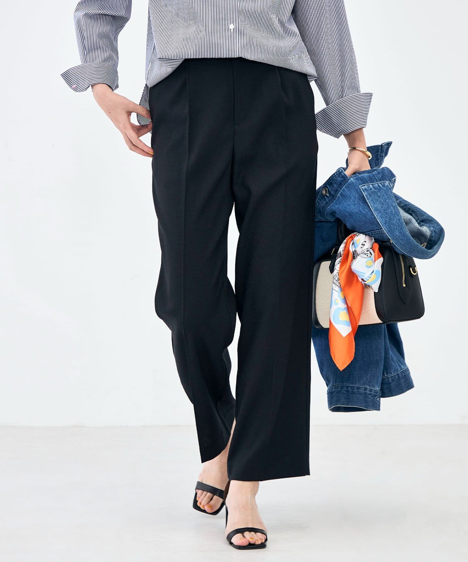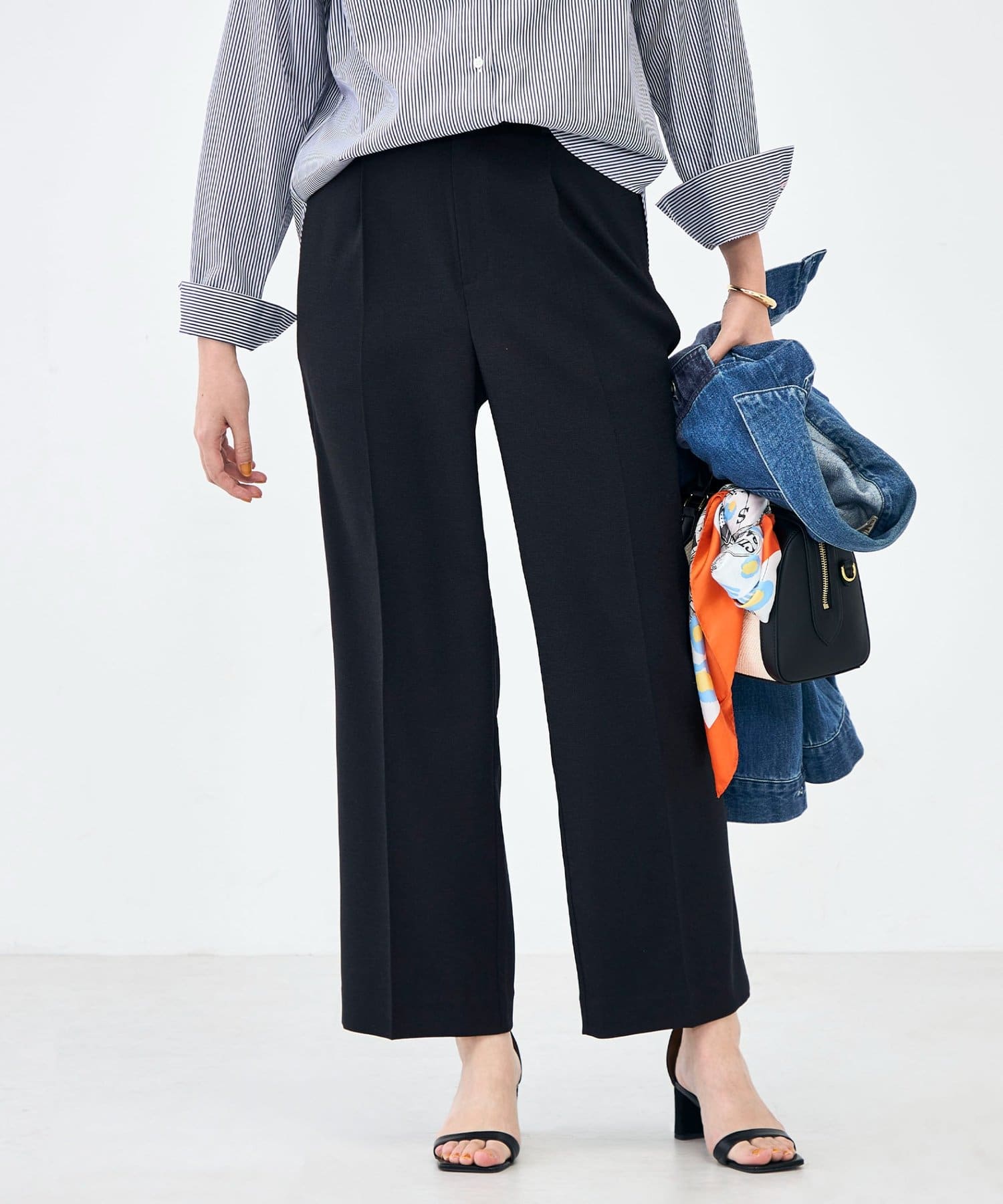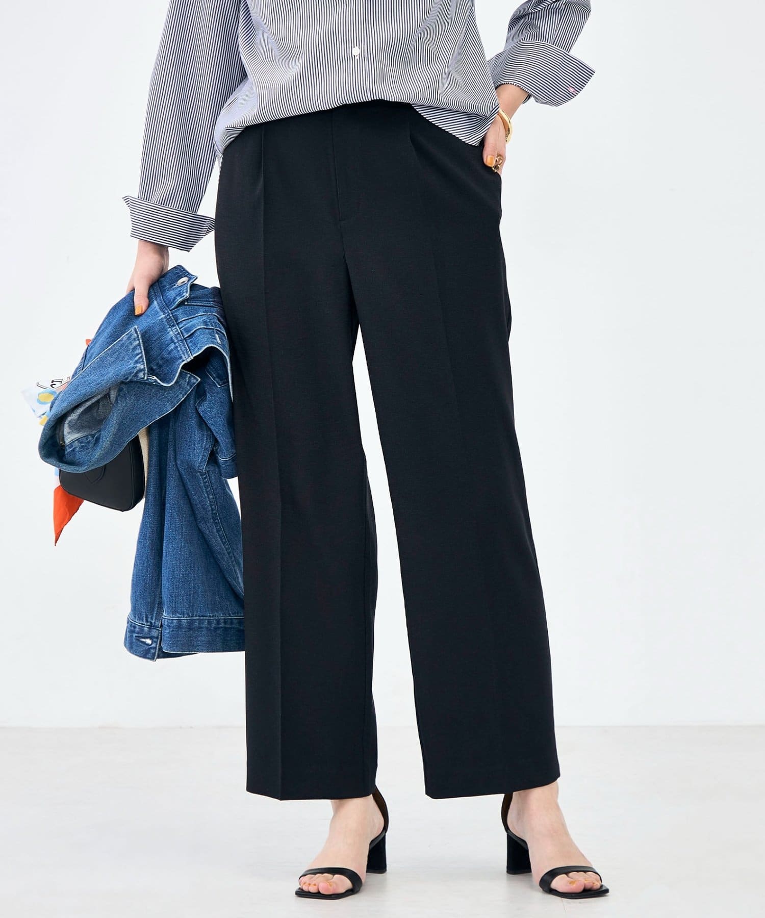 《セットアップ対応》ウォッシャブルハイスペック麻調愛されセミワイドパンツ
