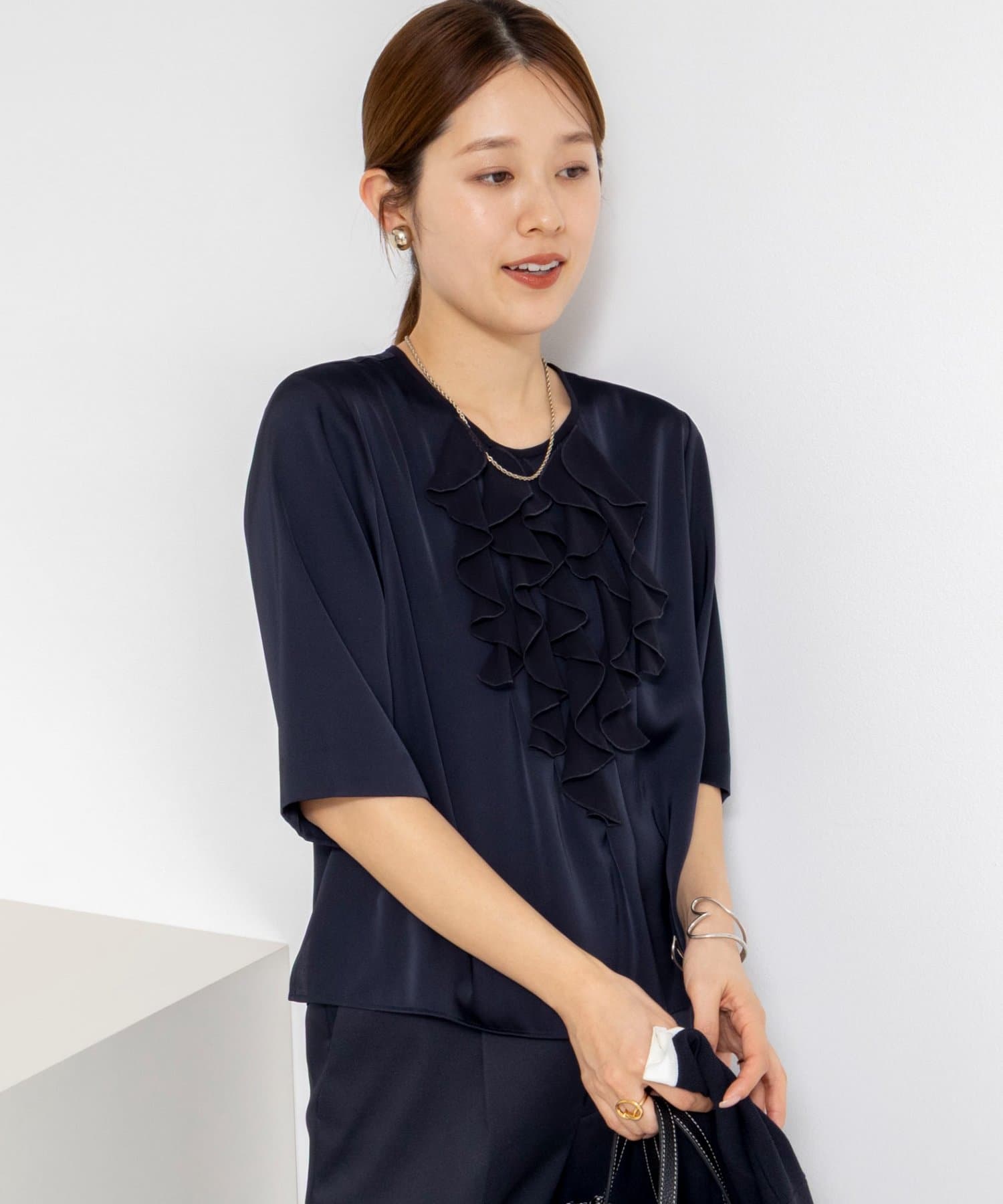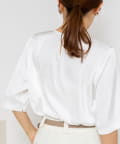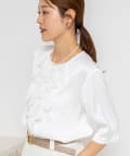 ウォッシャブルオトナサテンラッフルブラウス