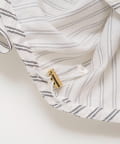 ・コーデ同素材のストライプスカートと合わせたセットアップ風スタイルがおすすめ。