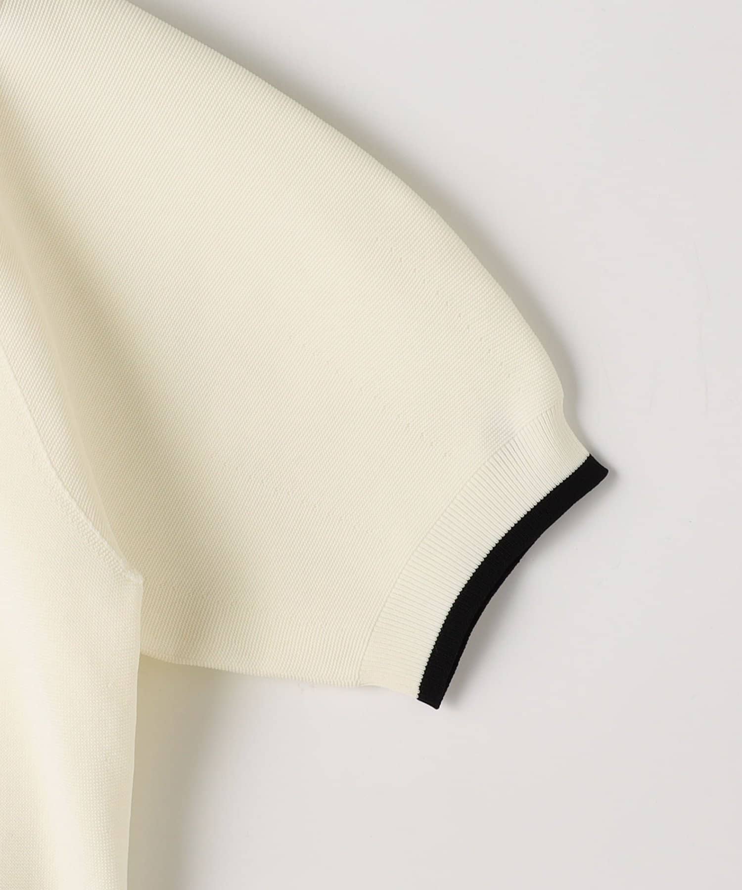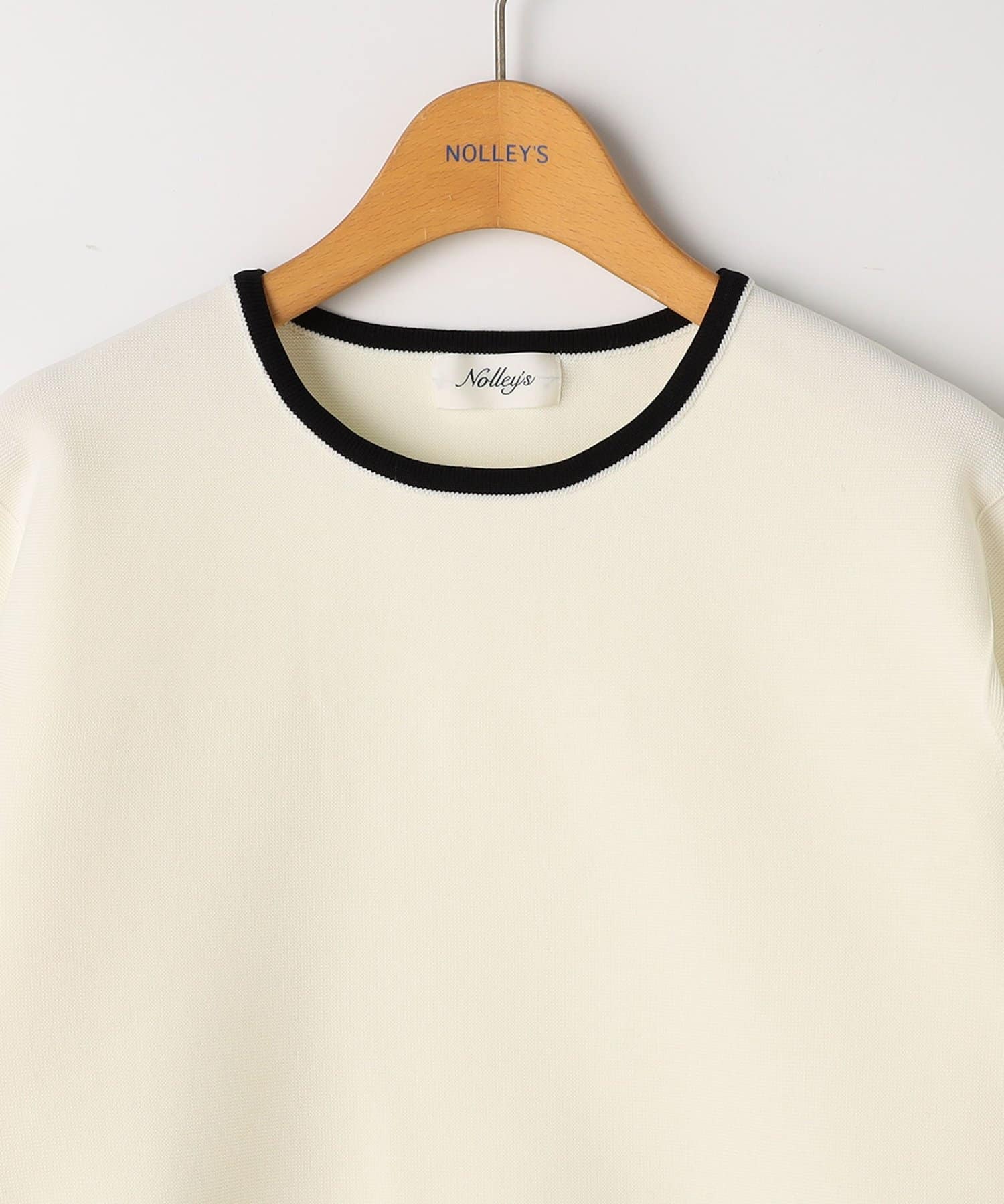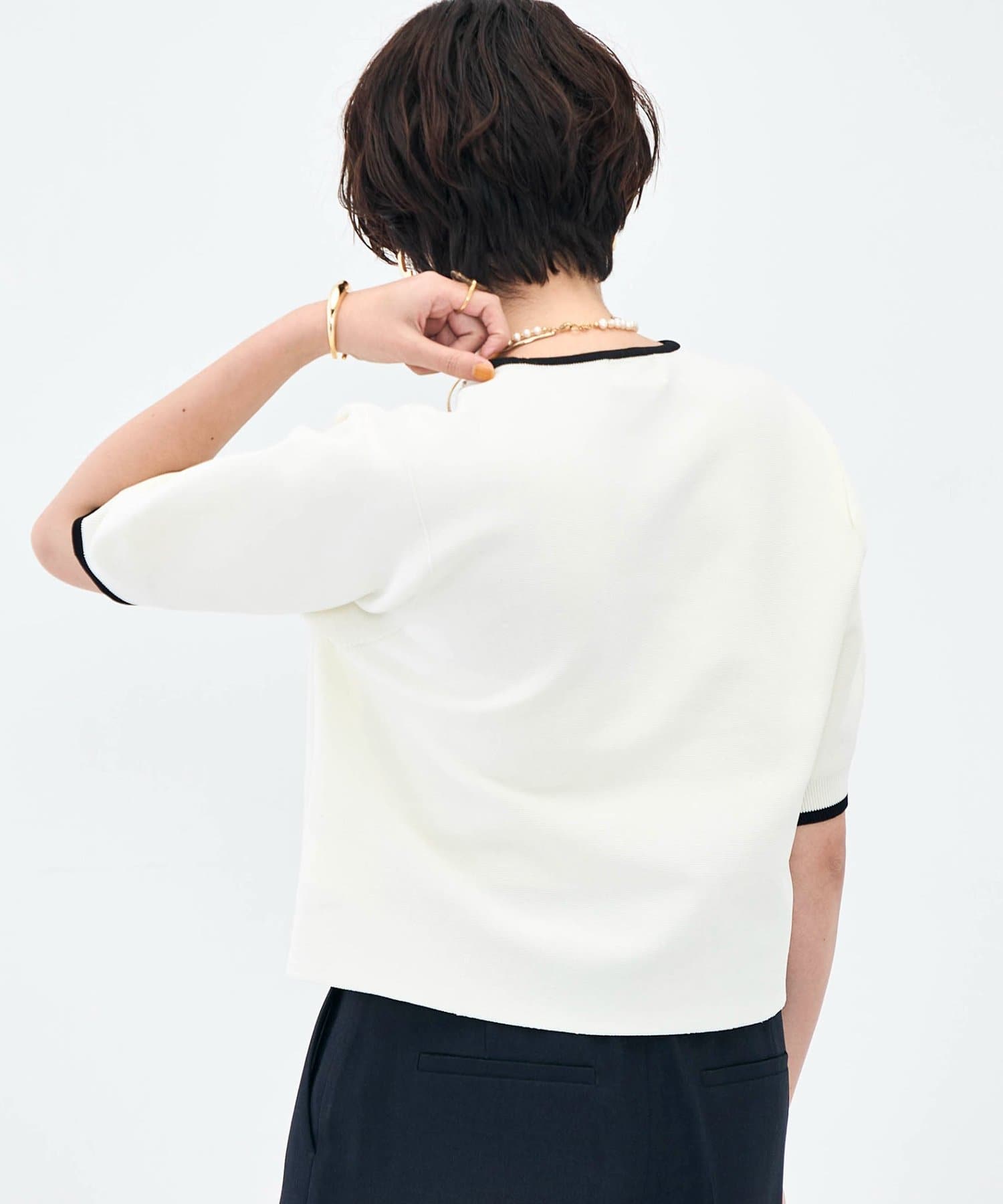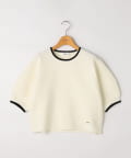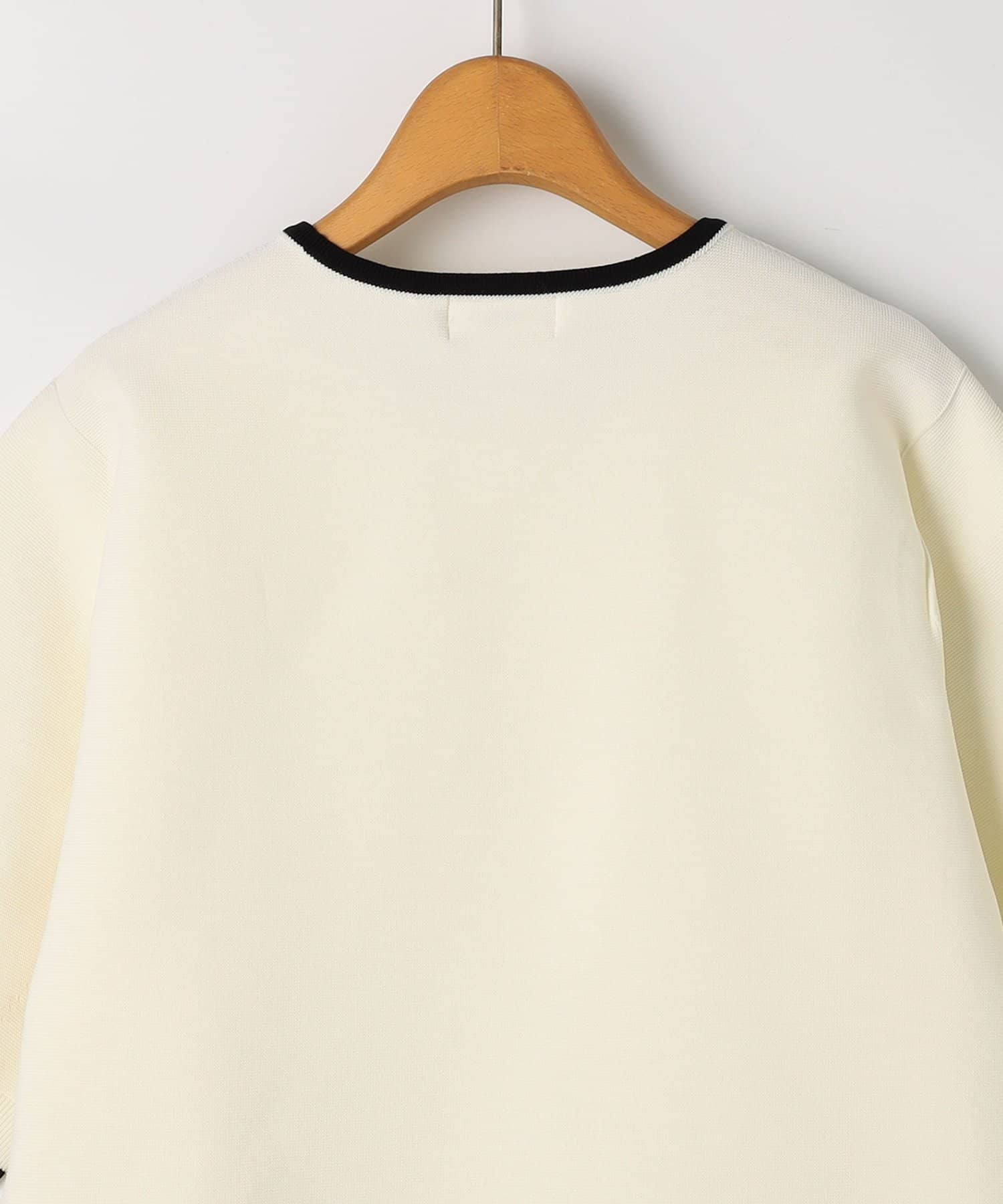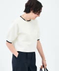 ・襟ぐりと袖口の配色がデザインポイントのニットT