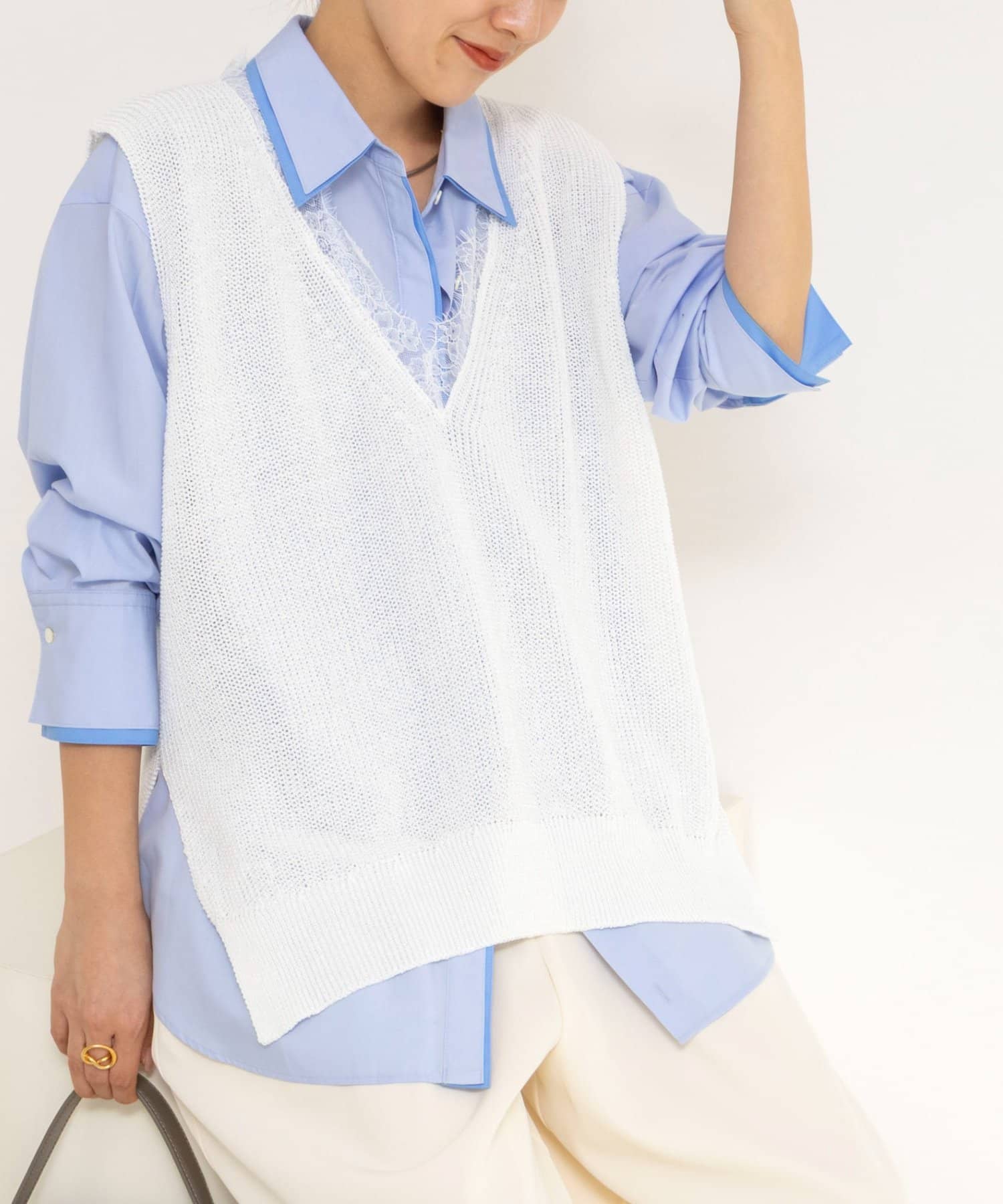 ・麻のシャリ感と、ざっくりとした編み地が涼しげなジレ