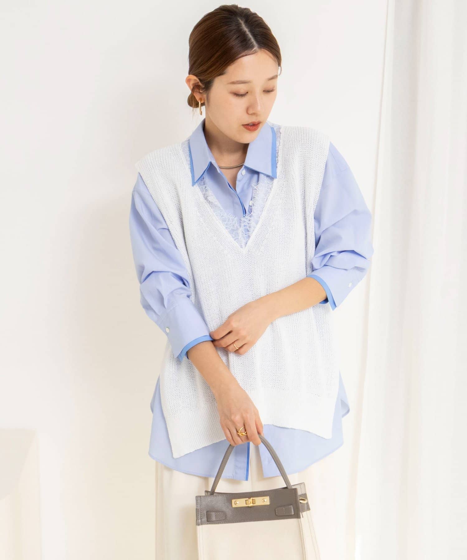 《手洗い可能》Vネックレースジレ