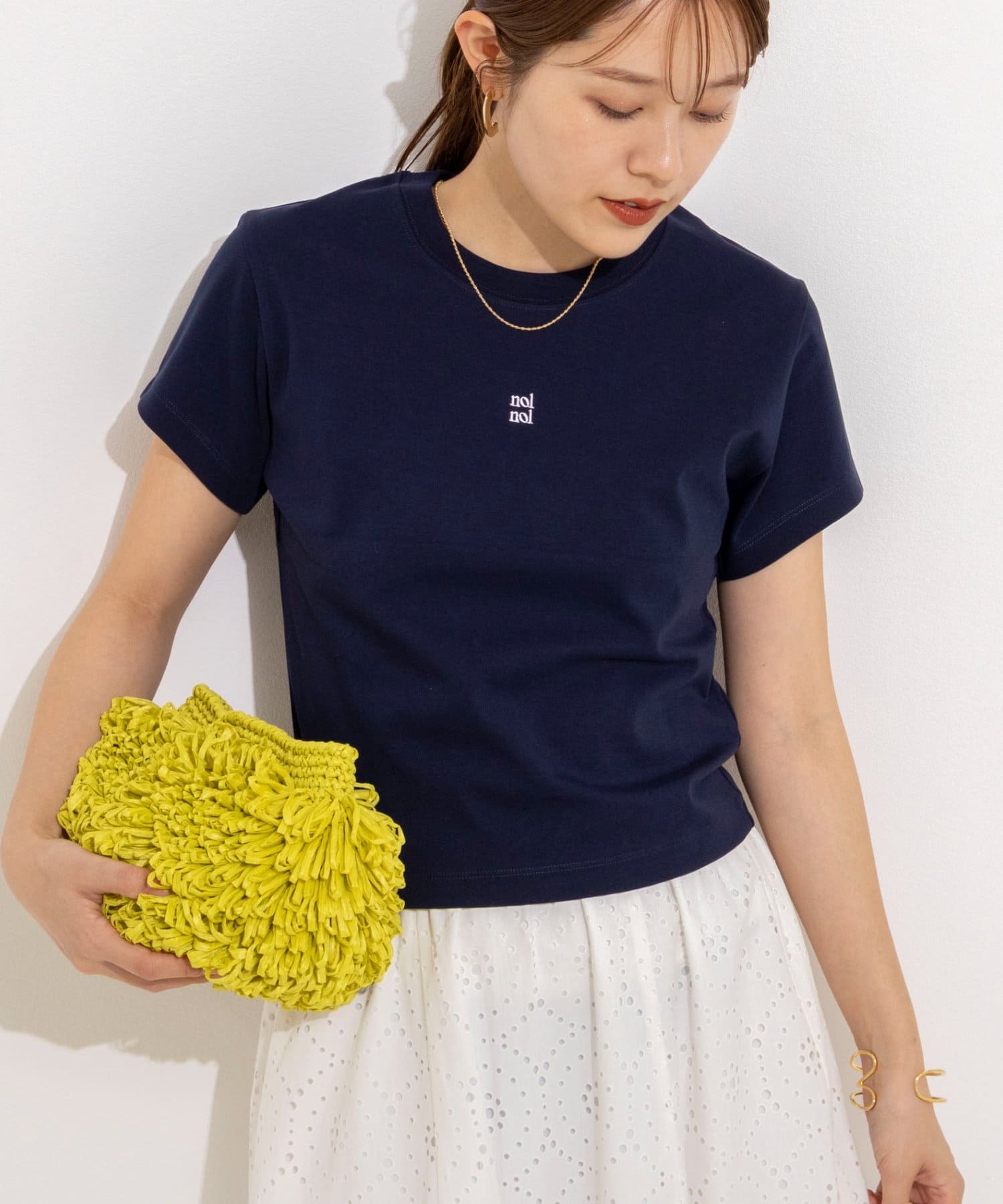 ・胸元に刺しゅうされたnolnolロゴがアクセントに