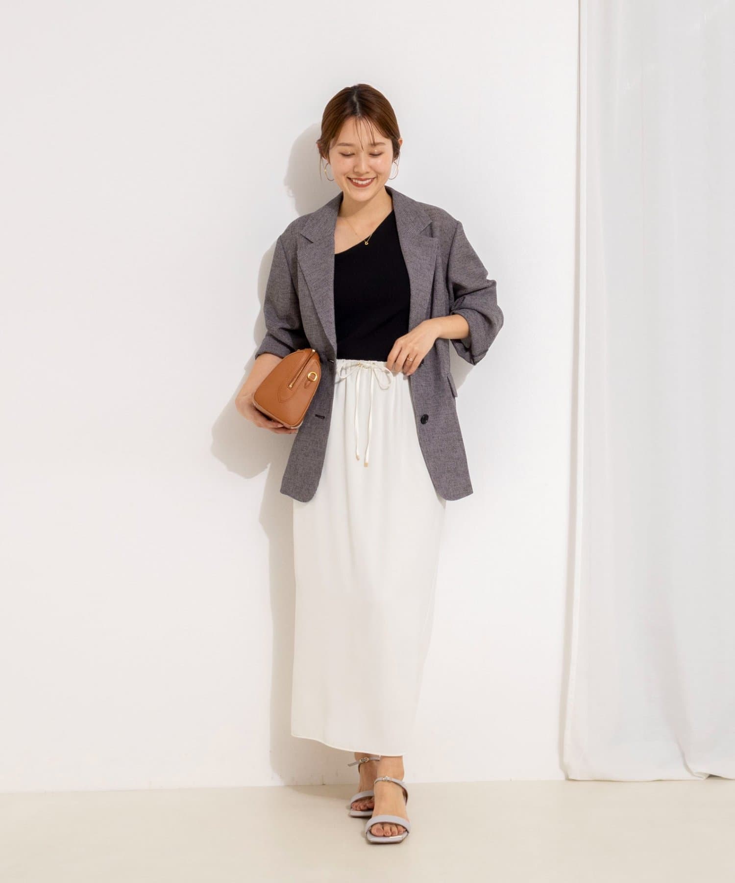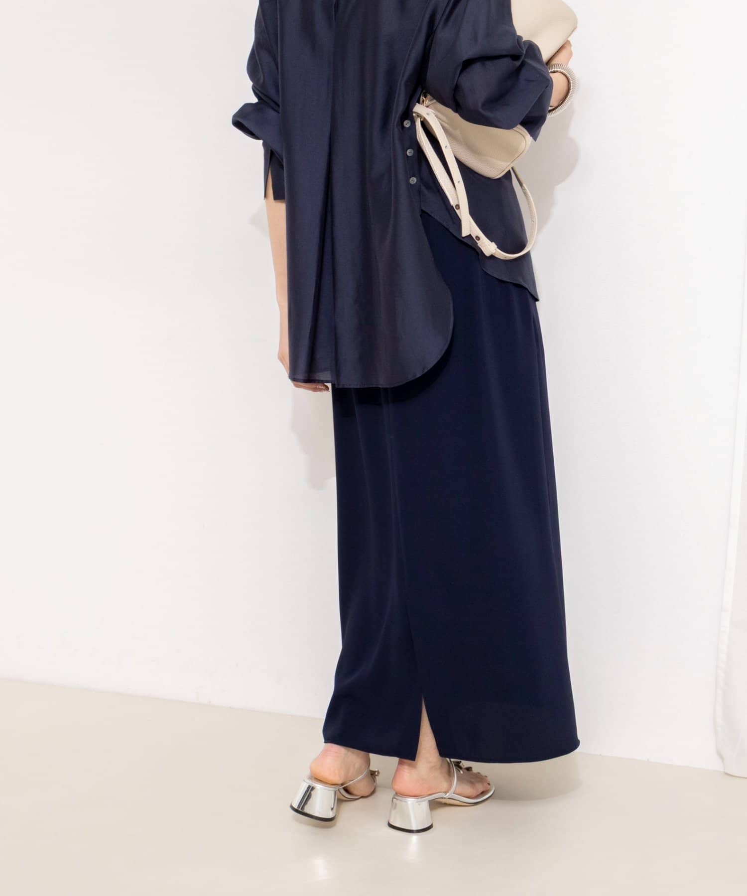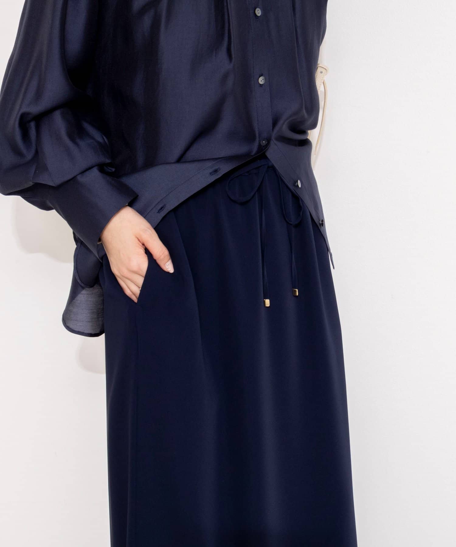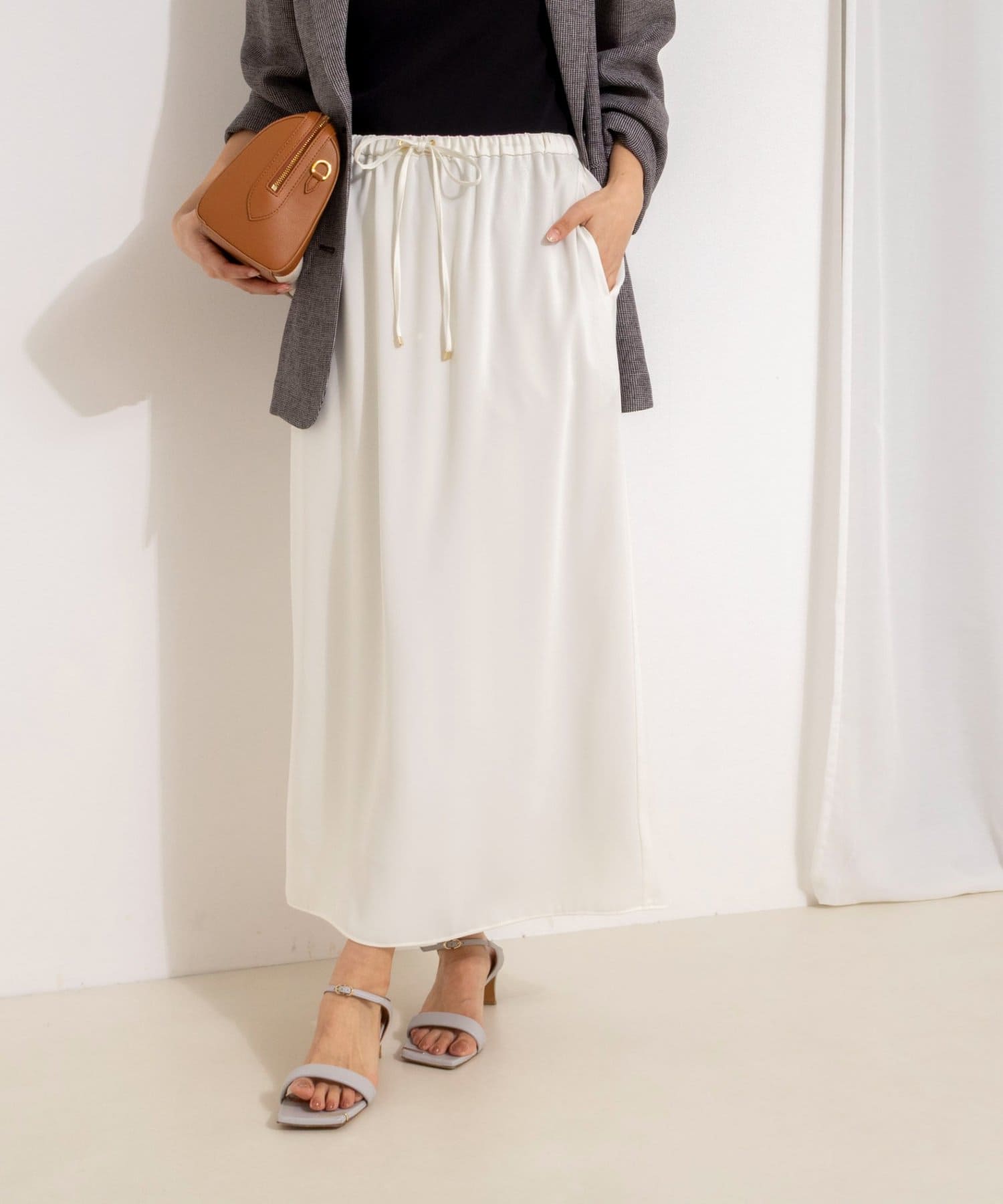 ・ウエストはゴム仕様でタイト過ぎないシルエットのロングスカート