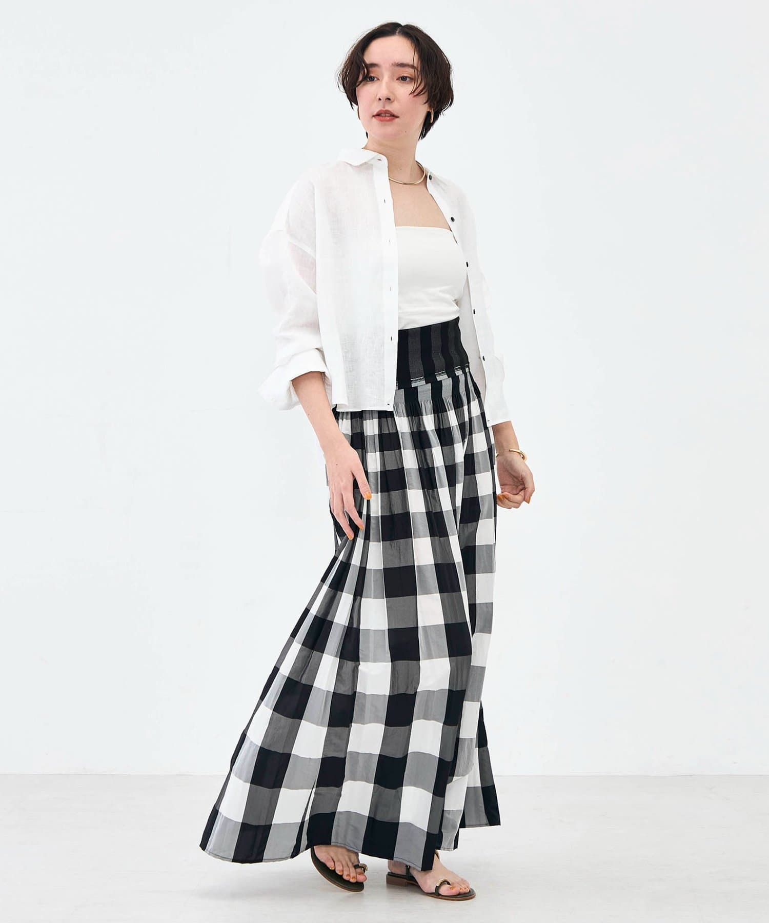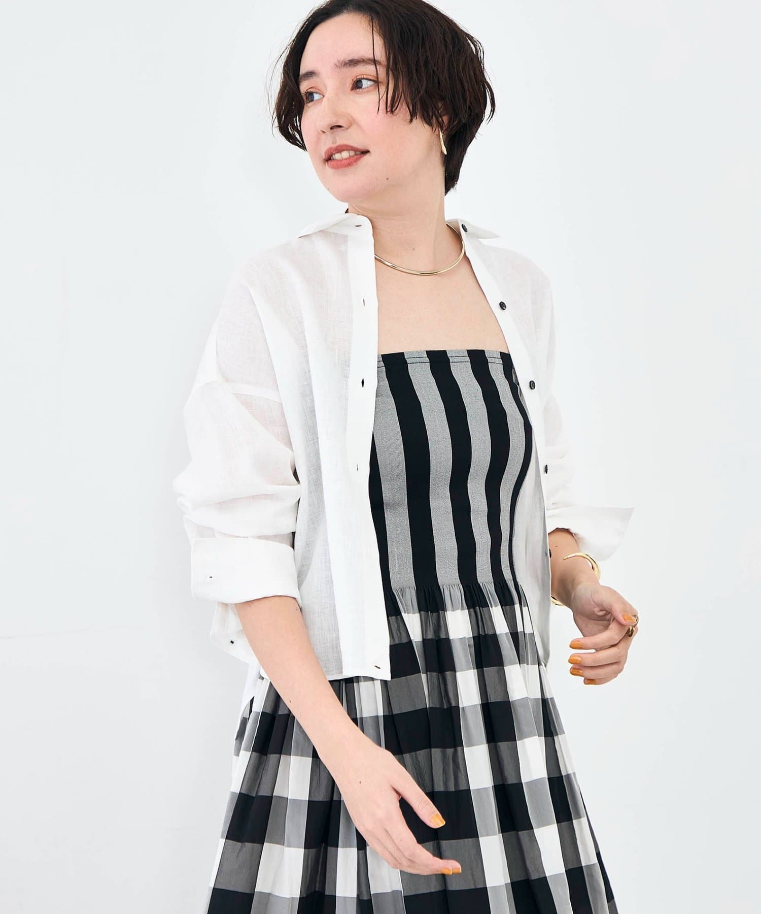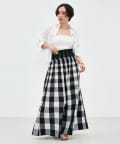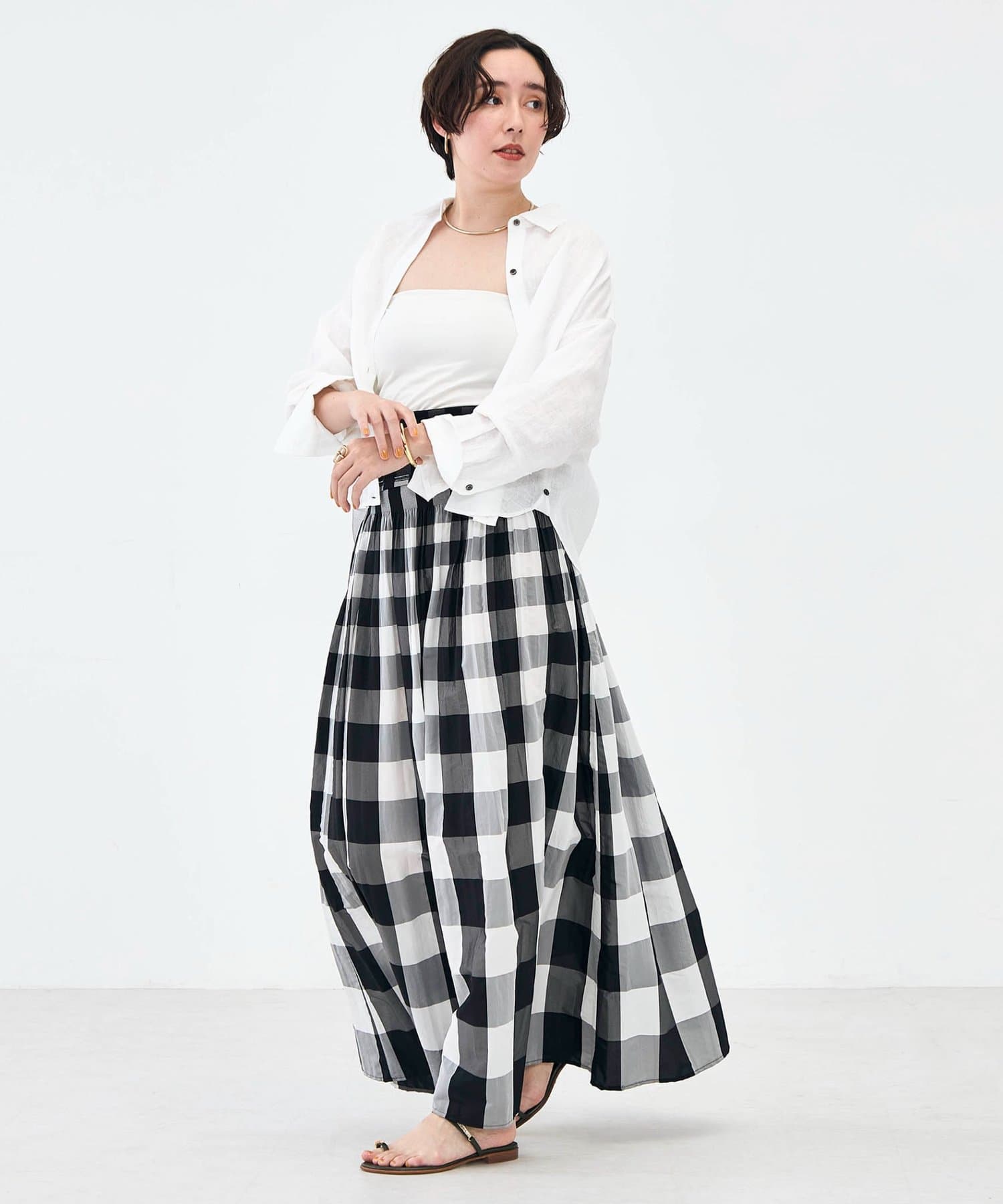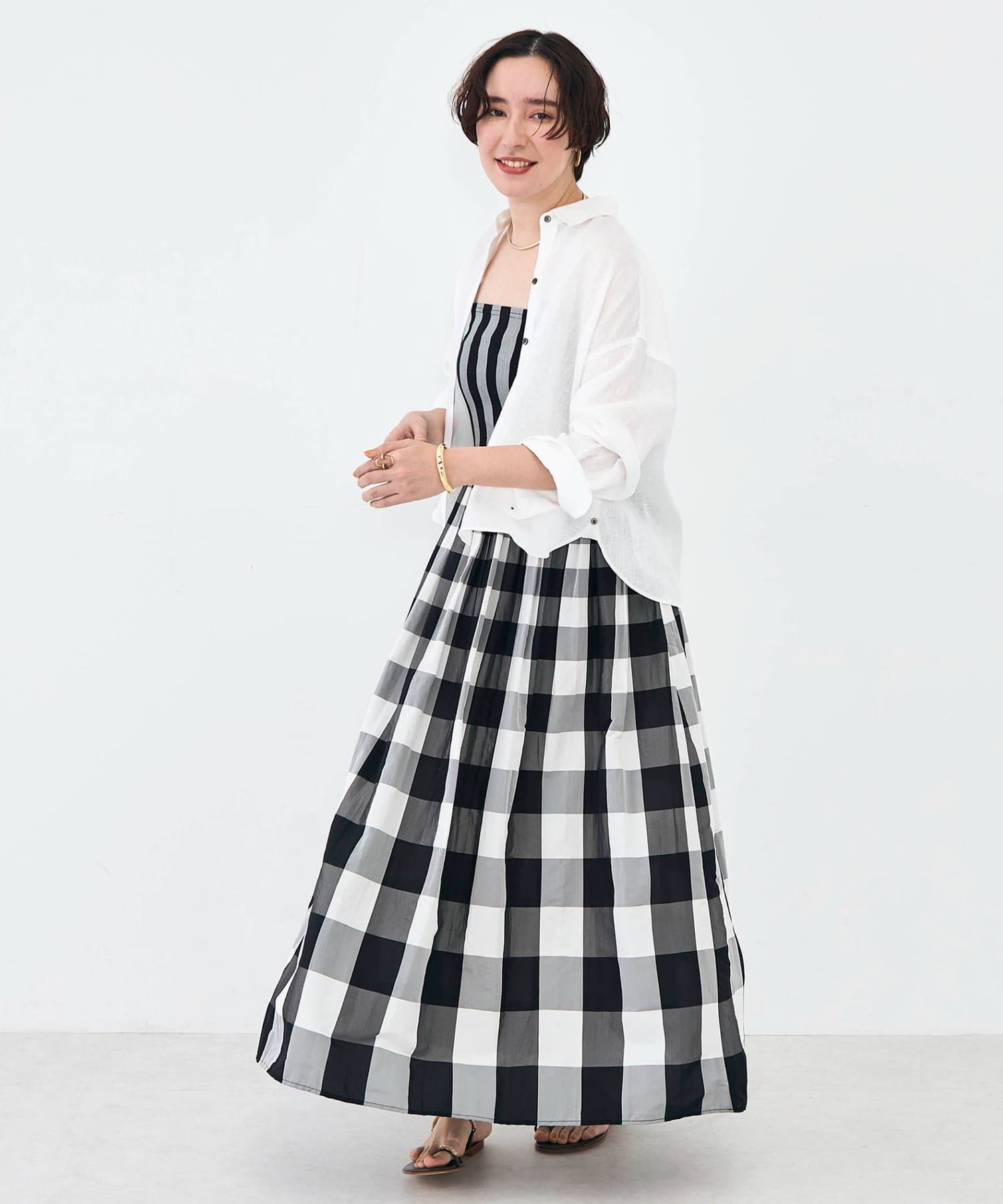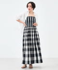 ・モノトーンの大きなチェック柄とベアトップのデザインがシックで大人っぽい印象
