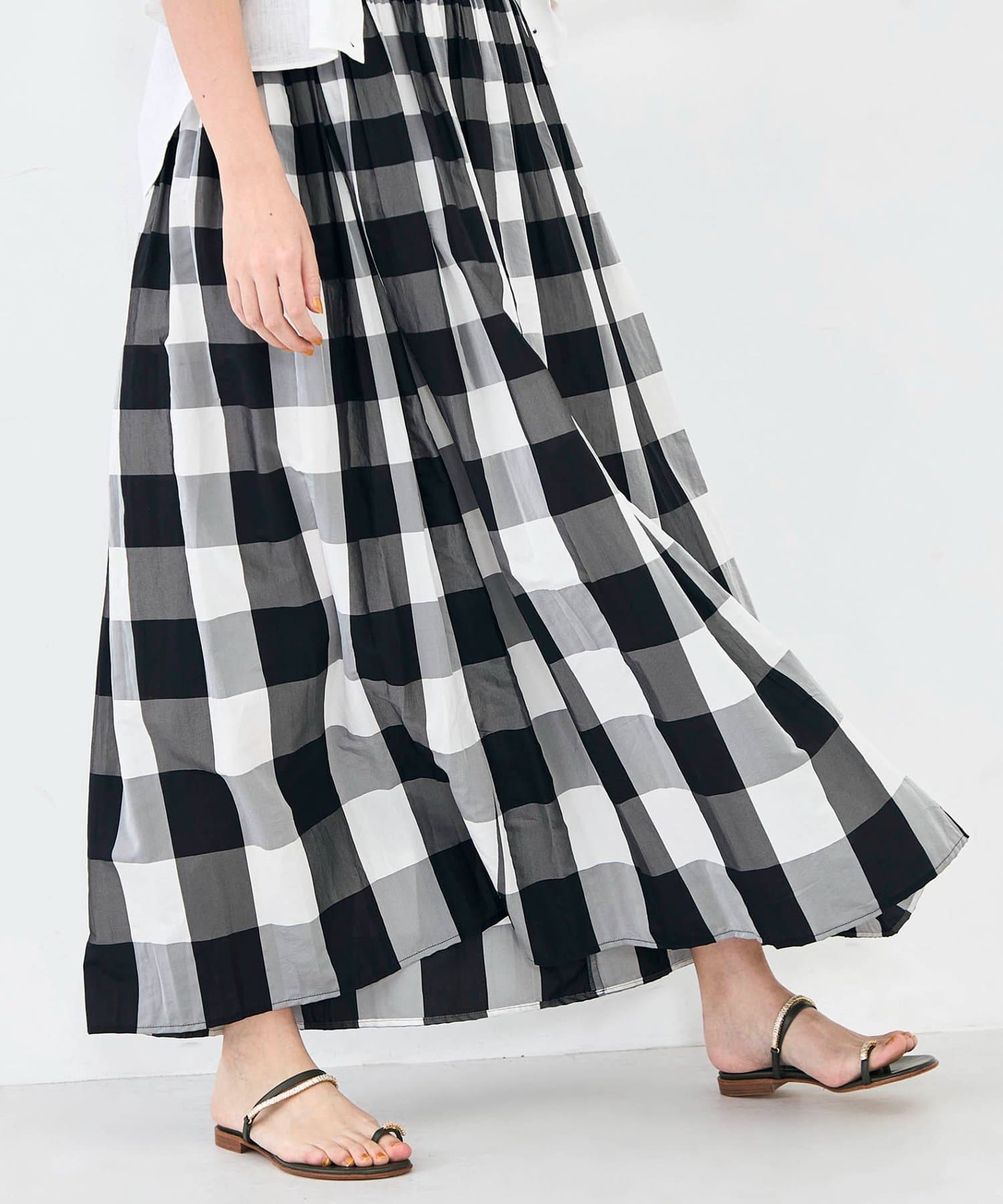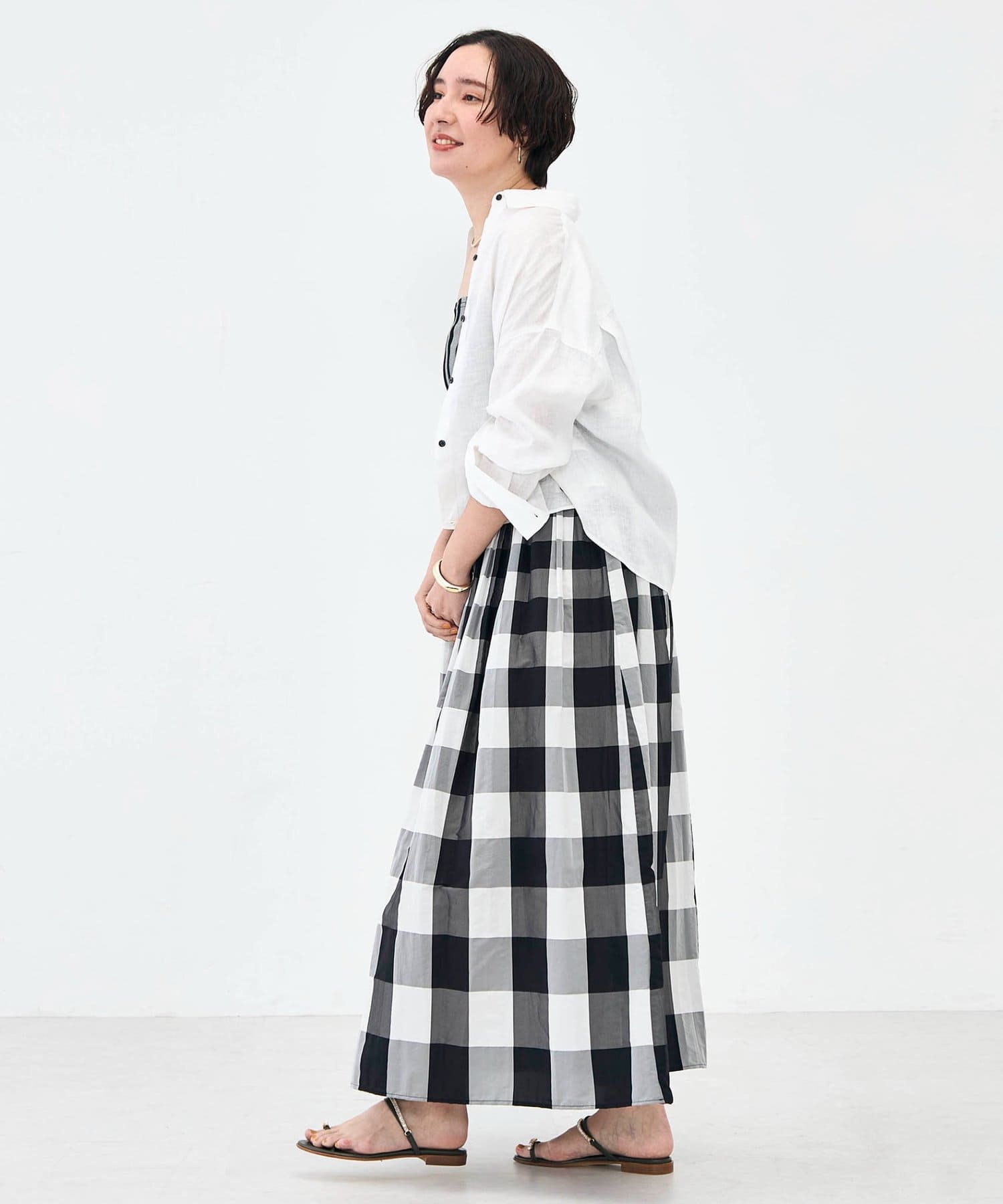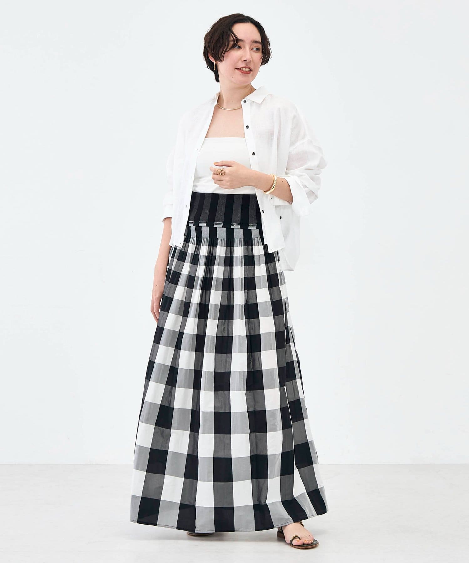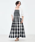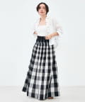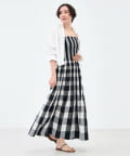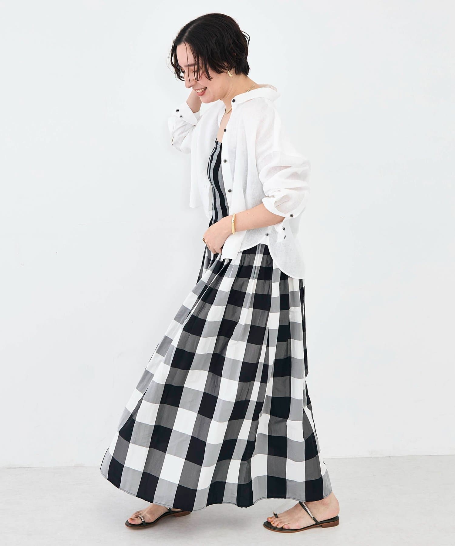 ・モノトーンの大きなチェック柄とベアトップのデザインがシックで大人っぽい印象