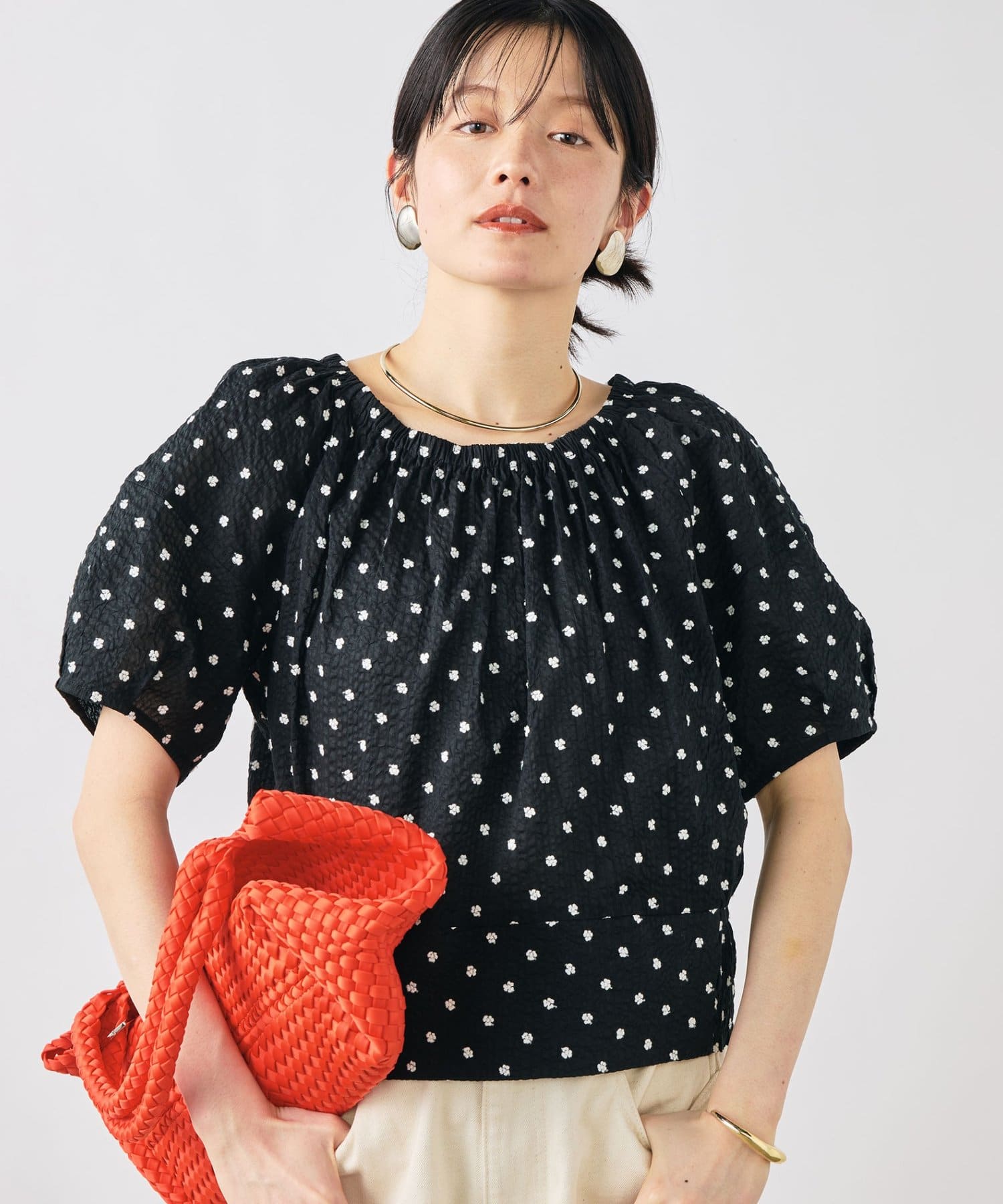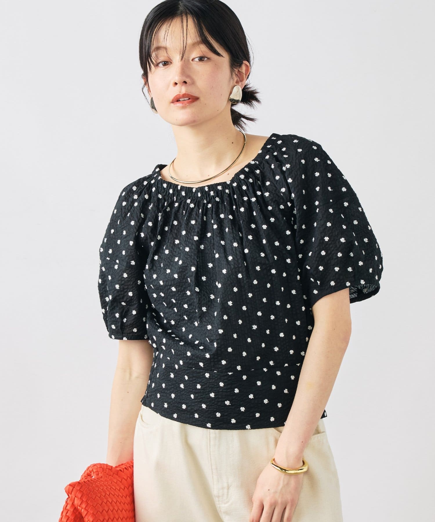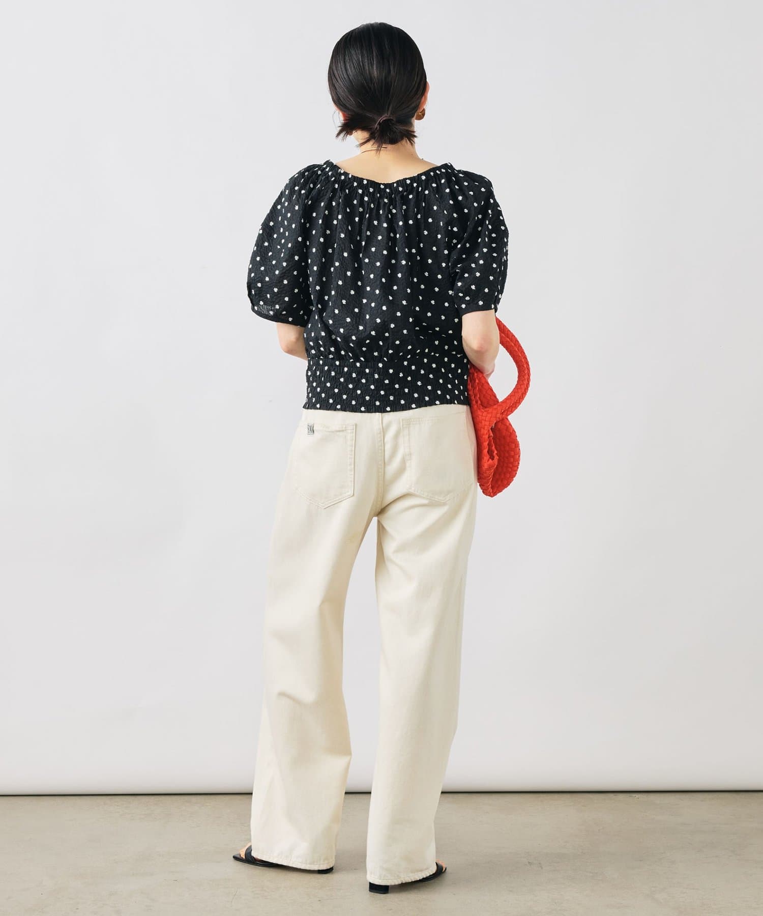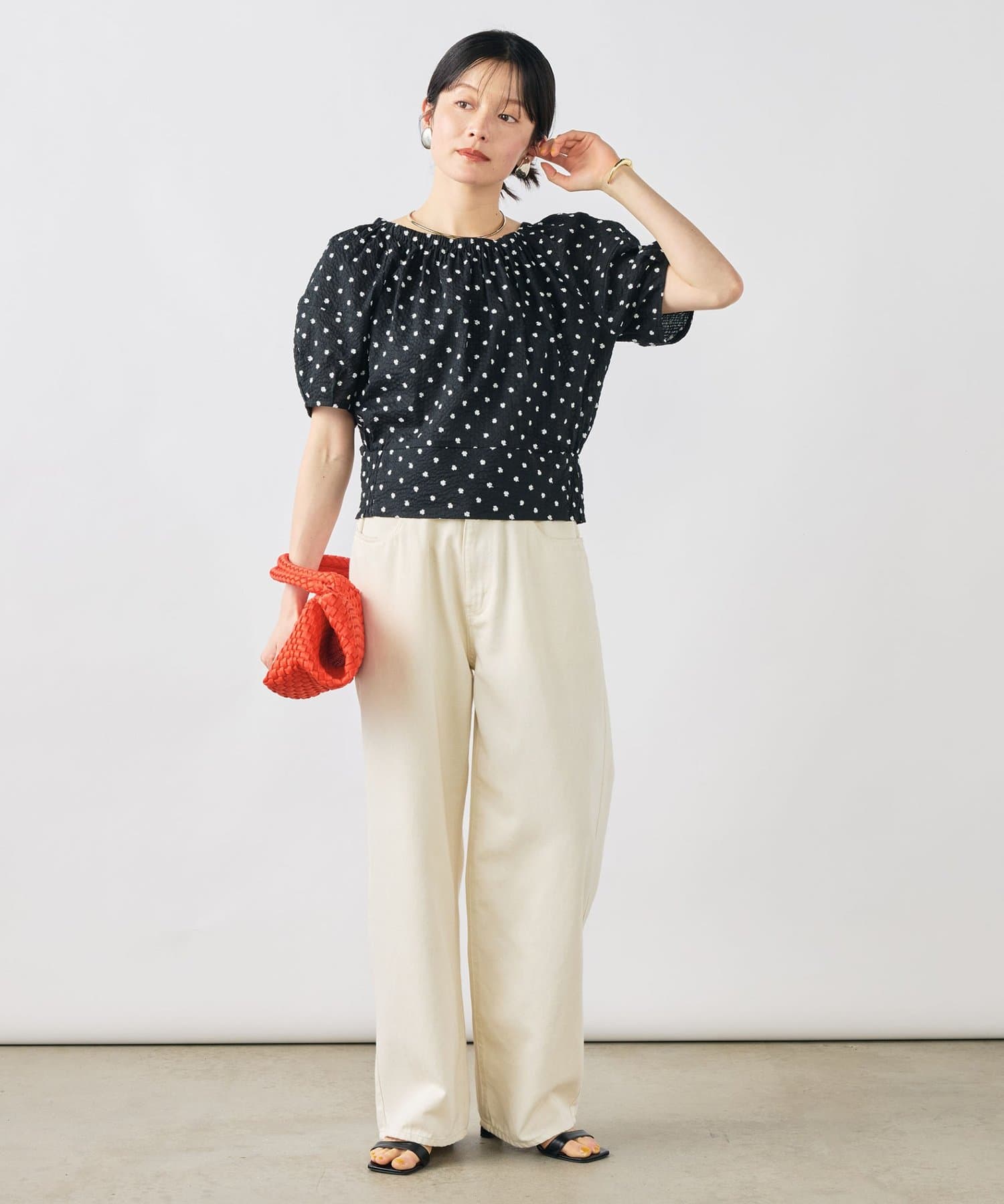 ・袖にはボリュームを出し、ウエスト回りはすっきりさせたシルエット