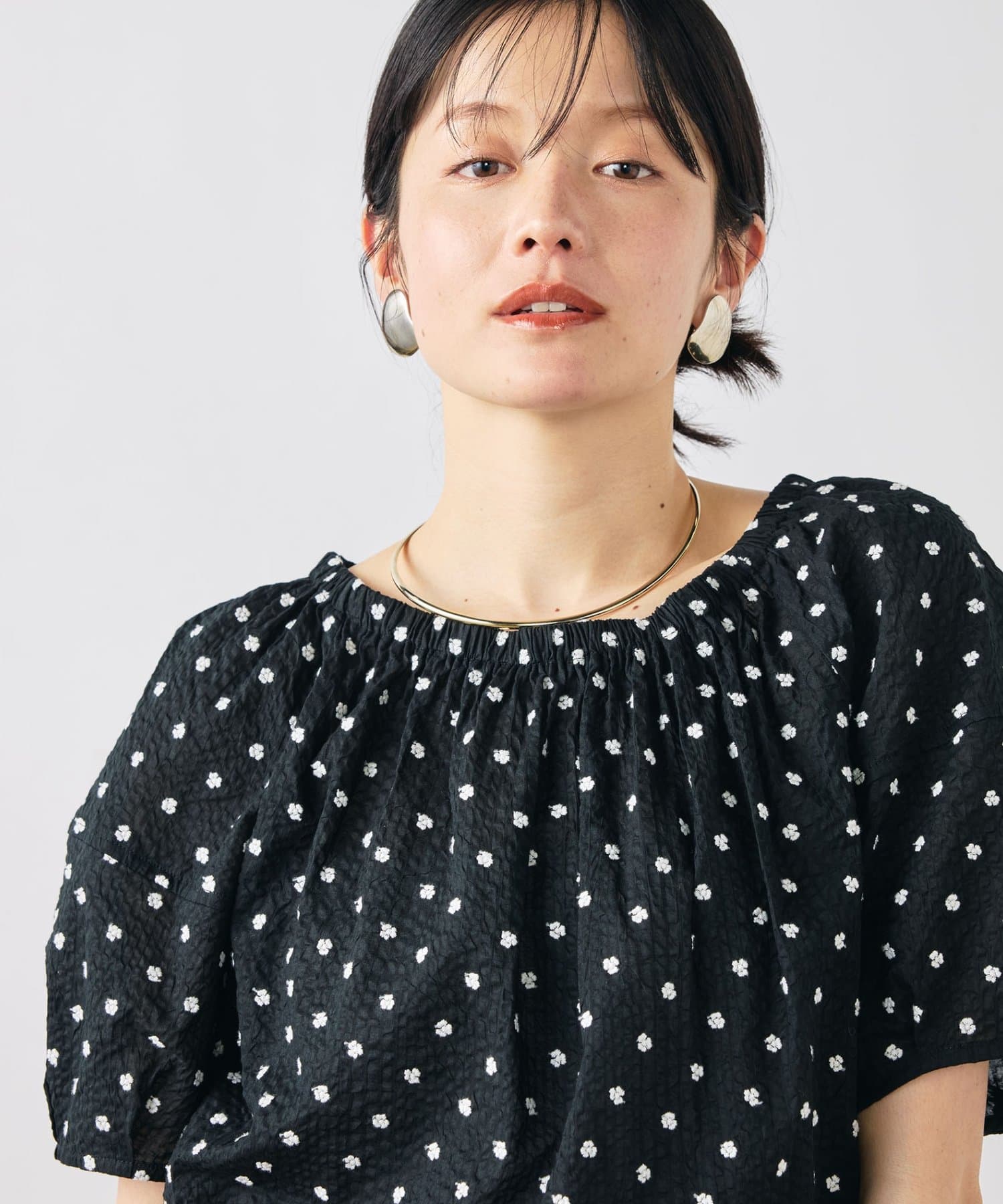 【WEB&一部店舗限定アイテム】レース刺繍袖ボリュームサッカーブラウス