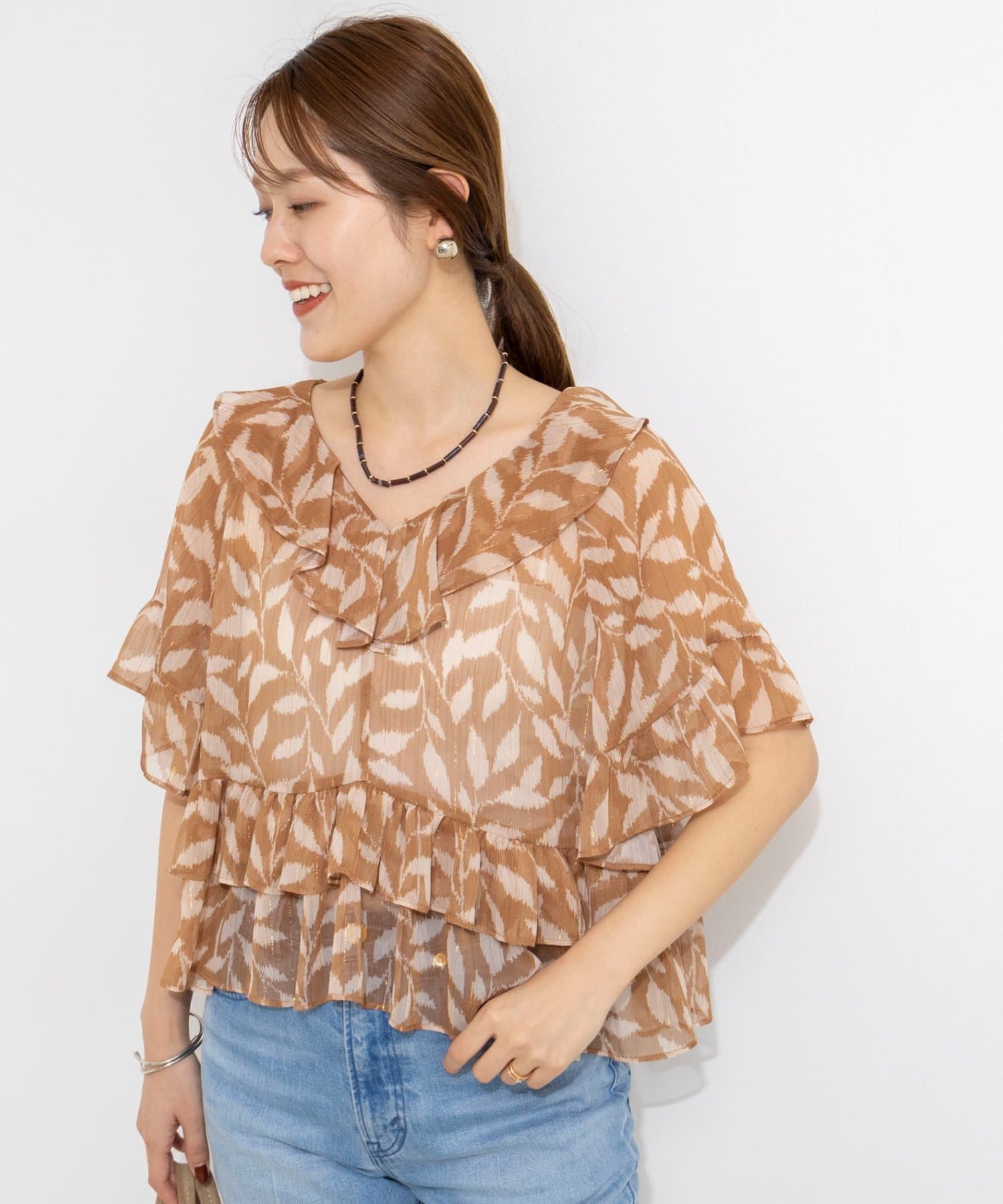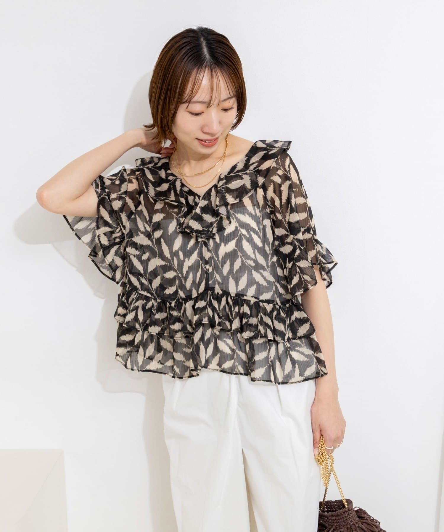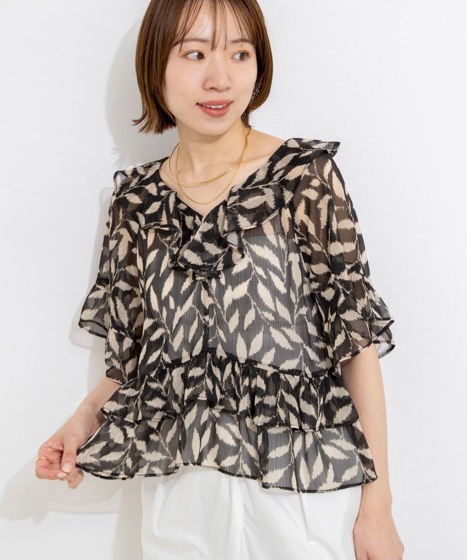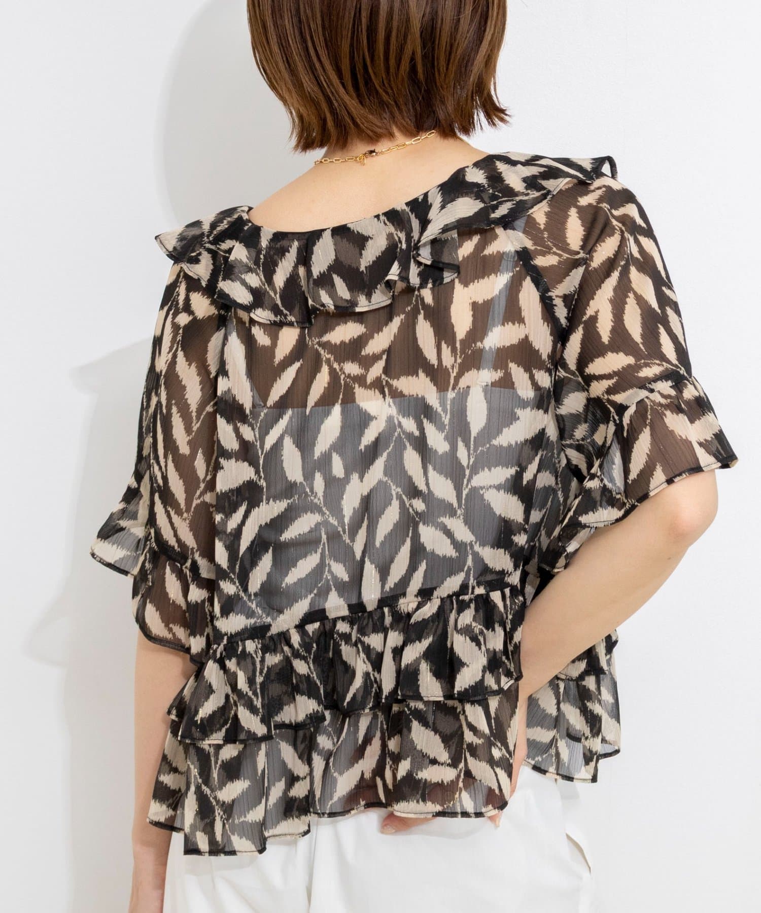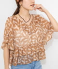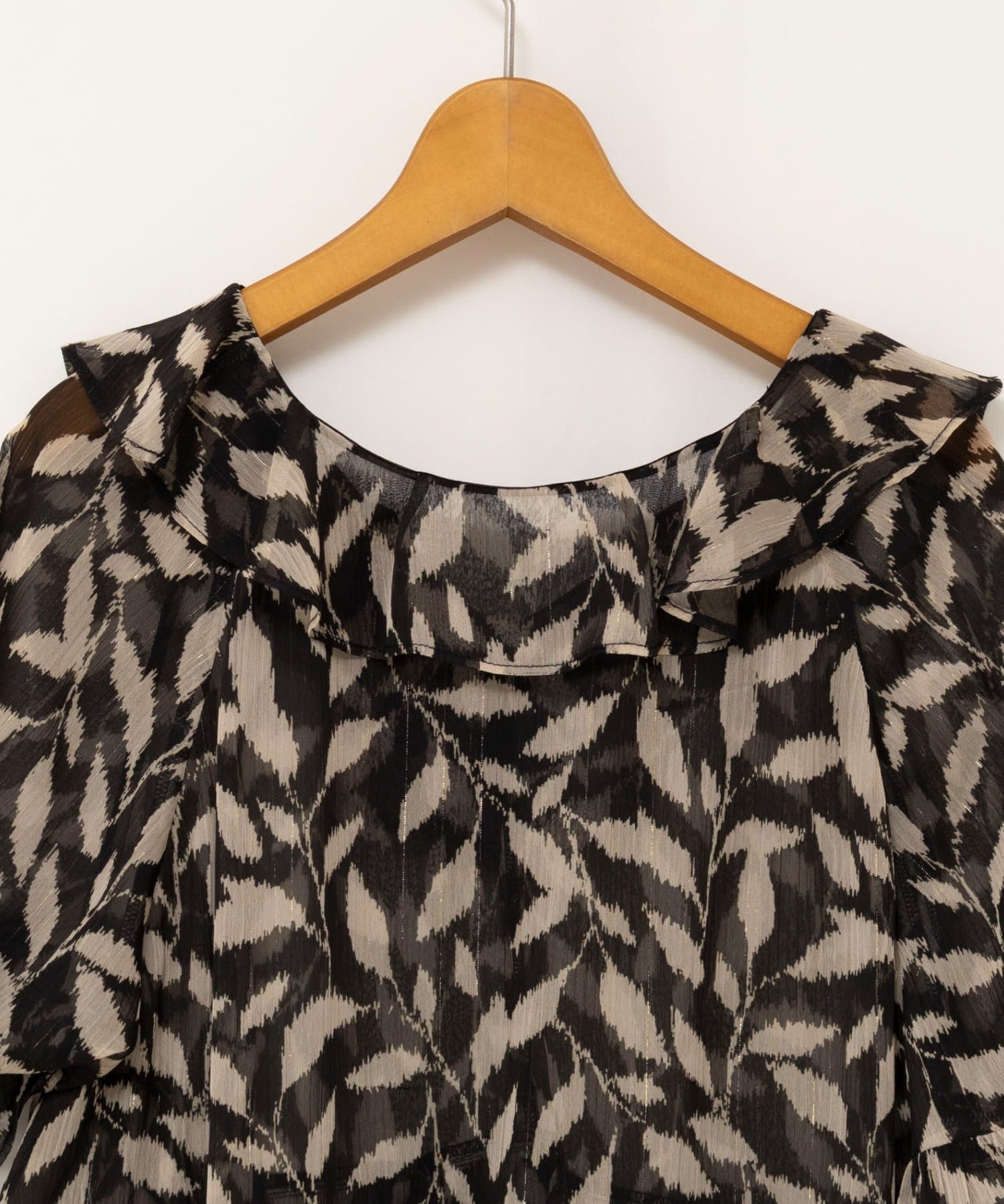 【Import Fabric】ウォッシャブル楊柳リーフ柄フリルブラウス